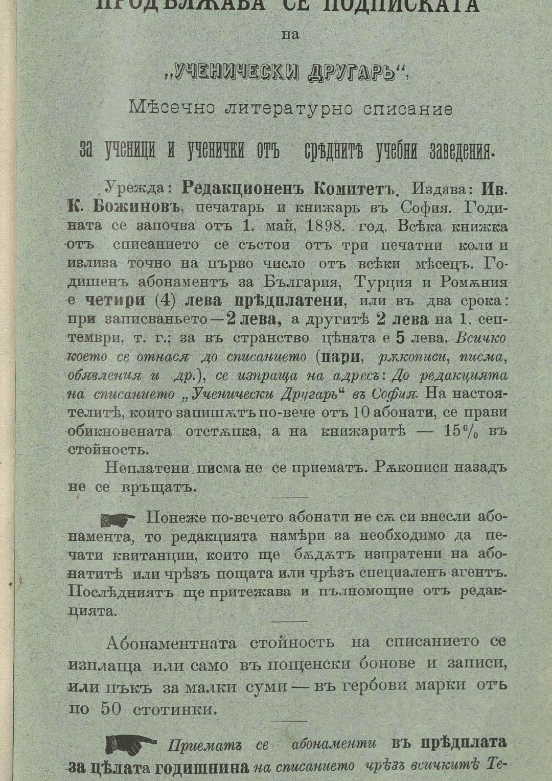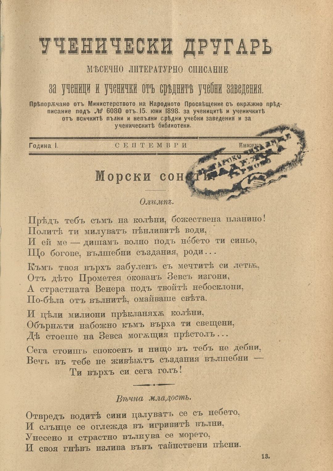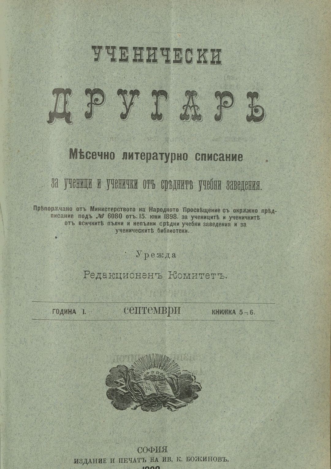 Год. 1, Кн. 5-6. Ученически другар : Месечно литературно списание за ученици и ученички от средните учебни заведения