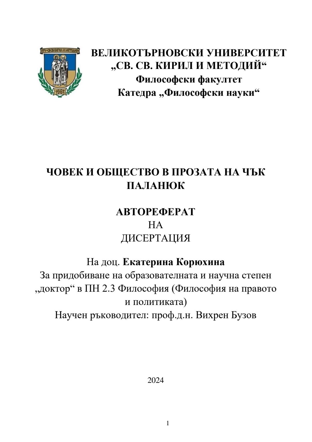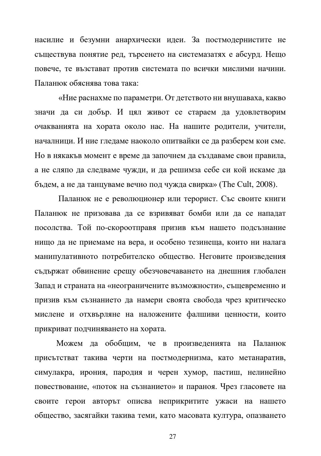 Човек и общество в прозата на Чък Паланюк : Автореферат / Екатерина Корюхина ; Науч. ръководител Вихрен Бузов