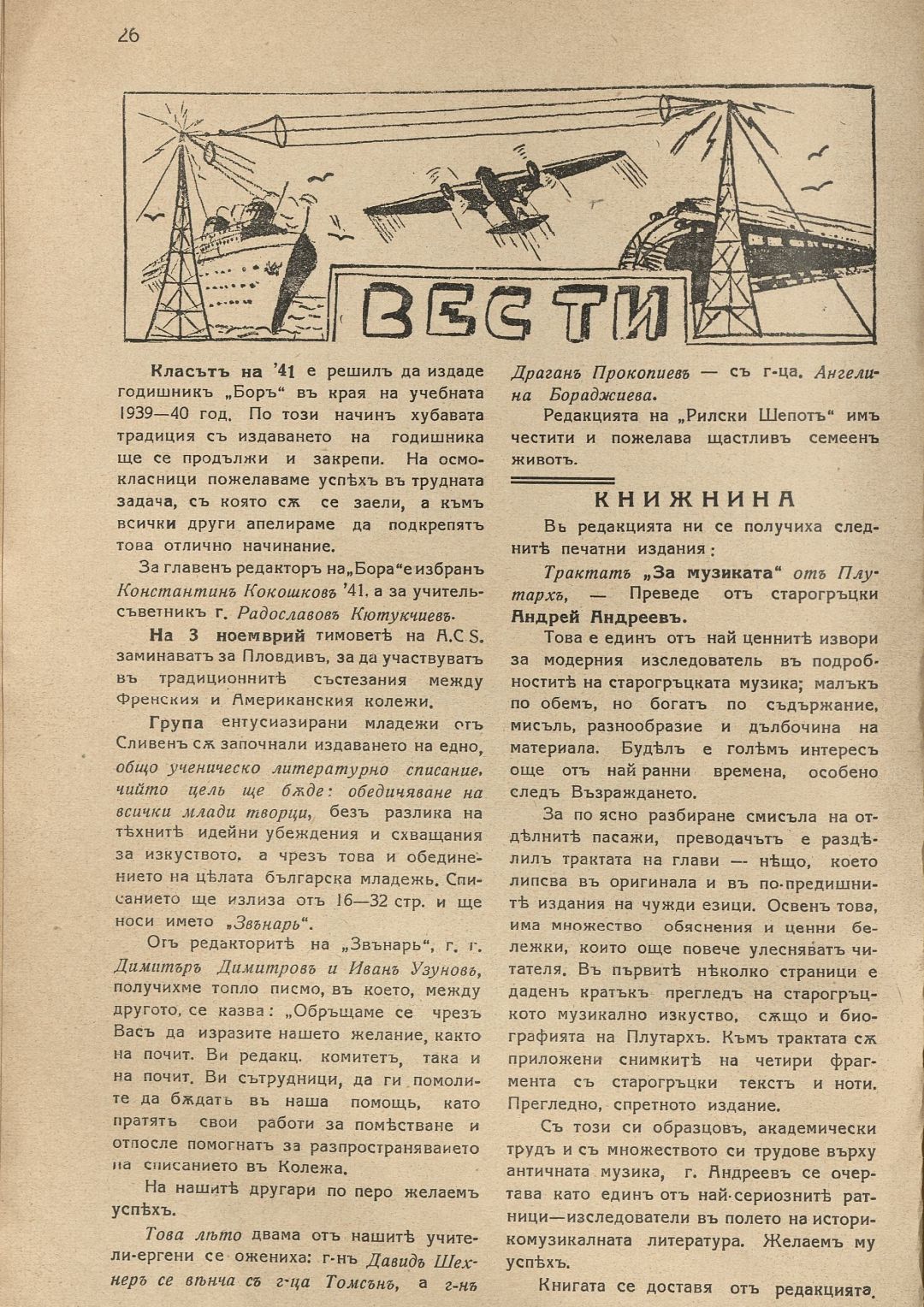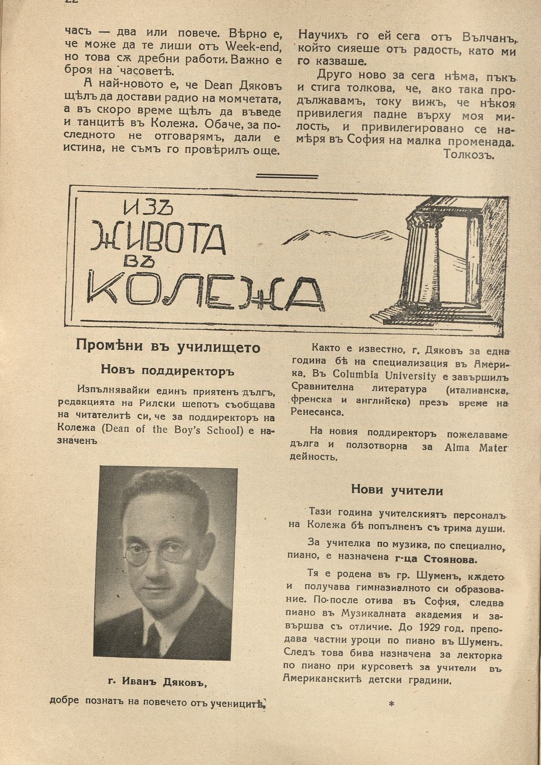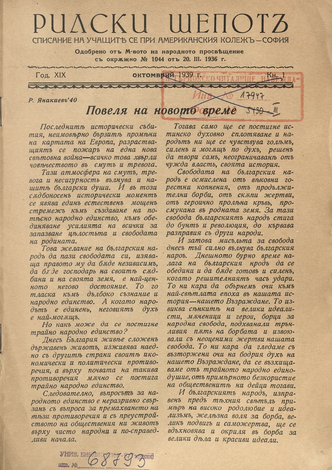 Год. 19, Кн.1. Рилски шепот : Орган на учащите се при Американския колеж - София / Американски колеж - София
