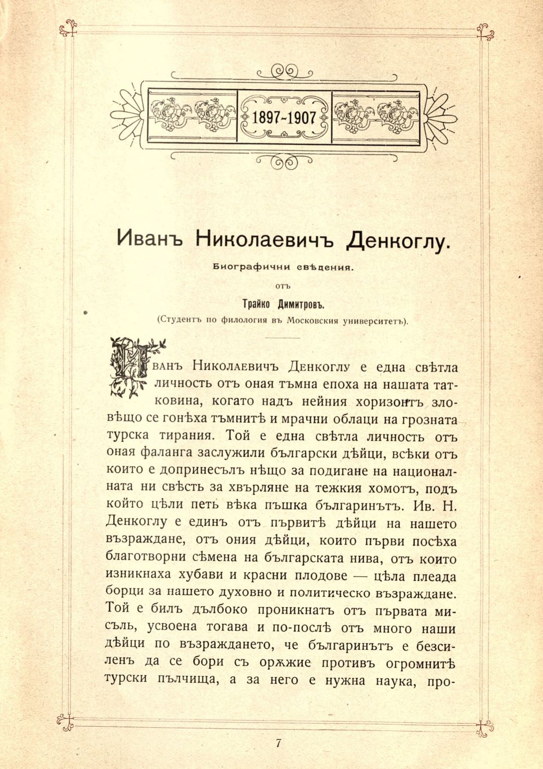 Юбилеен сборник по случай десетгодишнината от основаването на софийското българско благотворително образователно дружество "Ив. Н. Денкоглу" : (1897-1907)