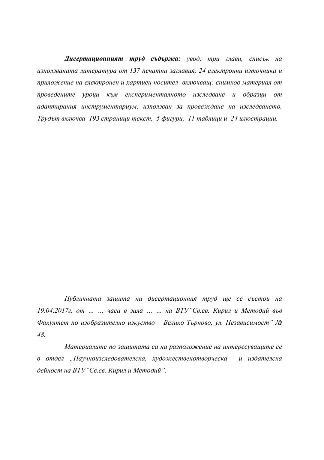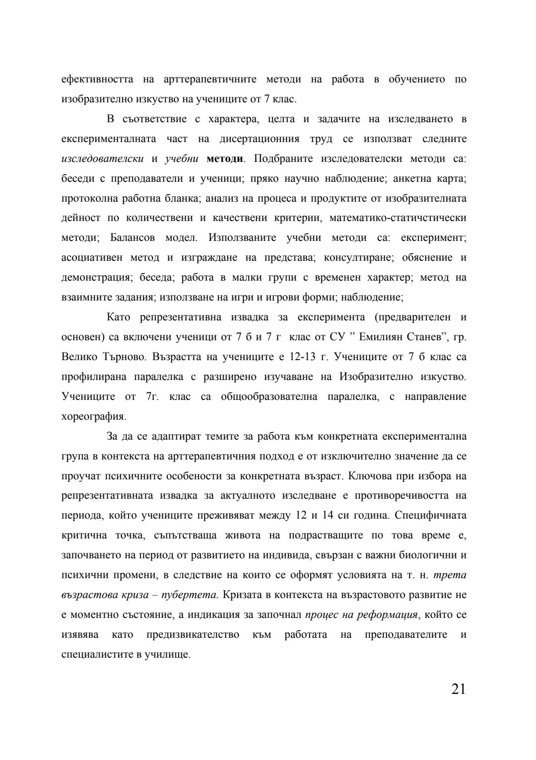 Ефективността на арттерапевтичните методи на работа в обучението по изобразително изкуство : Автореферат / Анастасия Венкова Тонкова-Шрьотле ; Науч. ръководител Мариана Гърмидолова