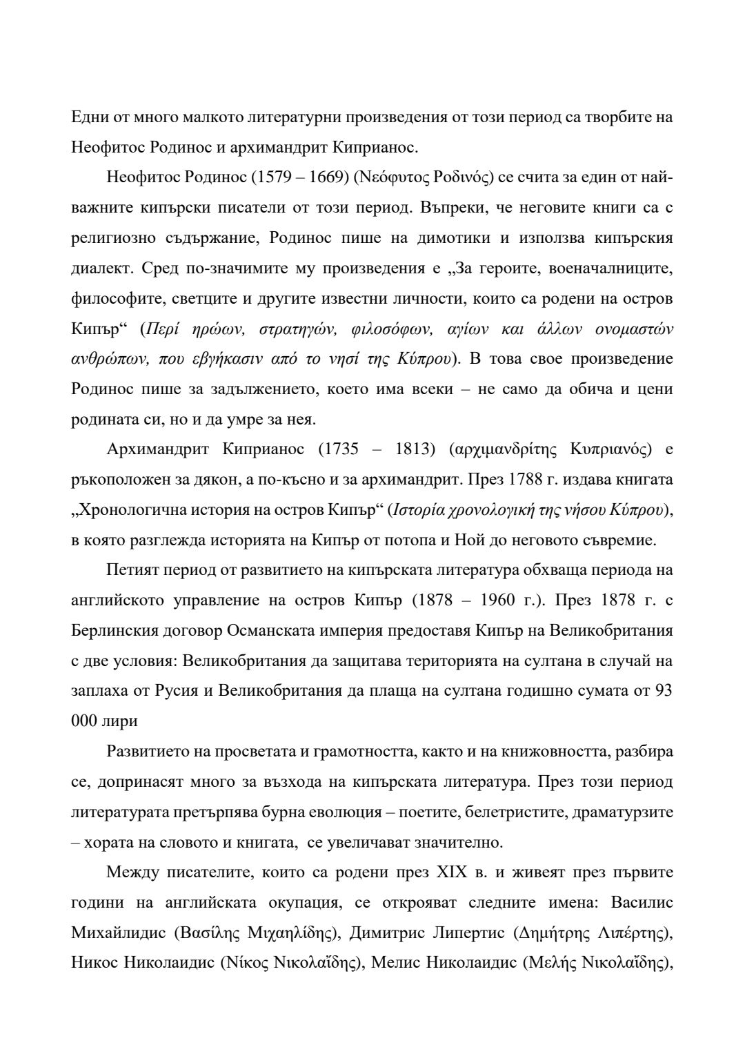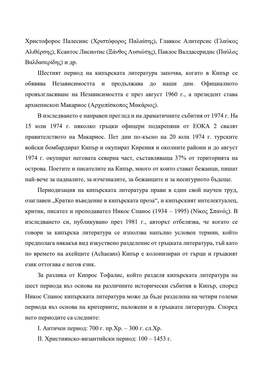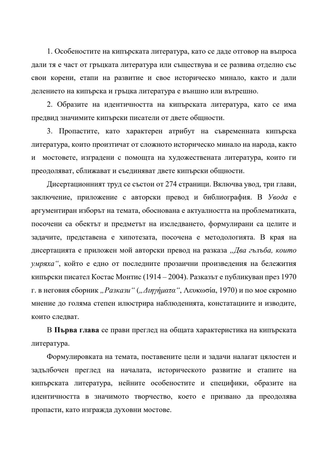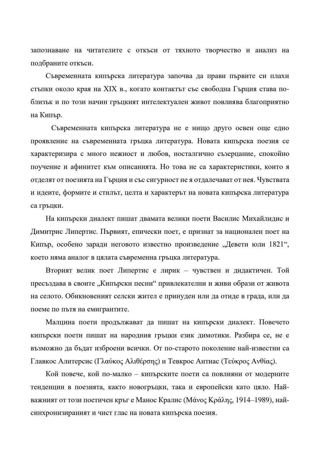 Кипърската литература – образи на идентичността, пропасти и мостове : Автореферат / Боряна Любомирова Манолова ; Науч. ръководител Владимир Владов