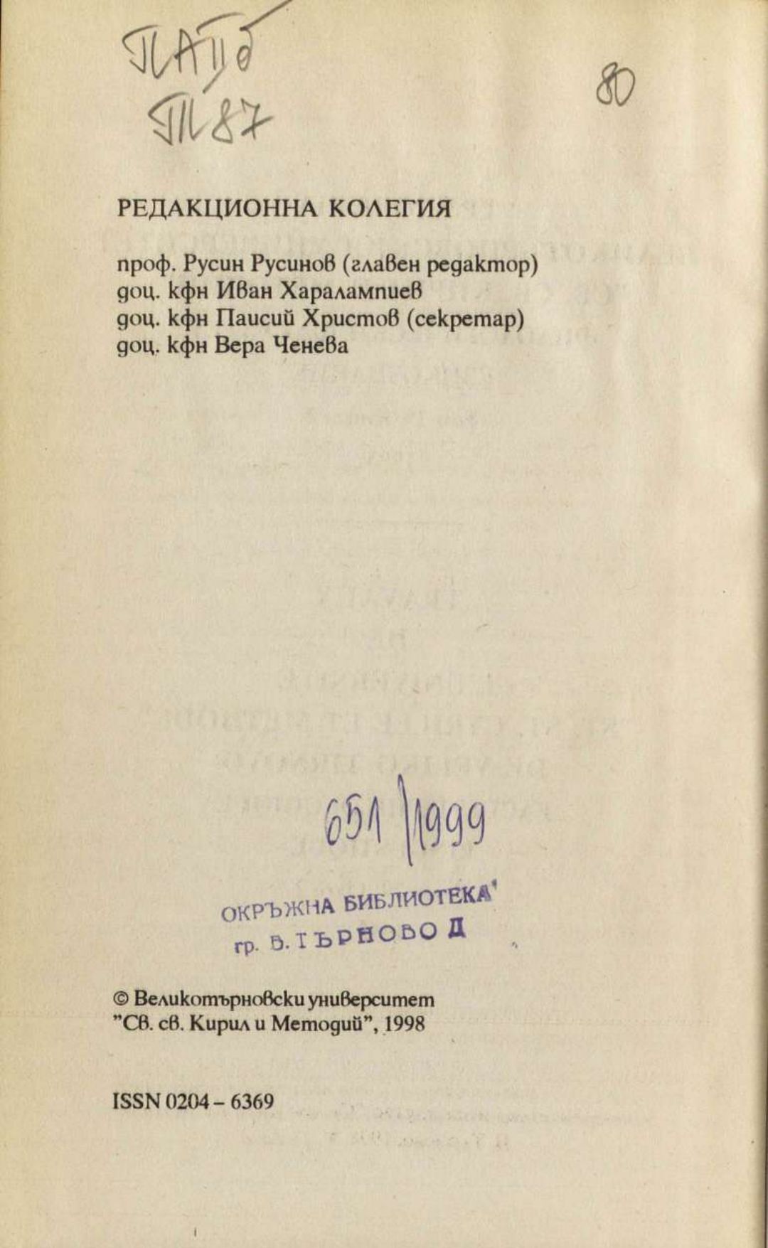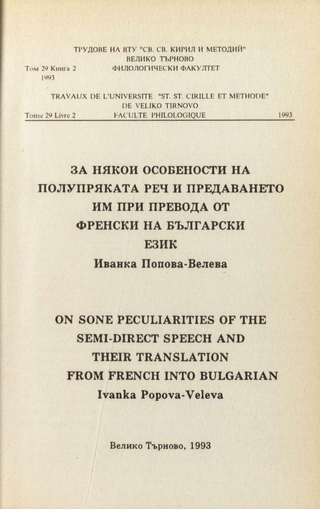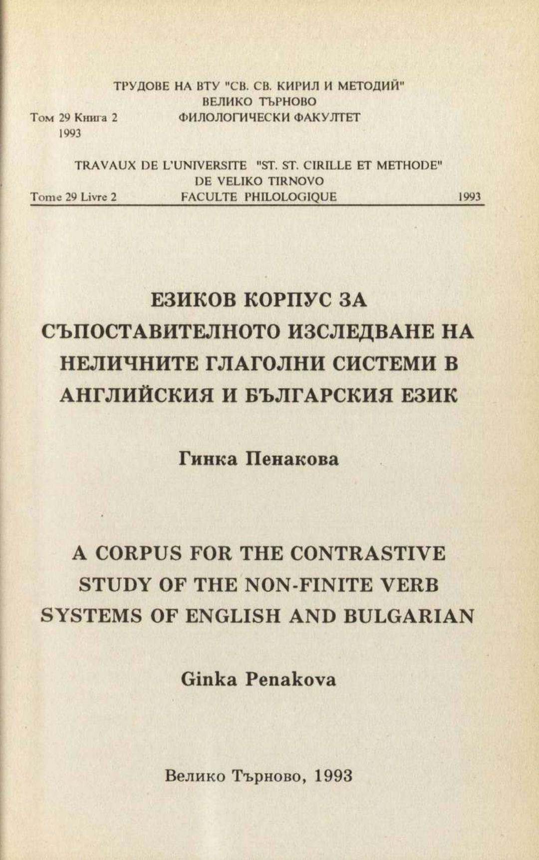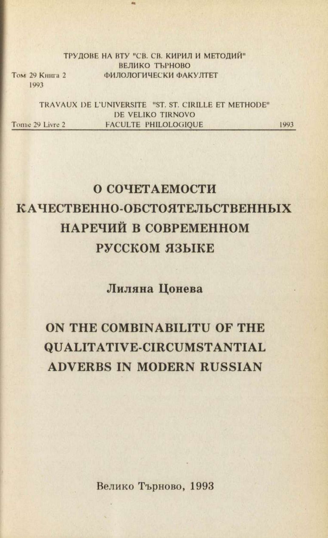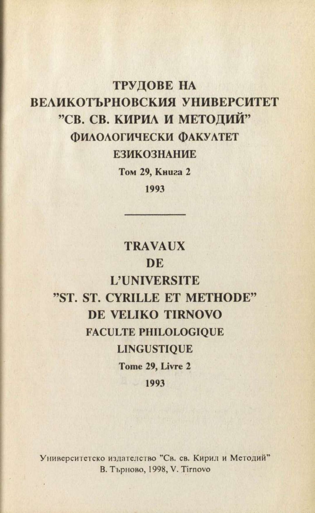 Том 29. Кн.2. Трудове на Великотърновския университет "Св. св. Кирил и Методий". Филологически факултет = Travaux de L'universite St. St. Cyrille et Methode de Veliko Tirnovo. Faculte de philologue Езикознание