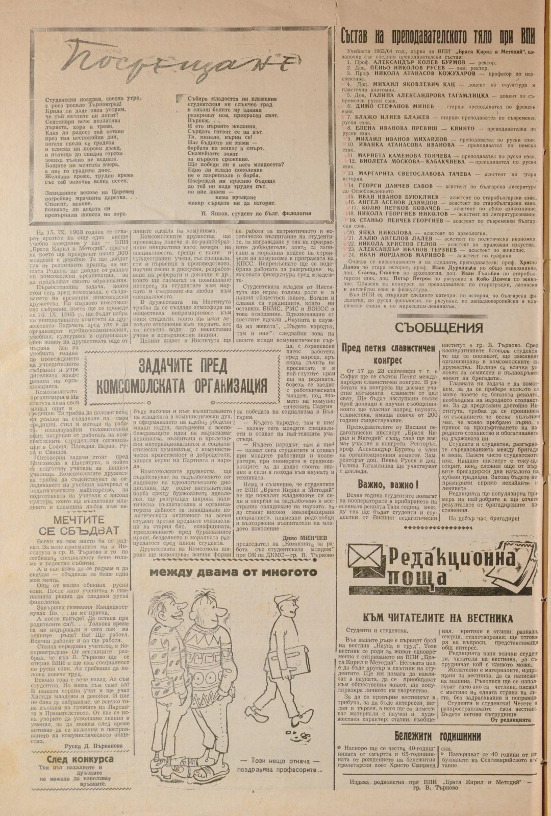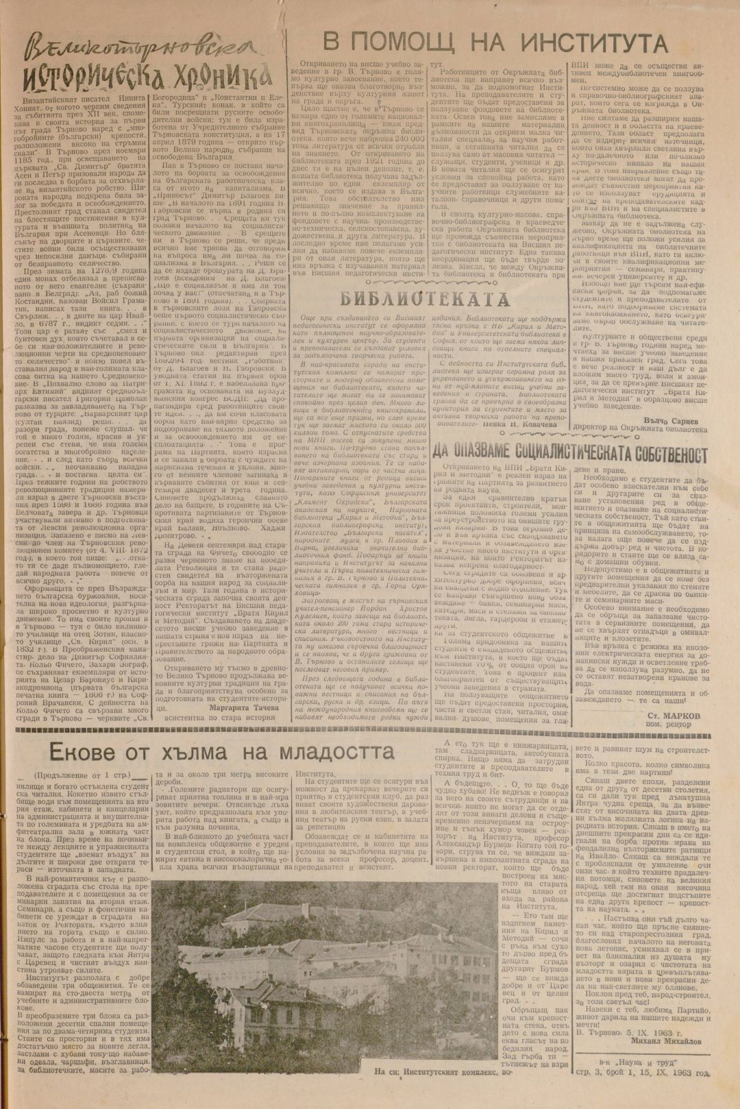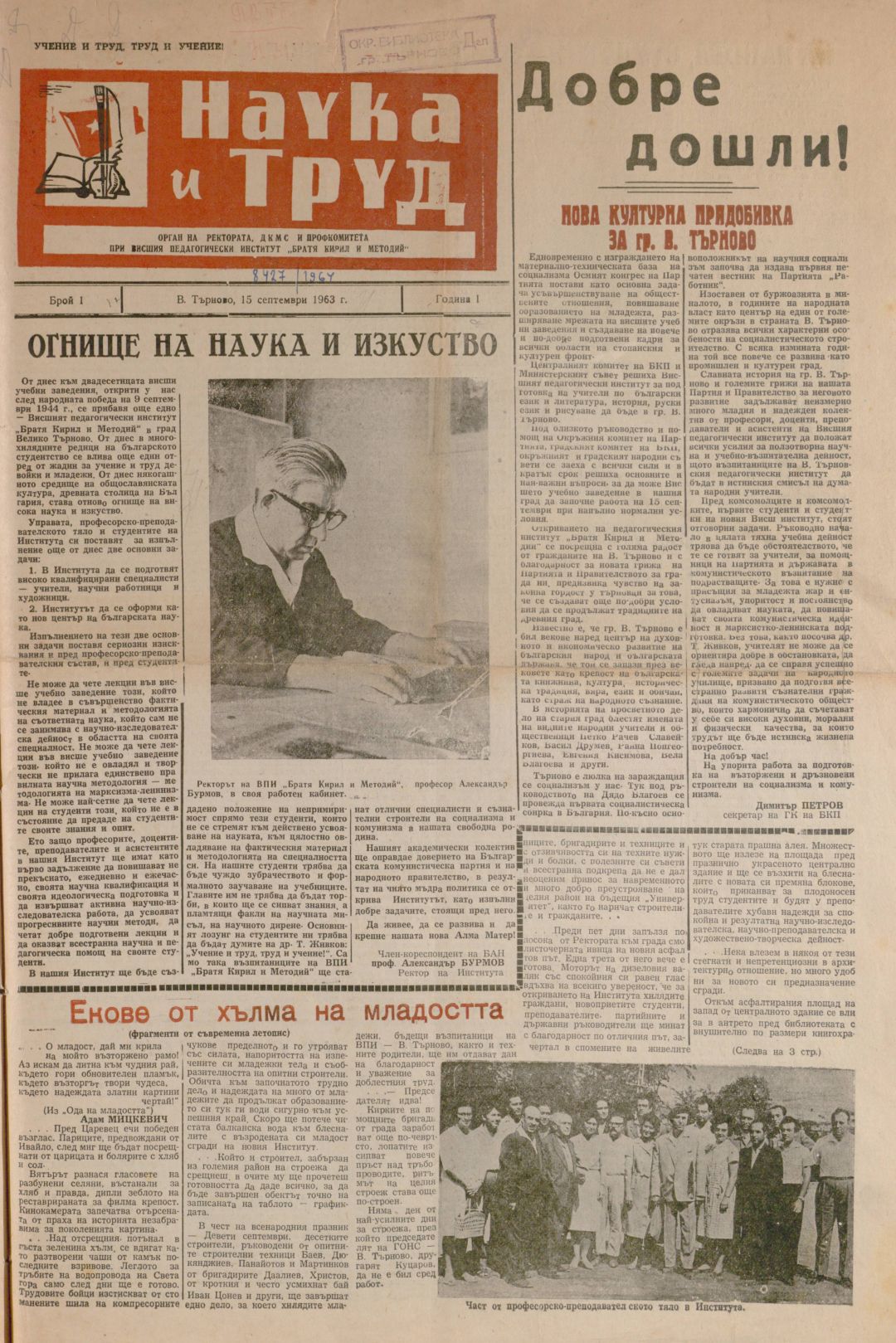 Год. 1, 1. Наука и труд : Орган на Ректората, ДКМС и Профкомитета при ВПИ "Братя Кирил и Методий", 1963