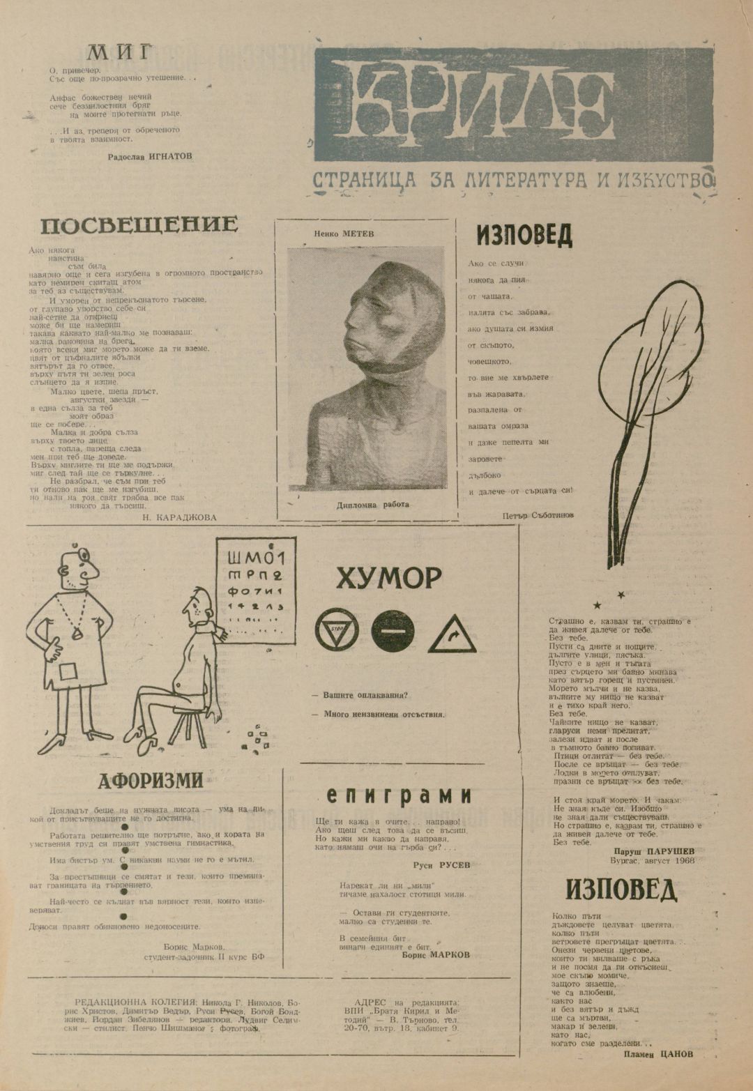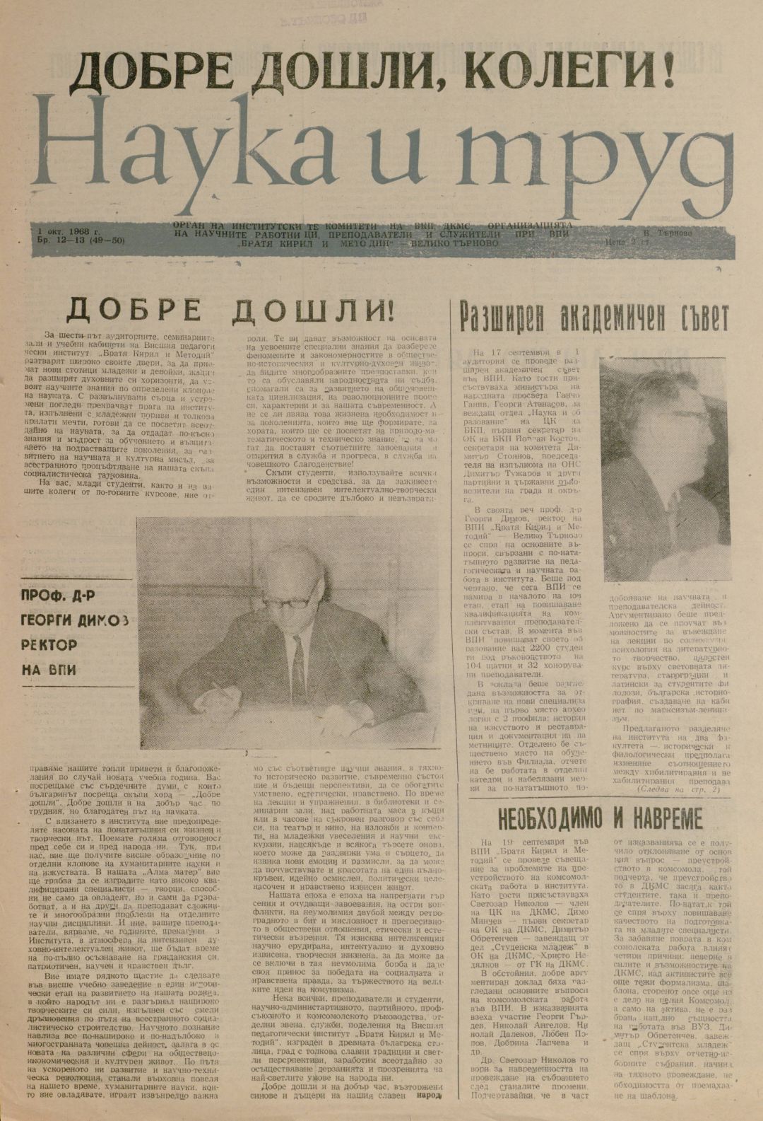 Год. 6,12-13 (49-50). Наука и труд : Орган на БКП, ДКМС и Профорганизацията и Ректората на ВПИ "Братя Кирил и Методий" Ред. кол.: Колектив Ключови думи :
