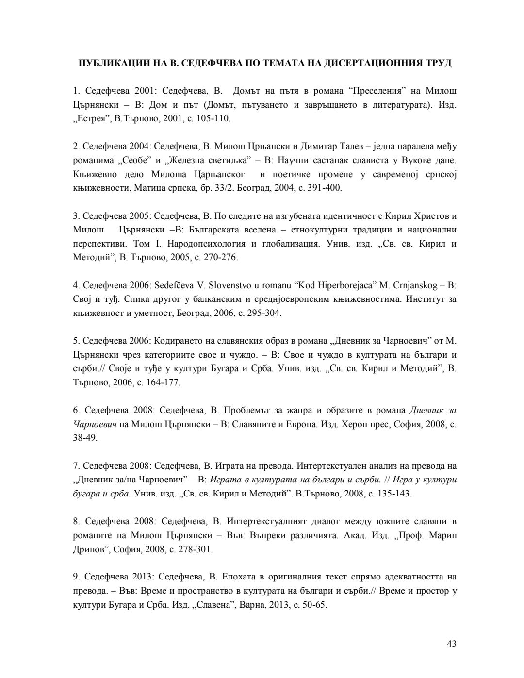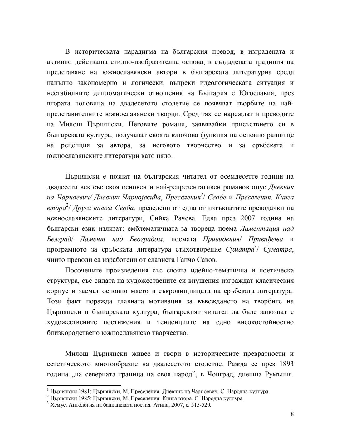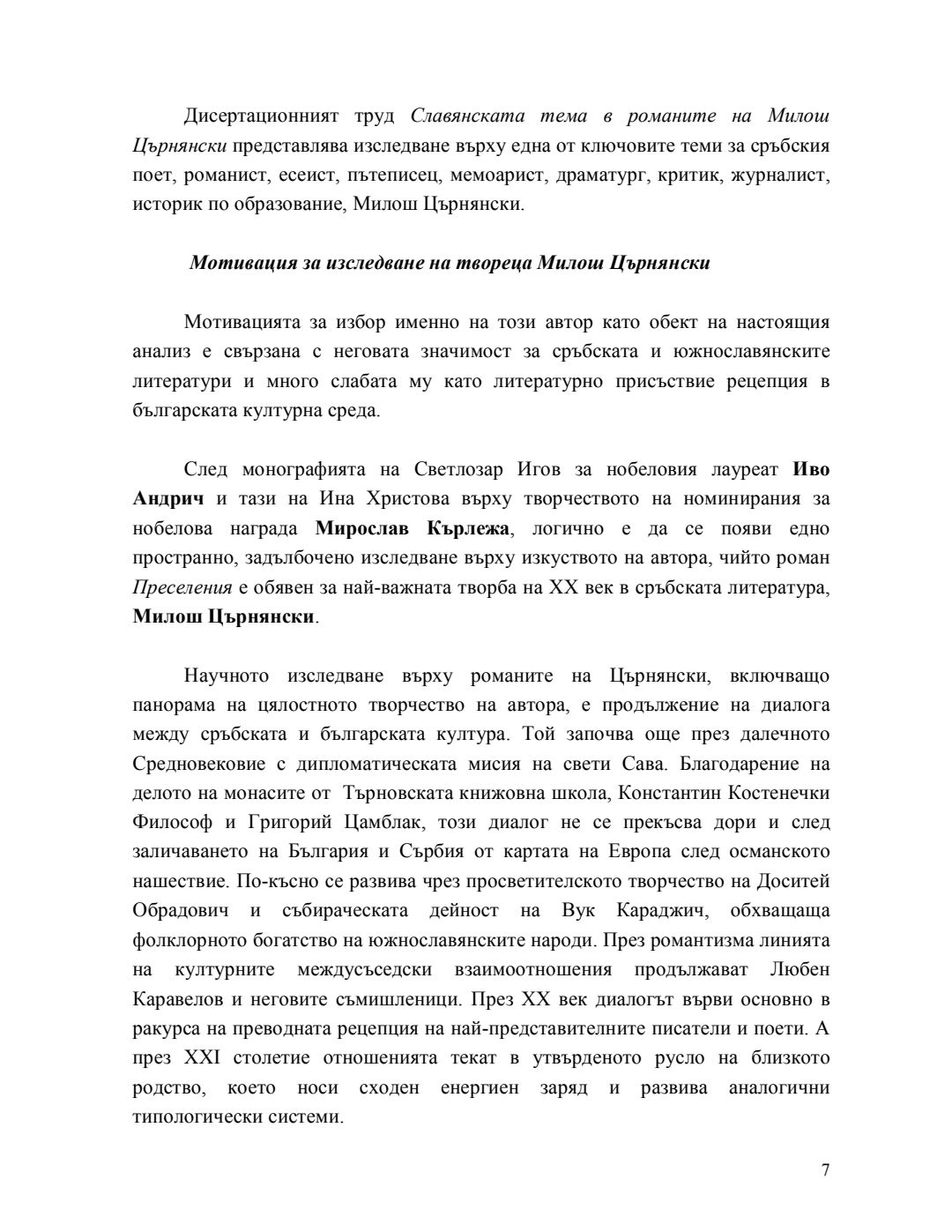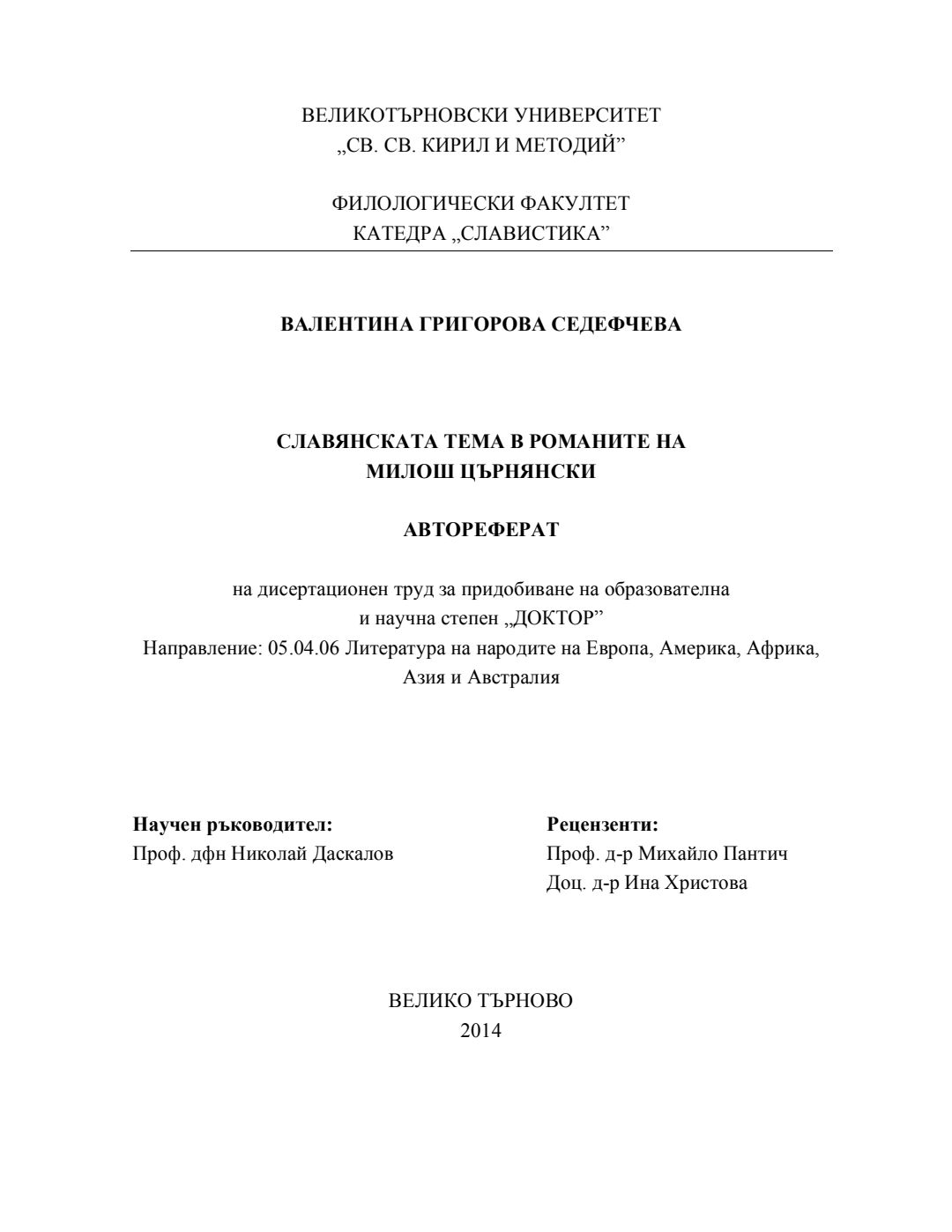 Славянската тема в романите на Милош Църнянски : Автореферат / Валентина Григорова Седефчева ; Науч. ръководител Николай Даскалов