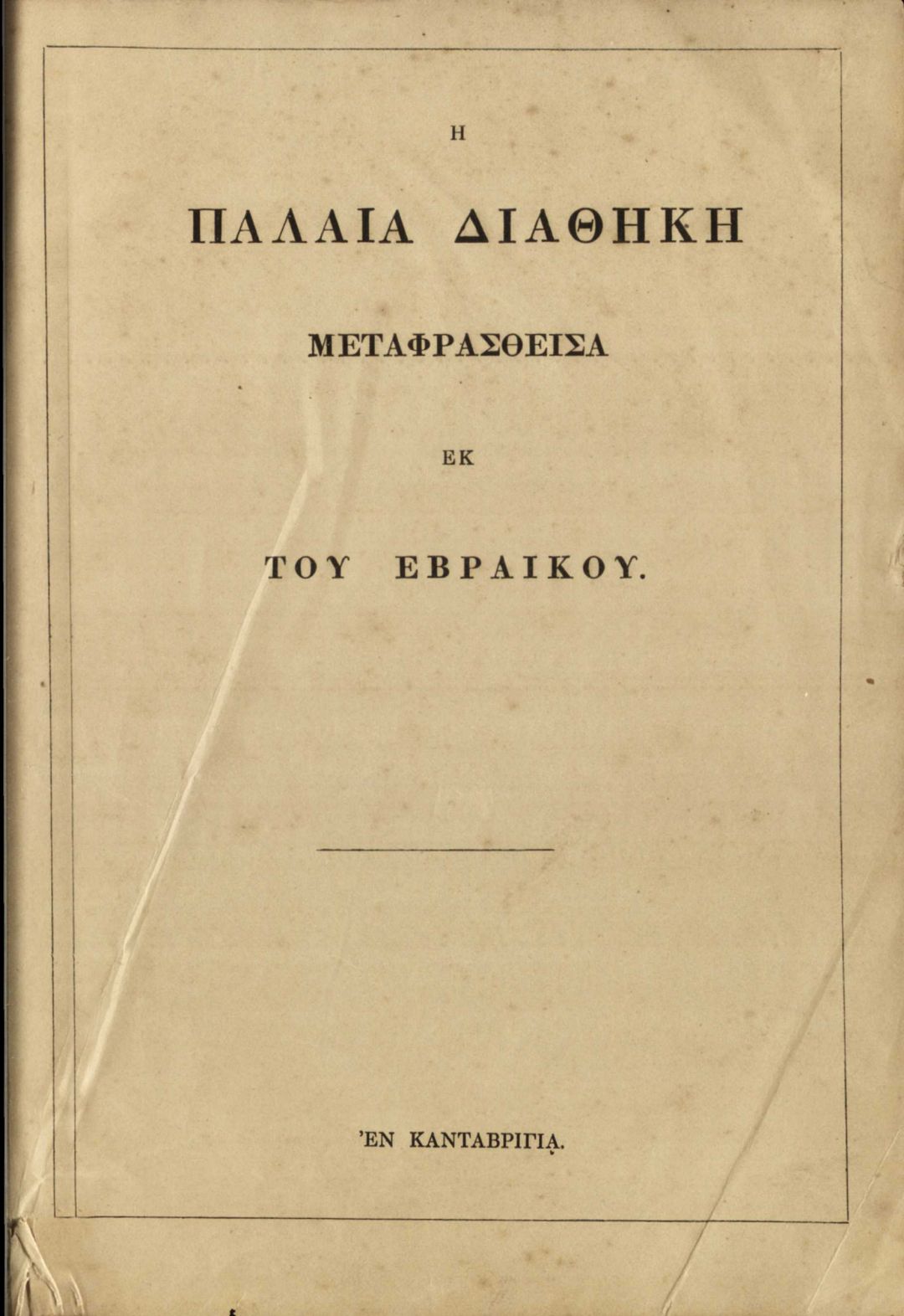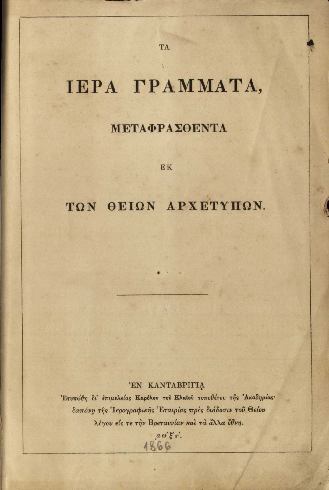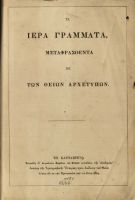 Ta iera Grammata, metaphrasthenta ek ton theion archetypon . - En Katabrigia : Karoloy toy Klaioy, 1866 . - 1254 с. ; 24 см