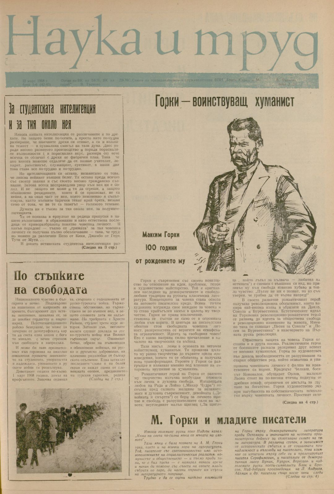 Год. 6, 5–6 (42–43). Наука и труд : Орган на БКП, ДКМС и Профорганизацията и Ректората на ВПИ "Братя Кирил и Методий"