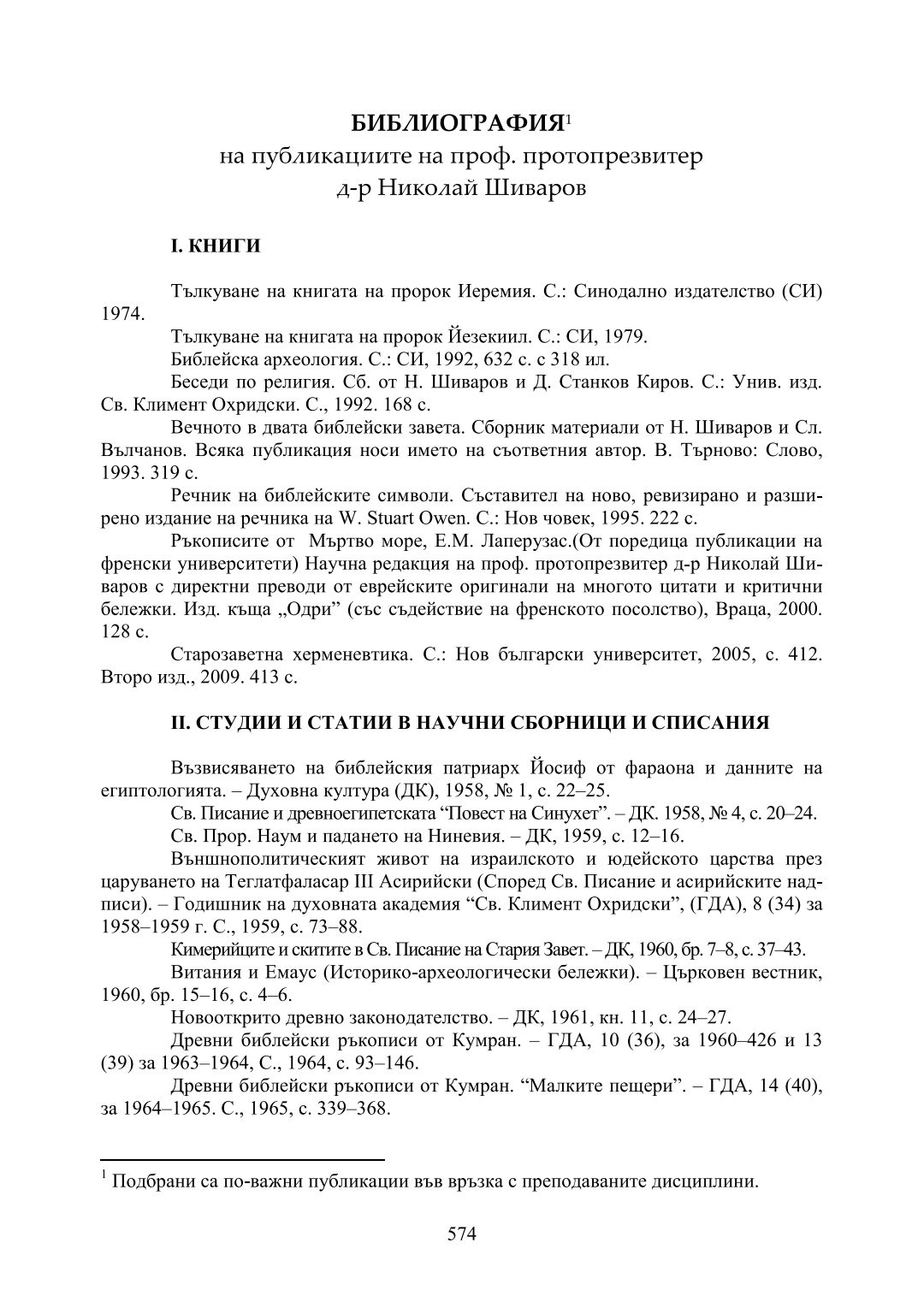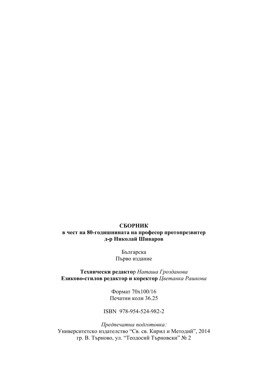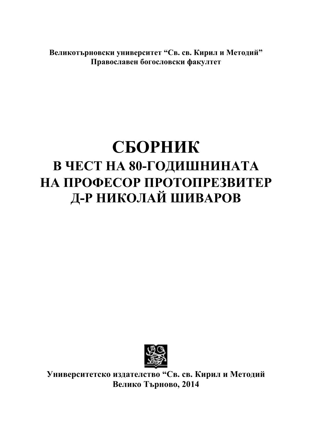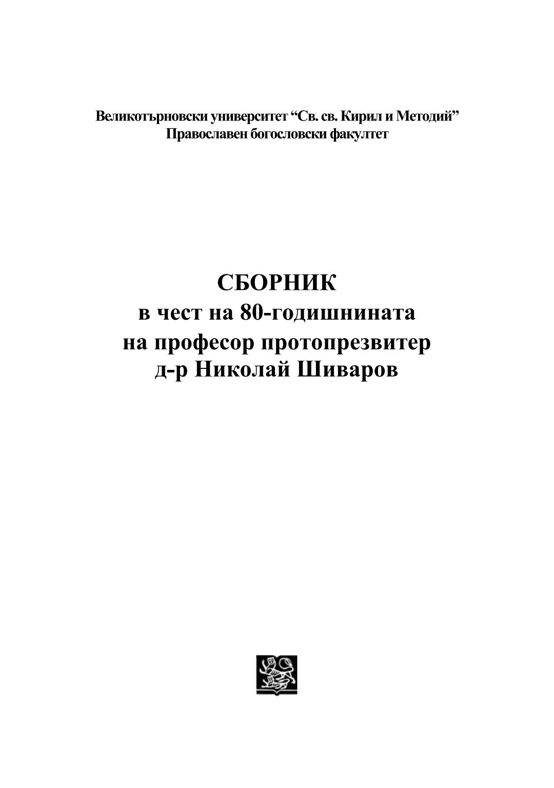 Сборник в чест на 80-годишнината на професор протопрезвитер д-р Николай Шиваров