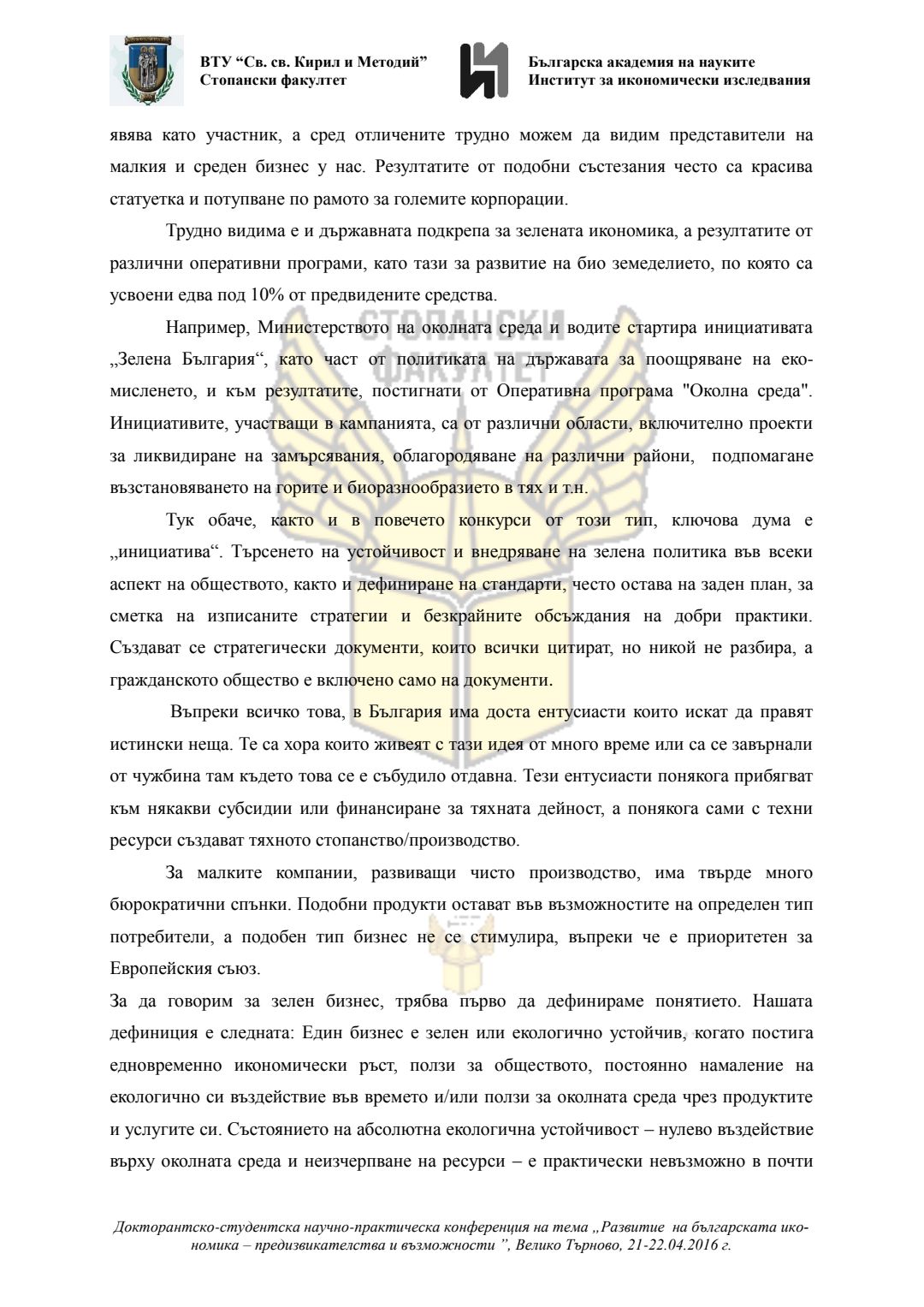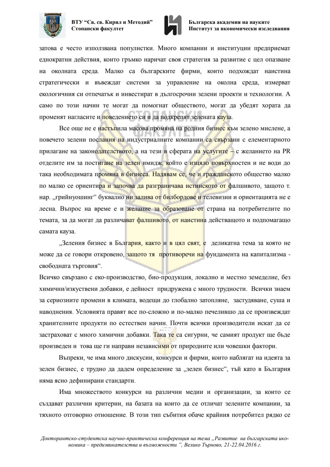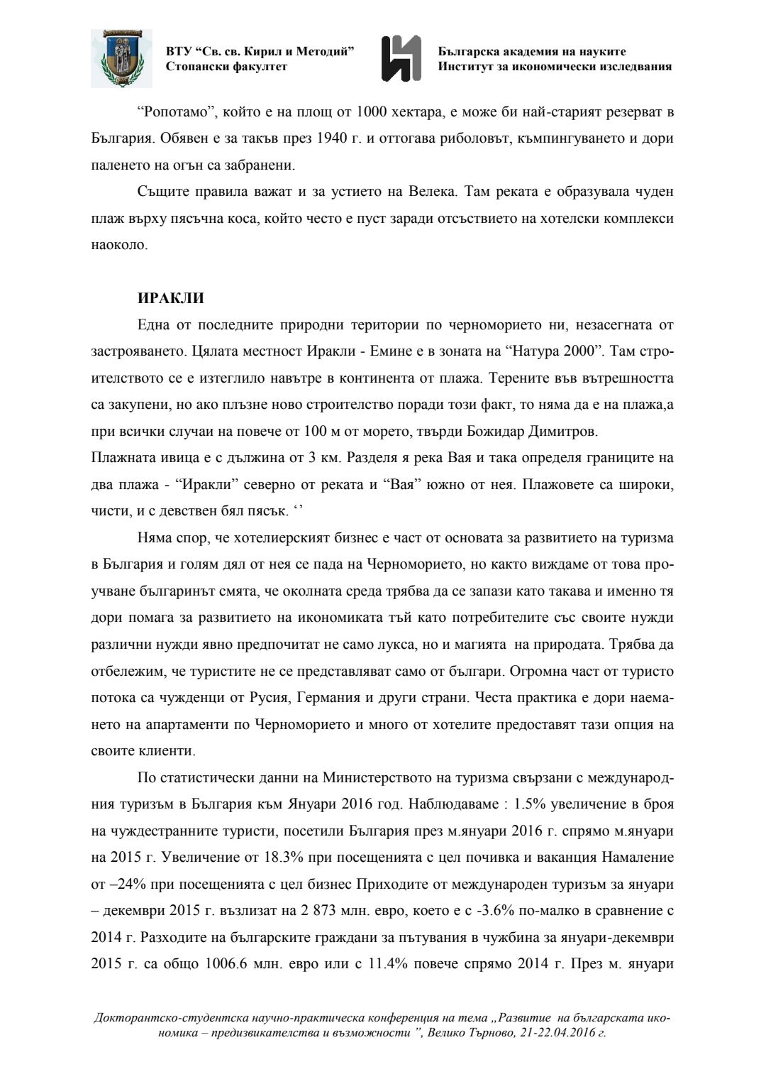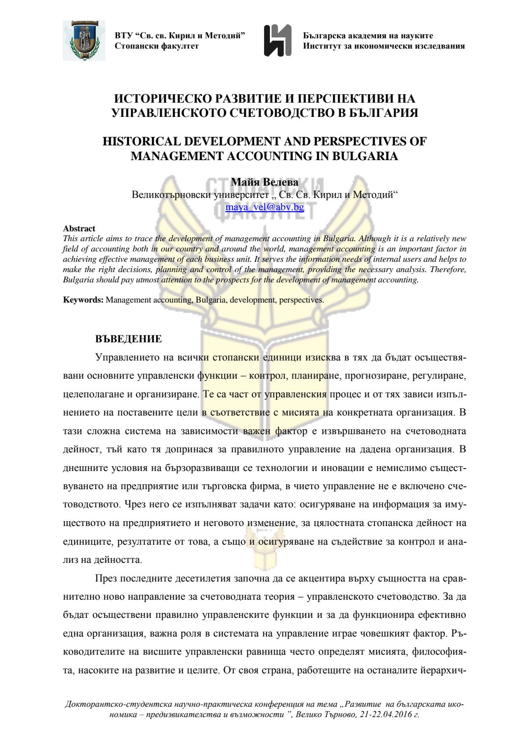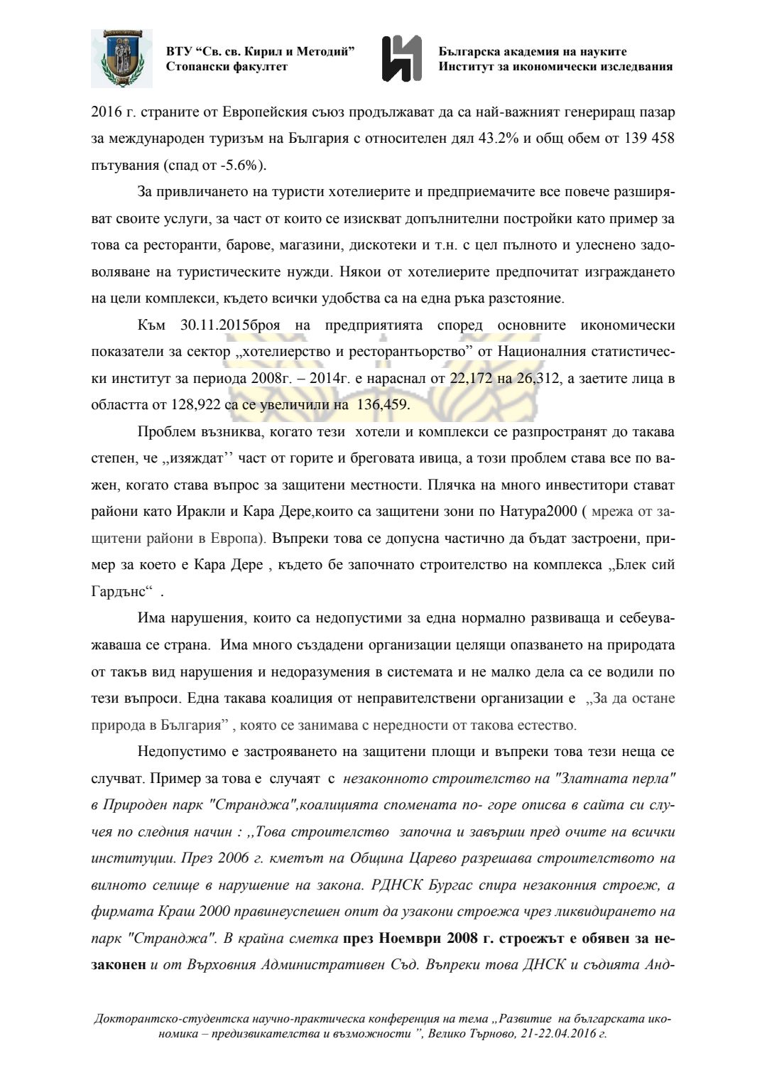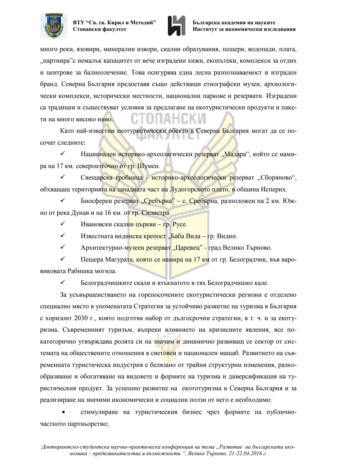 Докторантско-студентска научно-практическа конференция "Развитие на българската икономика - предизвикателства и възможности", 21 април 2016 г., Велико Търново : сборник с доклади