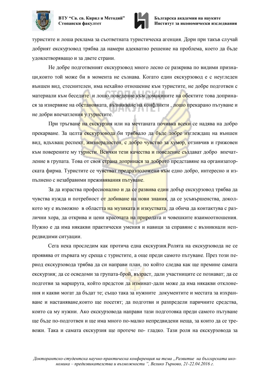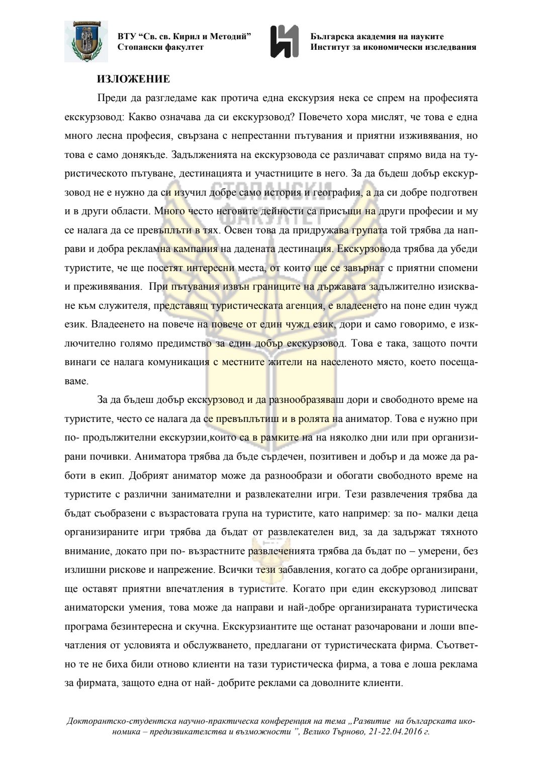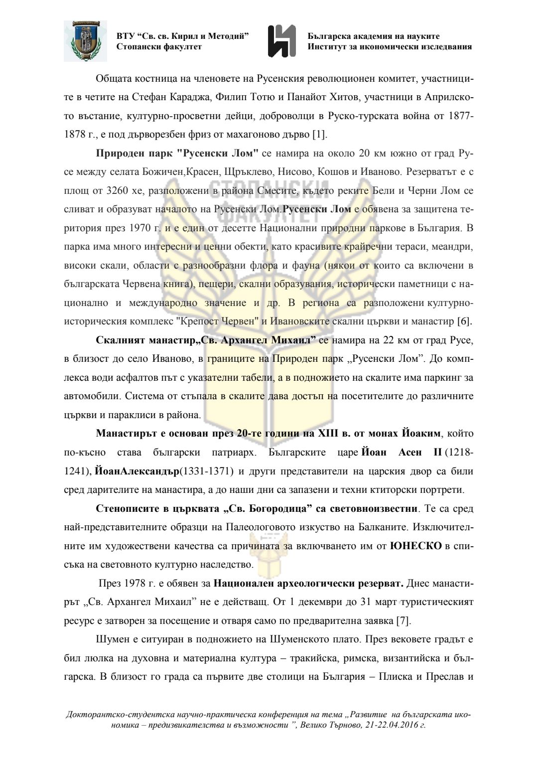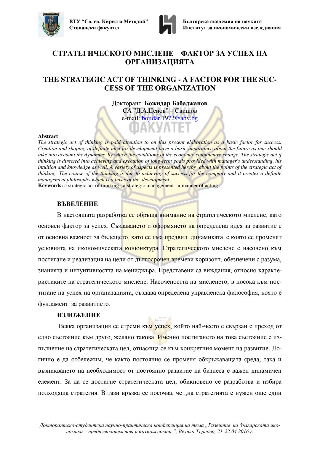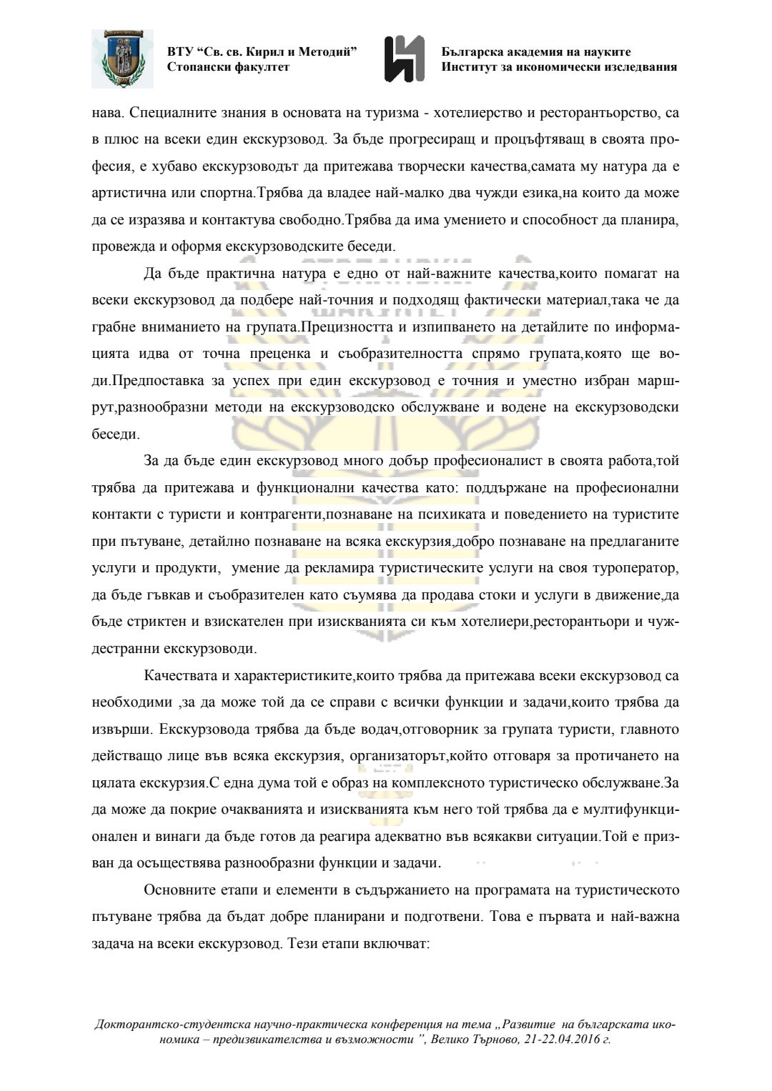 Докторантско-студентска научно-практическа конференция "Развитие на българската икономика - предизвикателства и възможности", 21 април 2016 г., Велико Търново : сборник с доклади
