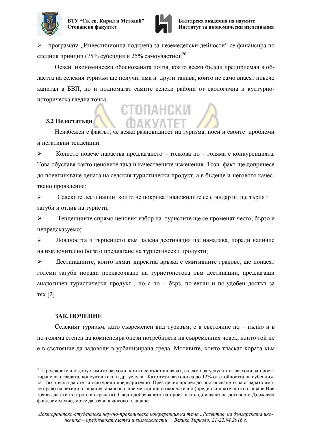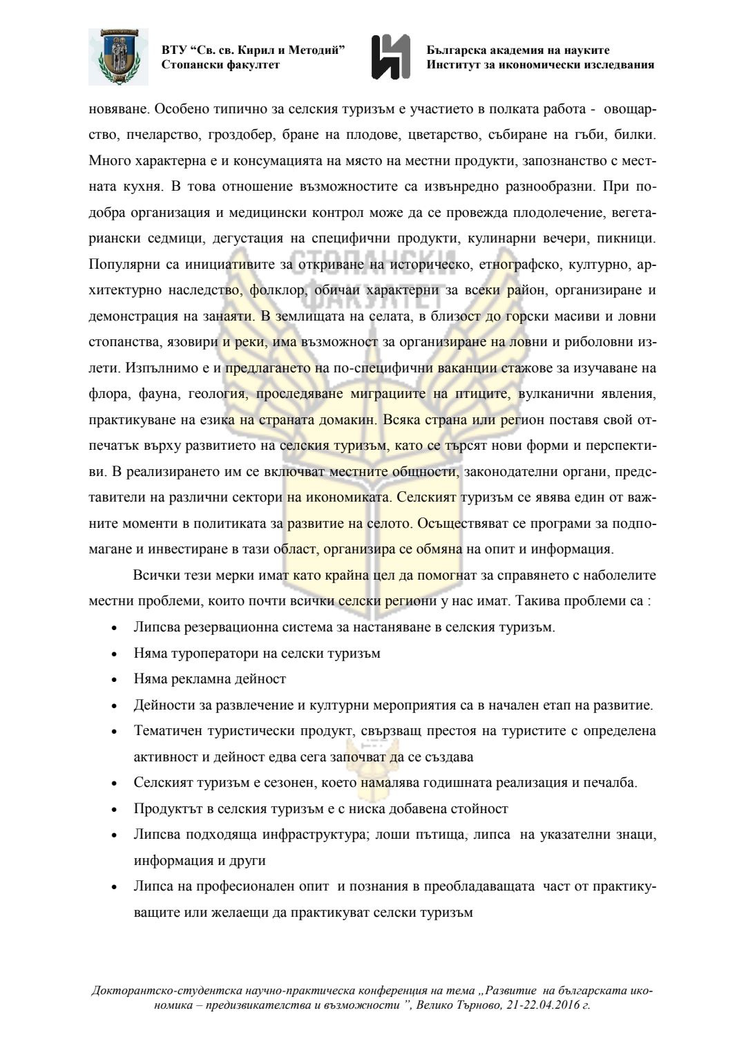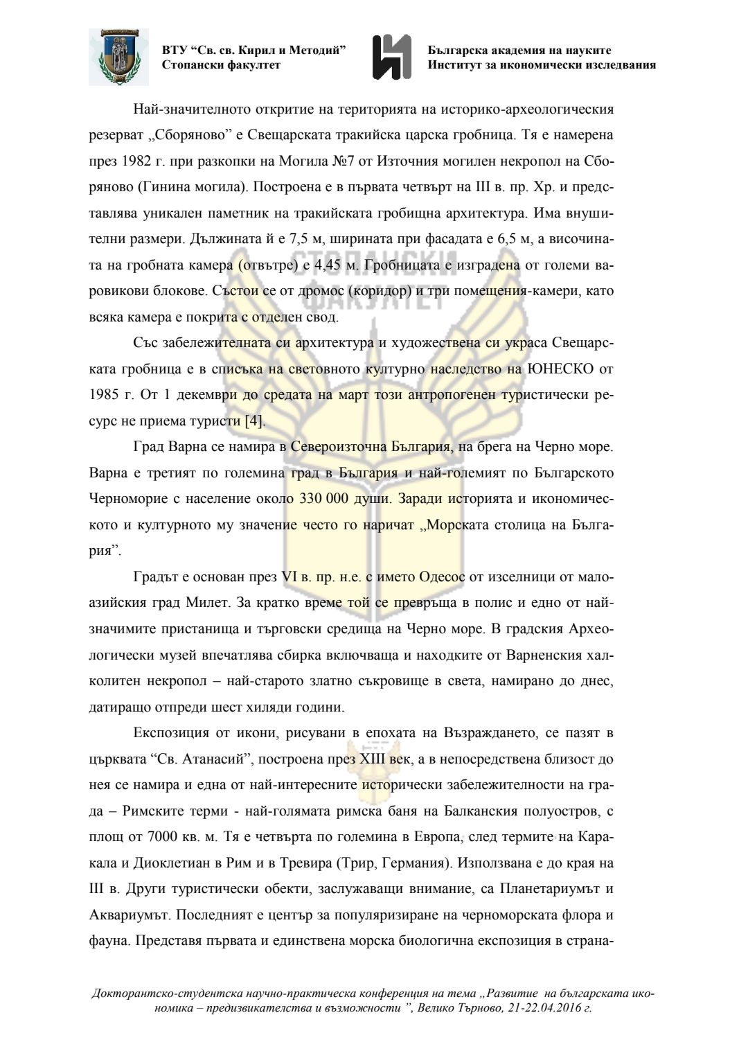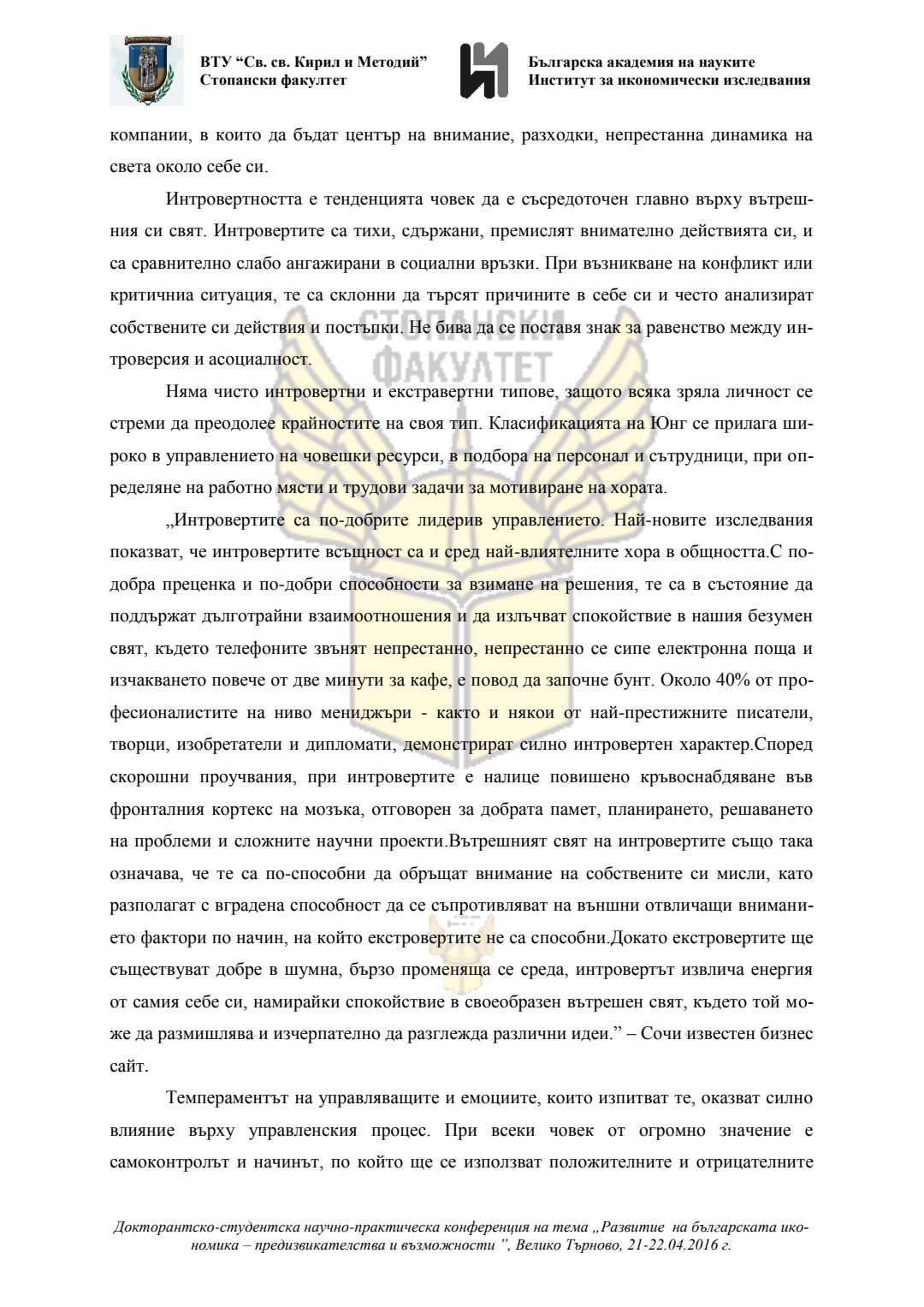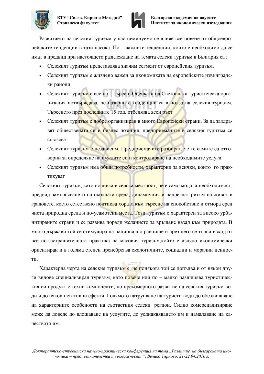 Докторантско-студентска научно-практическа конференция "Развитие на българската икономика - предизвикателства и възможности", 21 април 2016 г., Велико Търново : сборник с доклади
