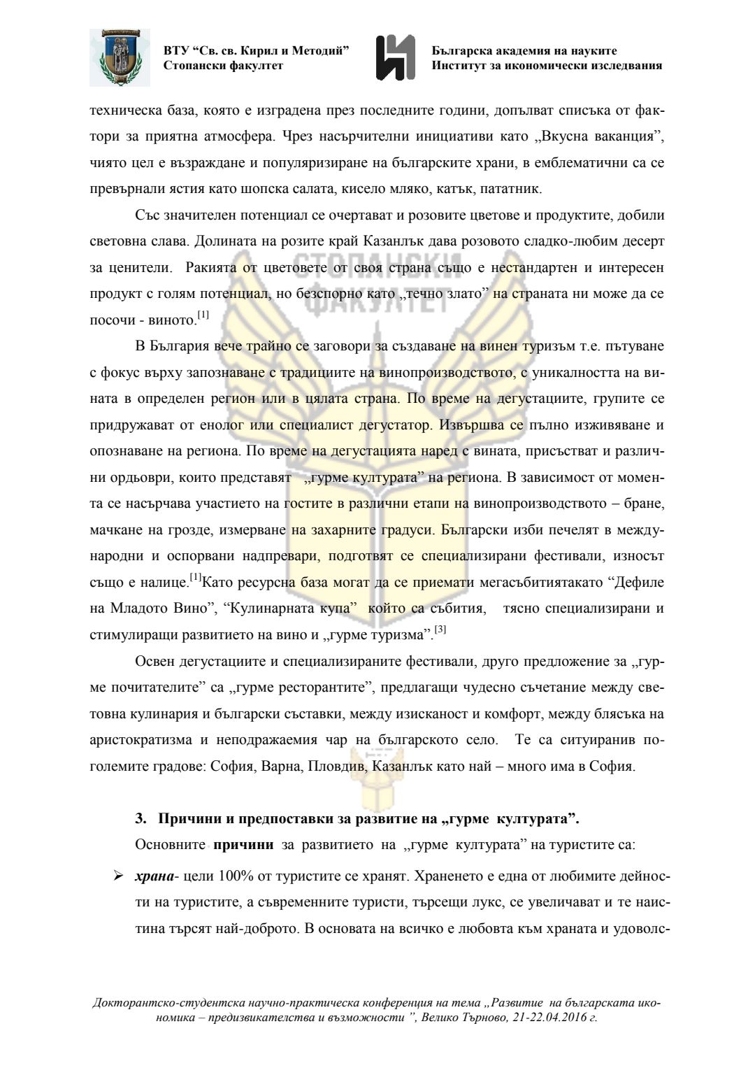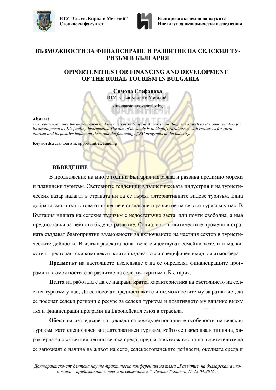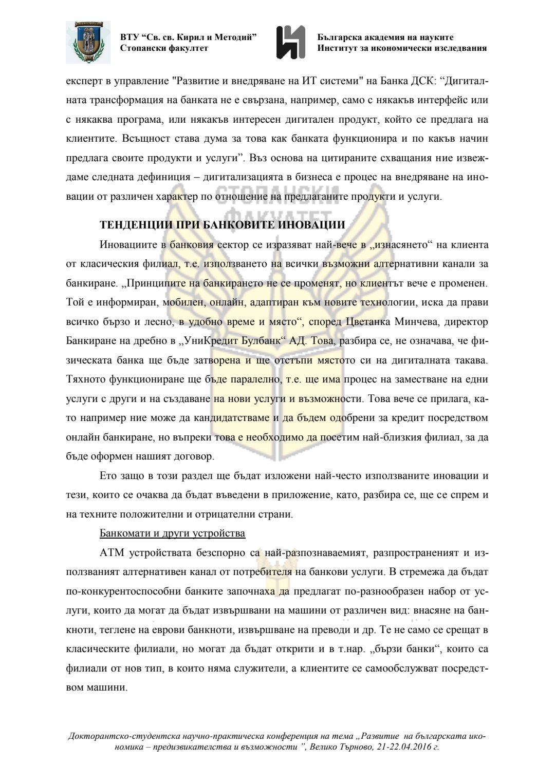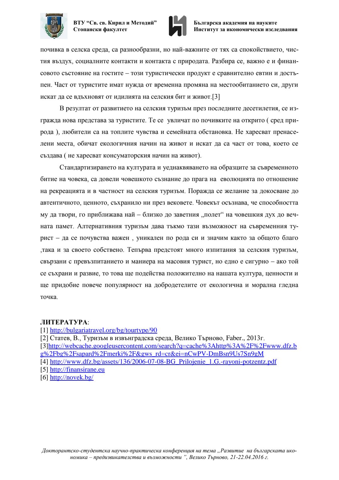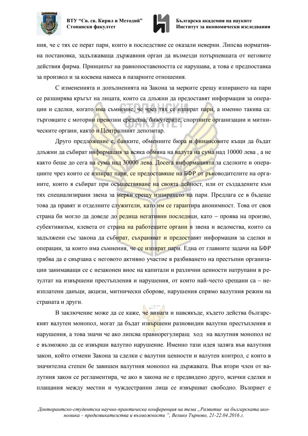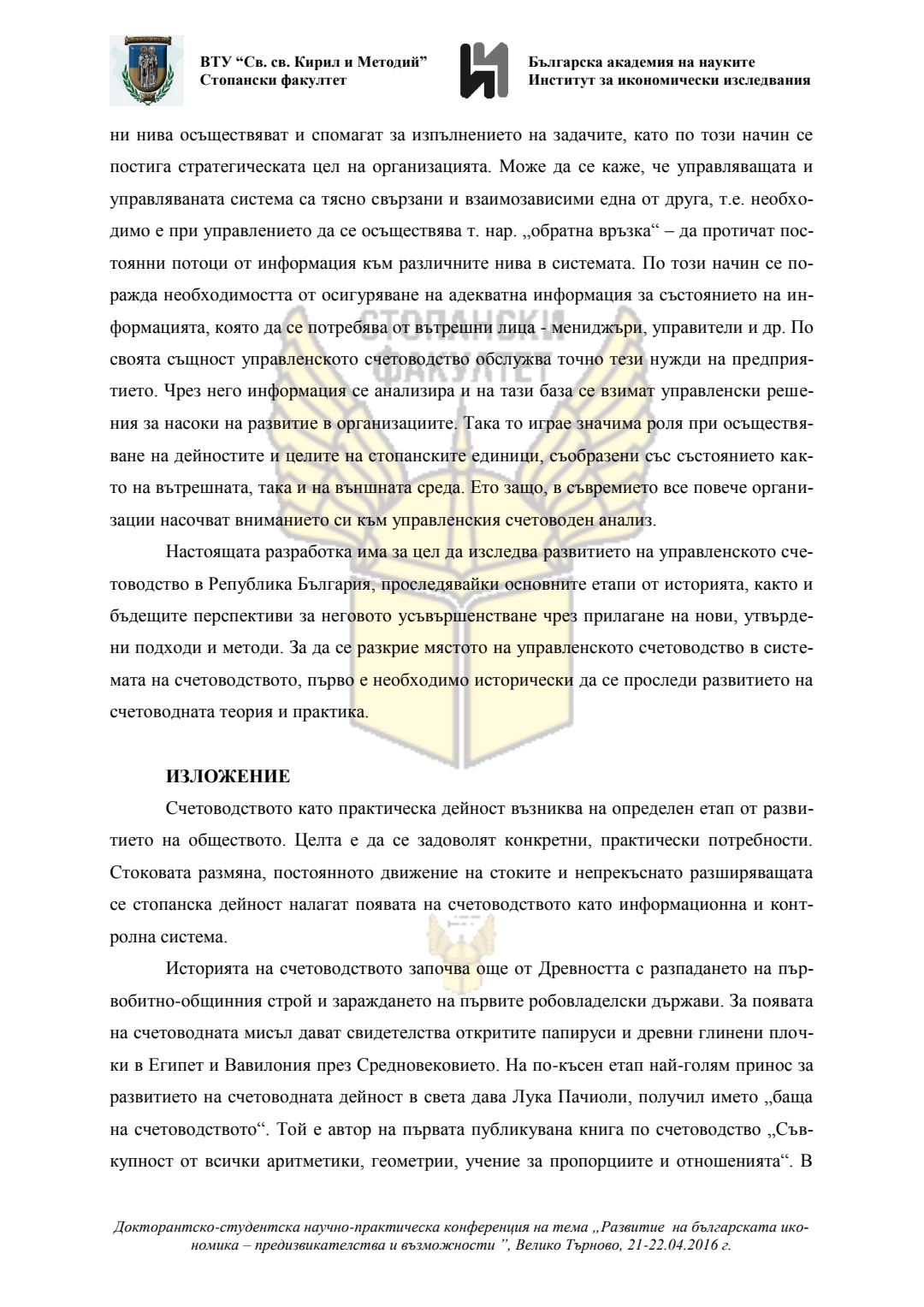 Докторантско-студентска научно-практическа конференция "Развитие на българската икономика - предизвикателства и възможности", 21 април 2016 г., Велико Търново : сборник с доклади