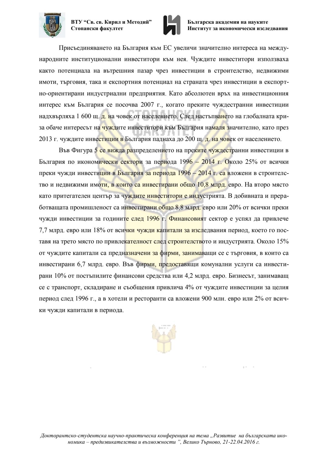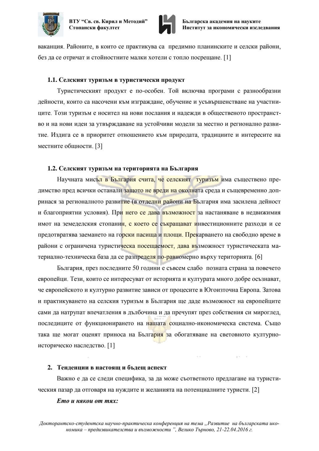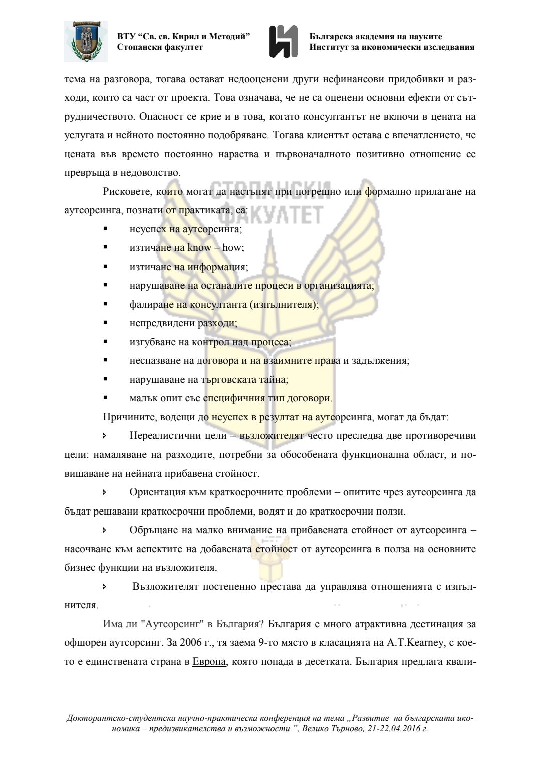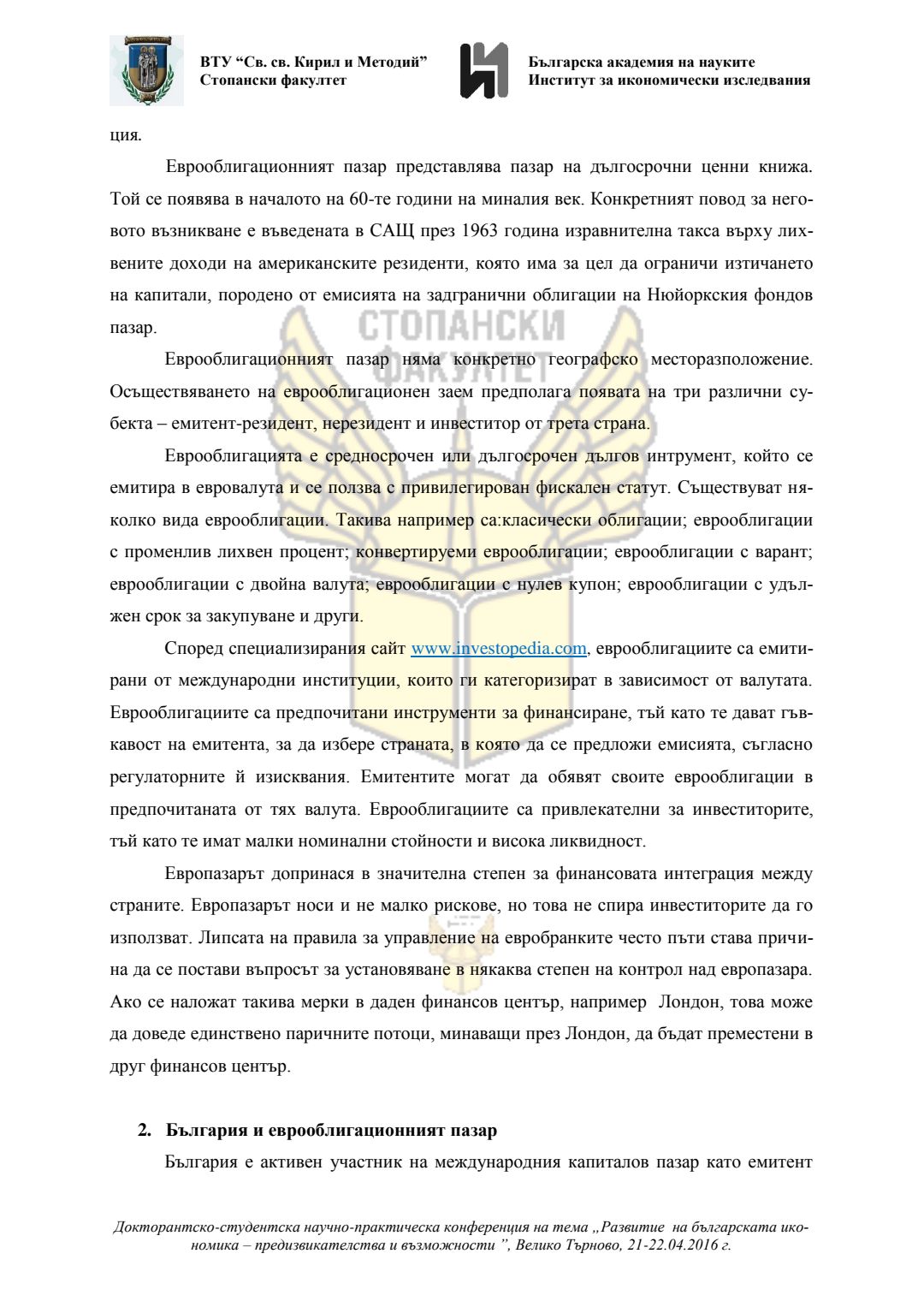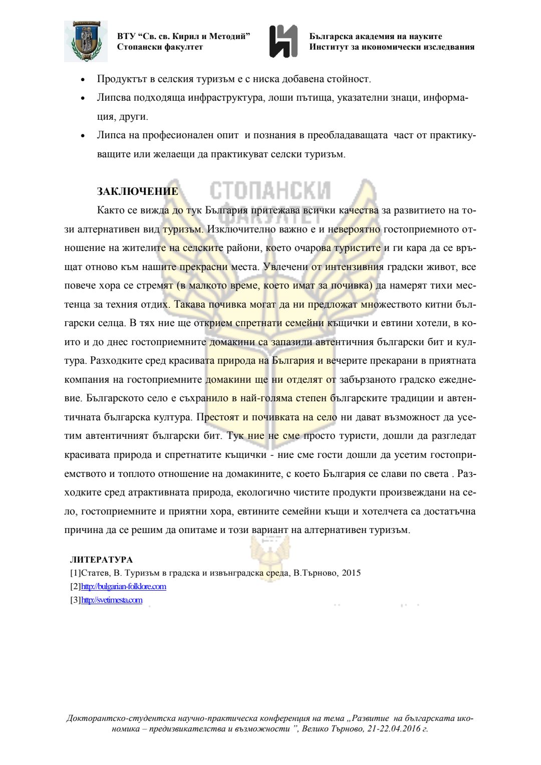 Докторантско-студентска научно-практическа конференция "Развитие на българската икономика - предизвикателства и възможности", 21 април 2016 г., Велико Търново : сборник с доклади