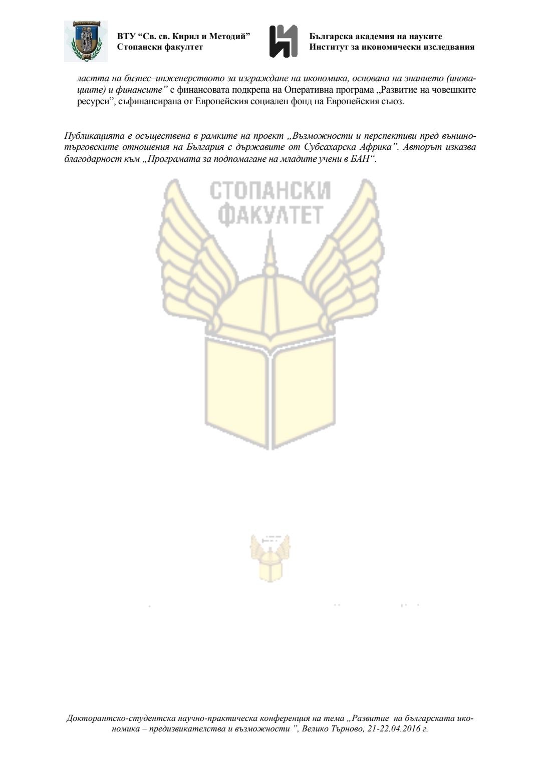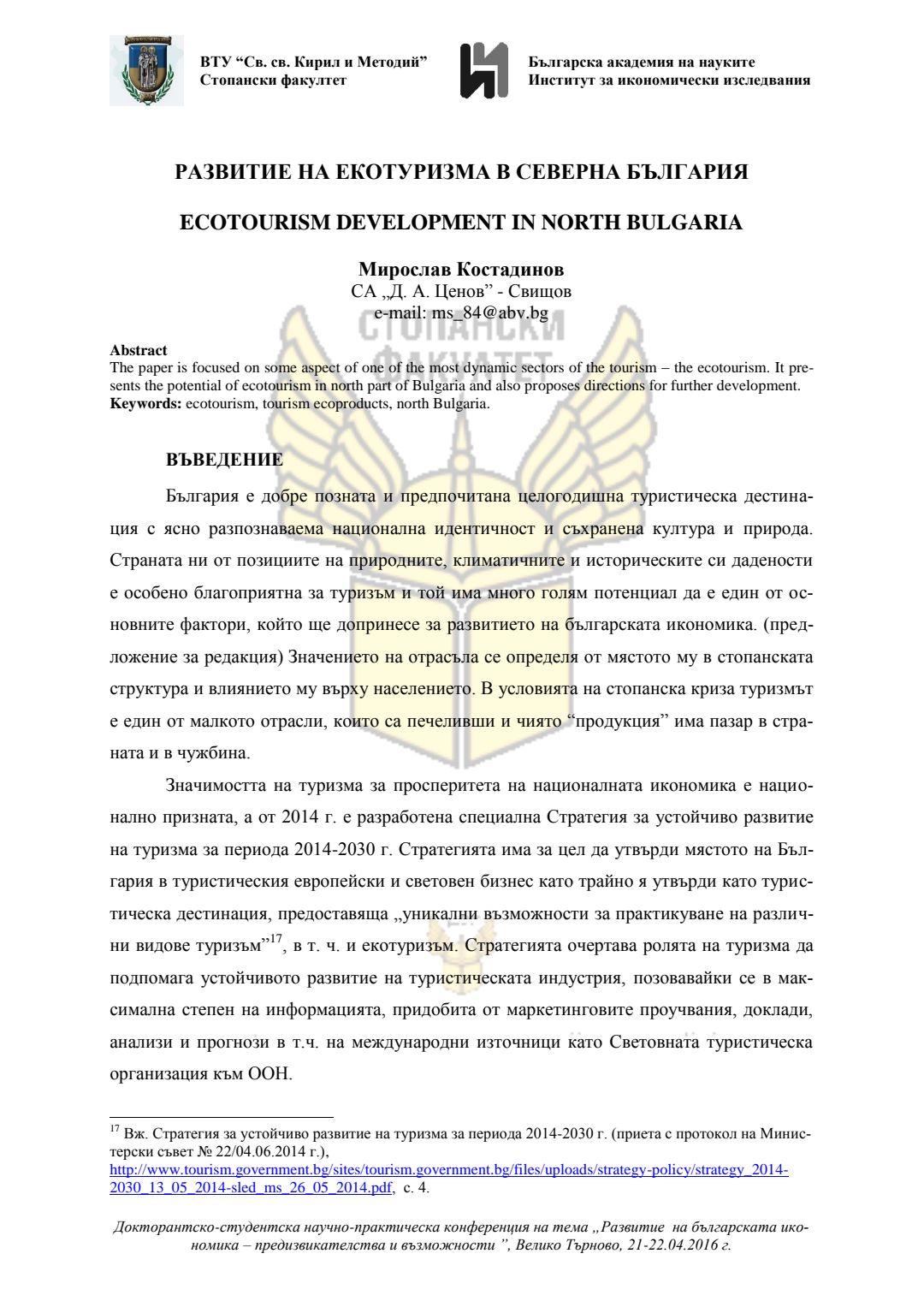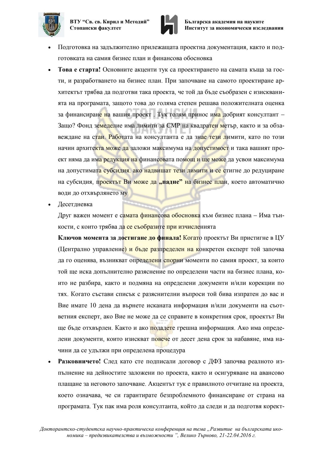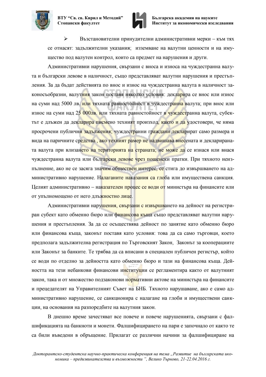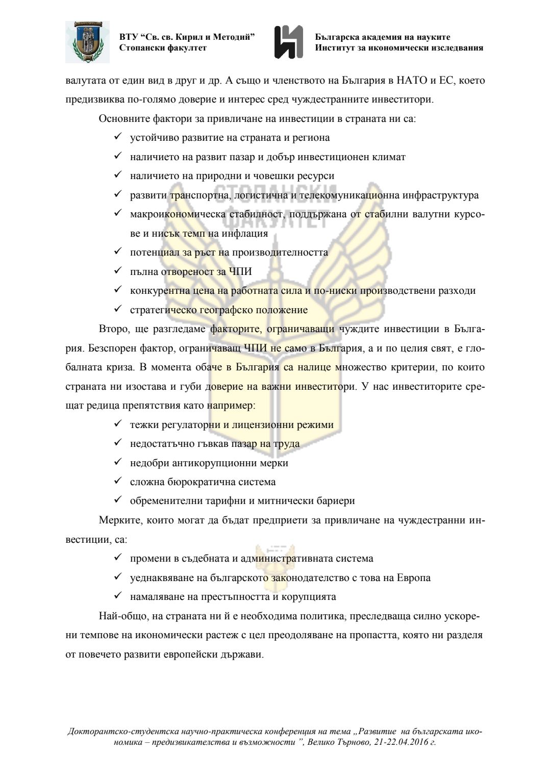 Докторантско-студентска научно-практическа конференция "Развитие на българската икономика - предизвикателства и възможности", 21 април 2016 г., Велико Търново : сборник с доклади