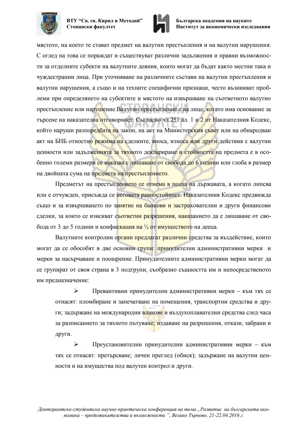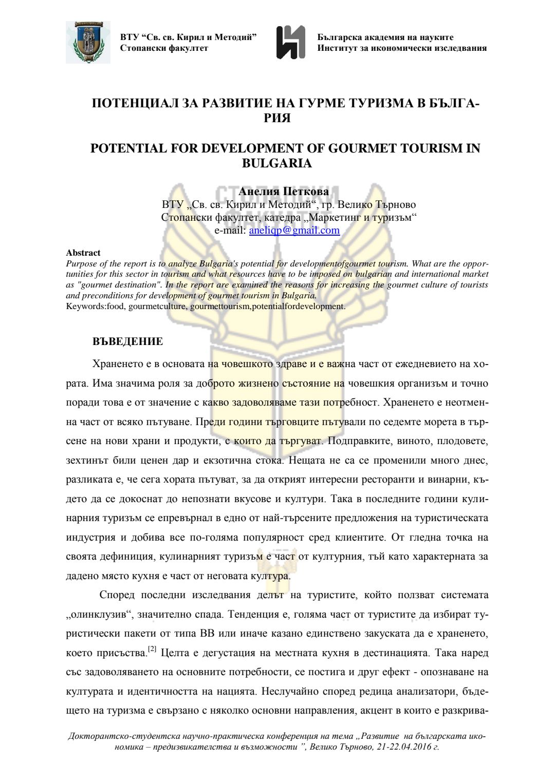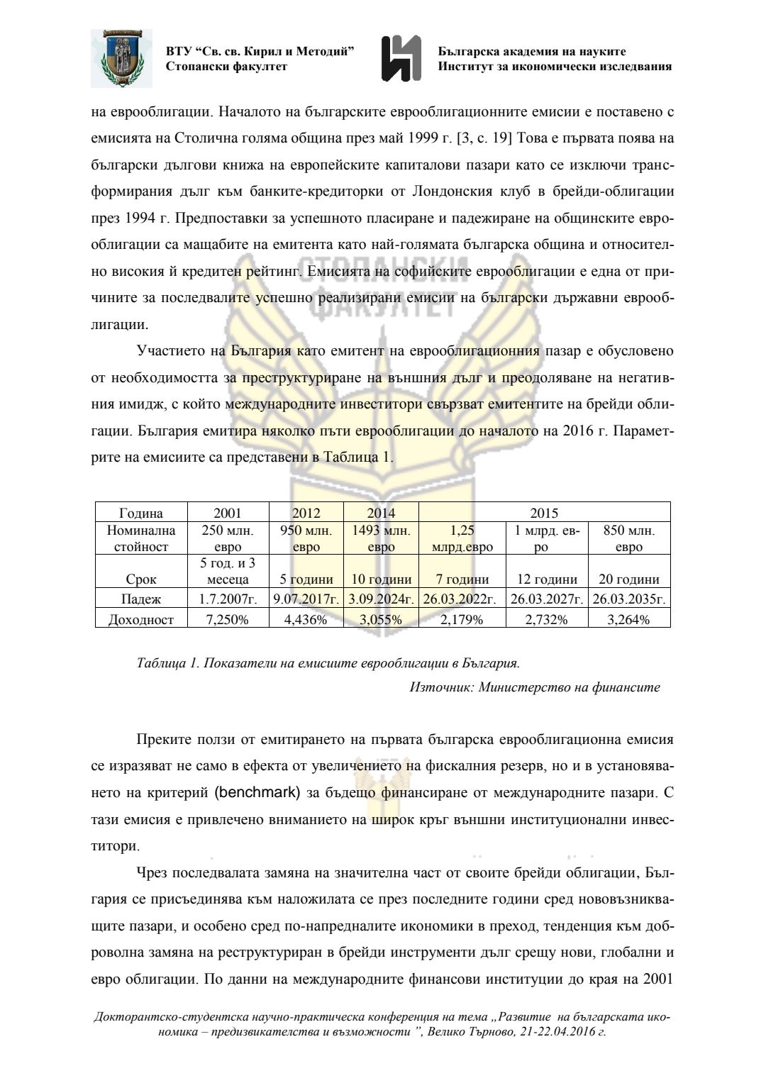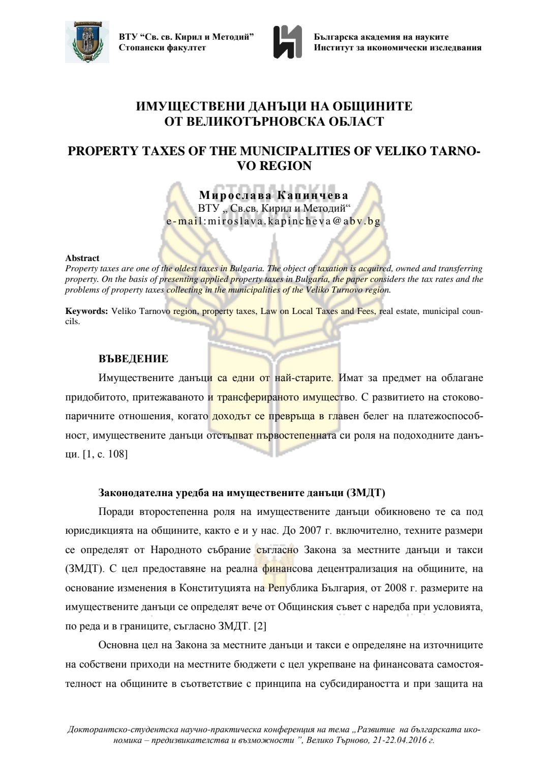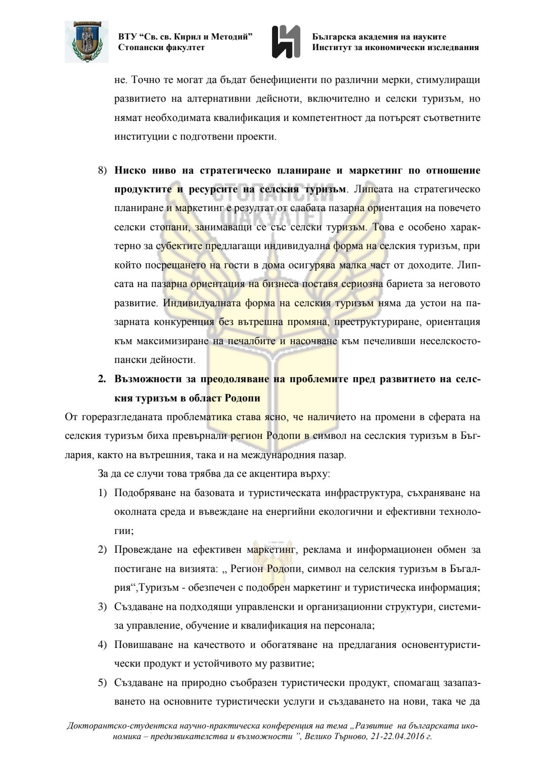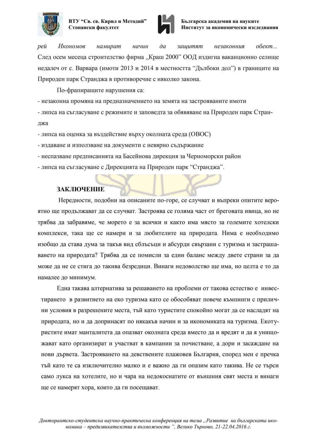 Докторантско-студентска научно-практическа конференция "Развитие на българската икономика - предизвикателства и възможности", 21 април 2016 г., Велико Търново : сборник с доклади