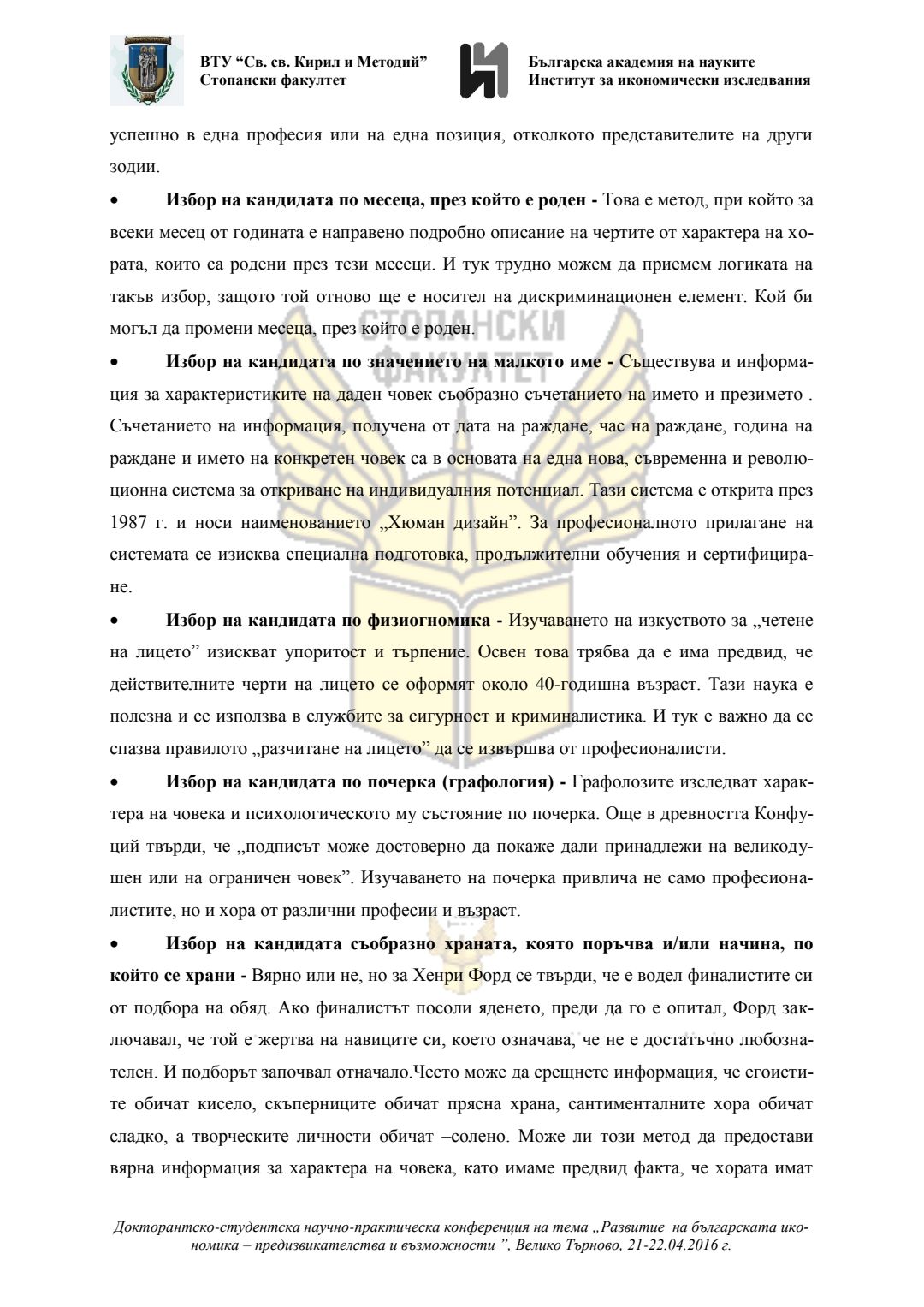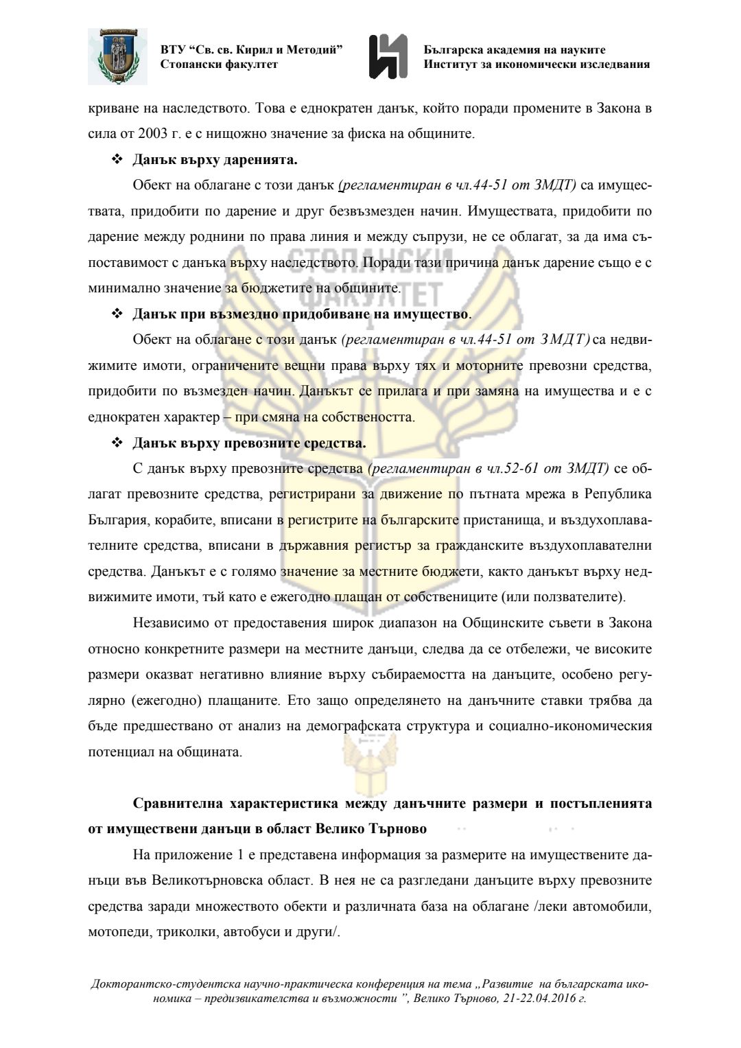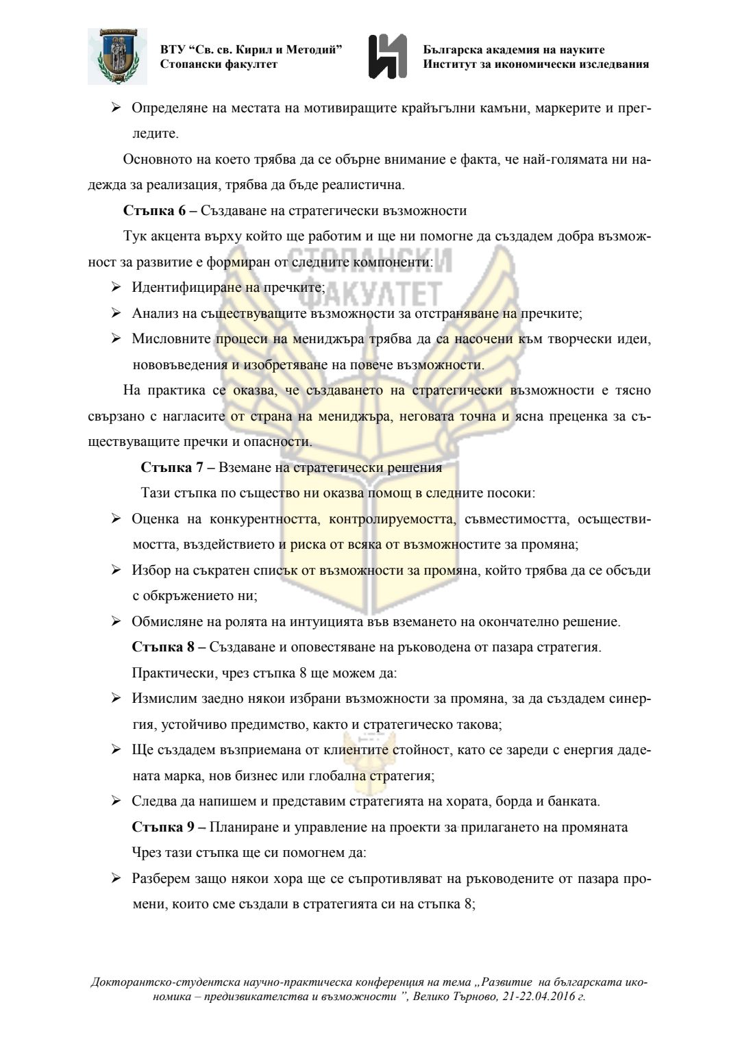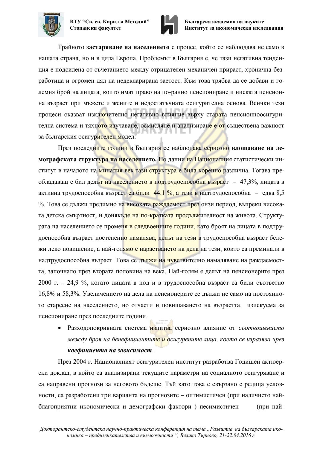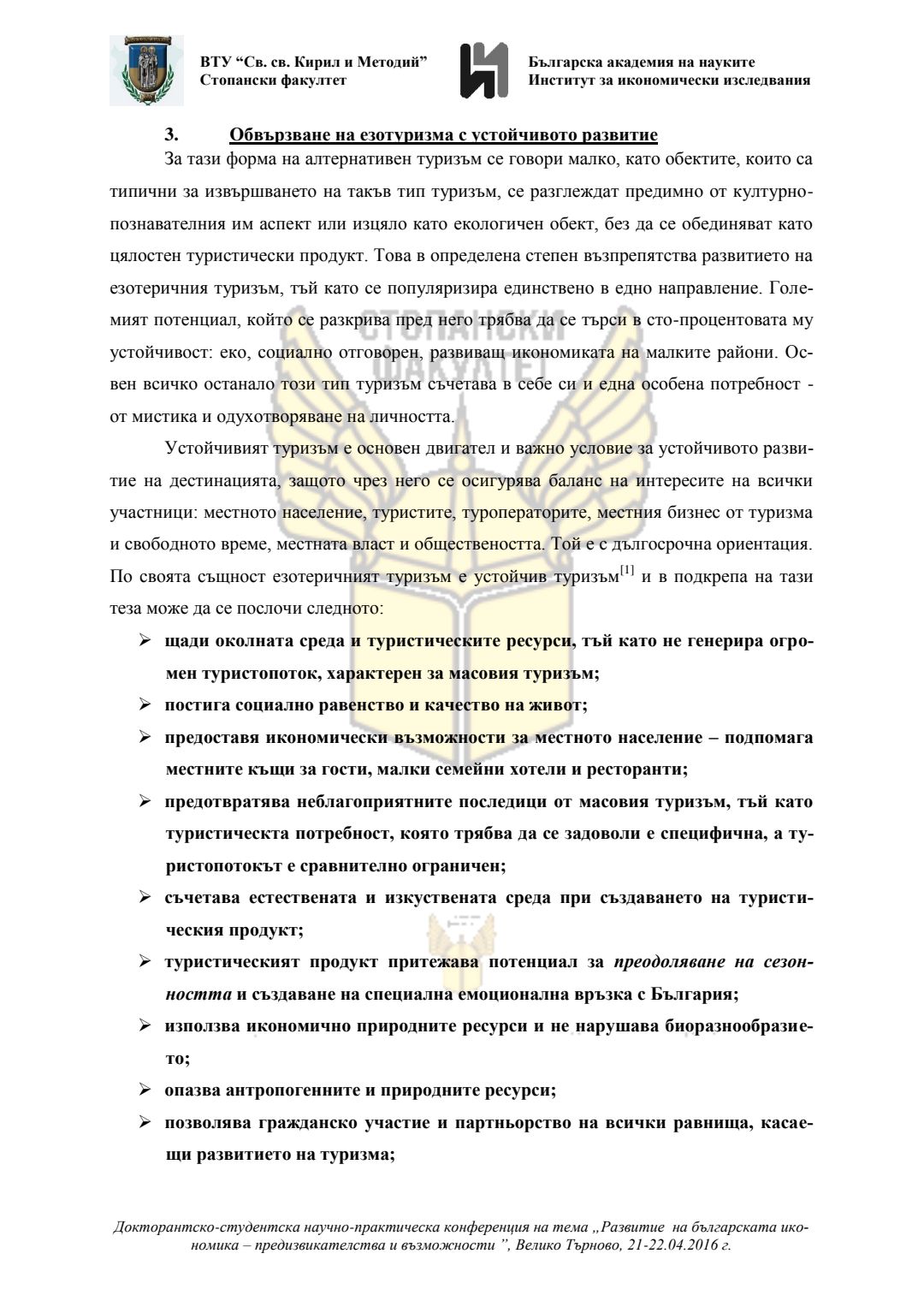 Докторантско-студентска научно-практическа конференция "Развитие на българската икономика - предизвикателства и възможности", 21 април 2016 г., Велико Търново : сборник с доклади