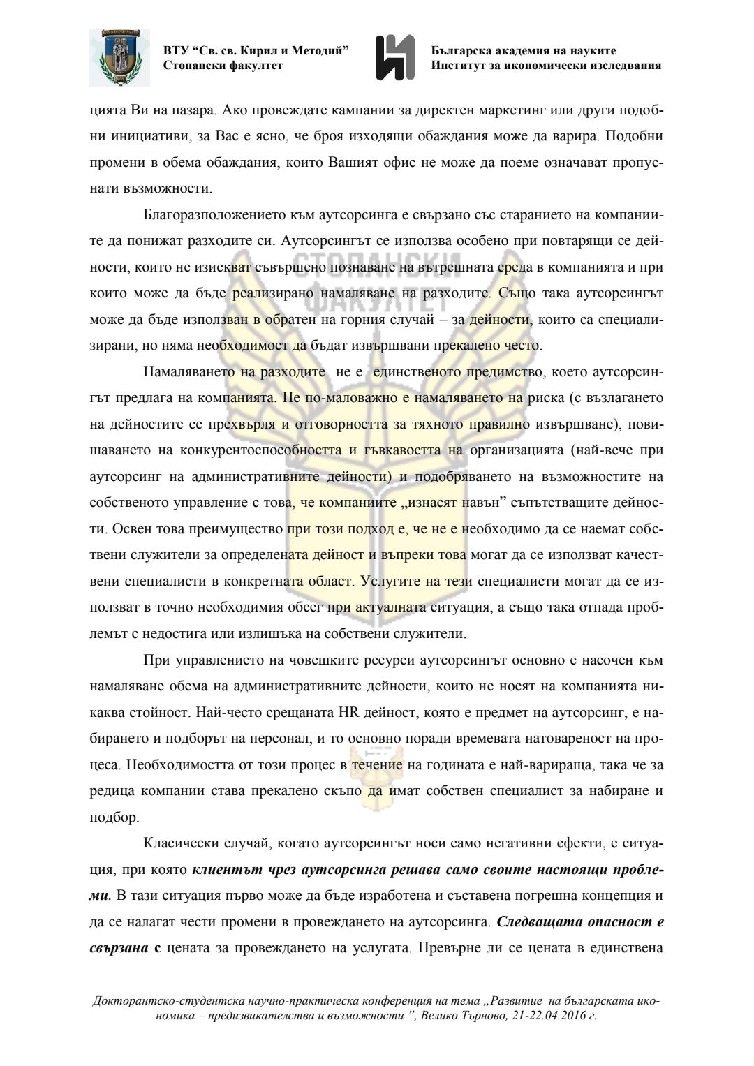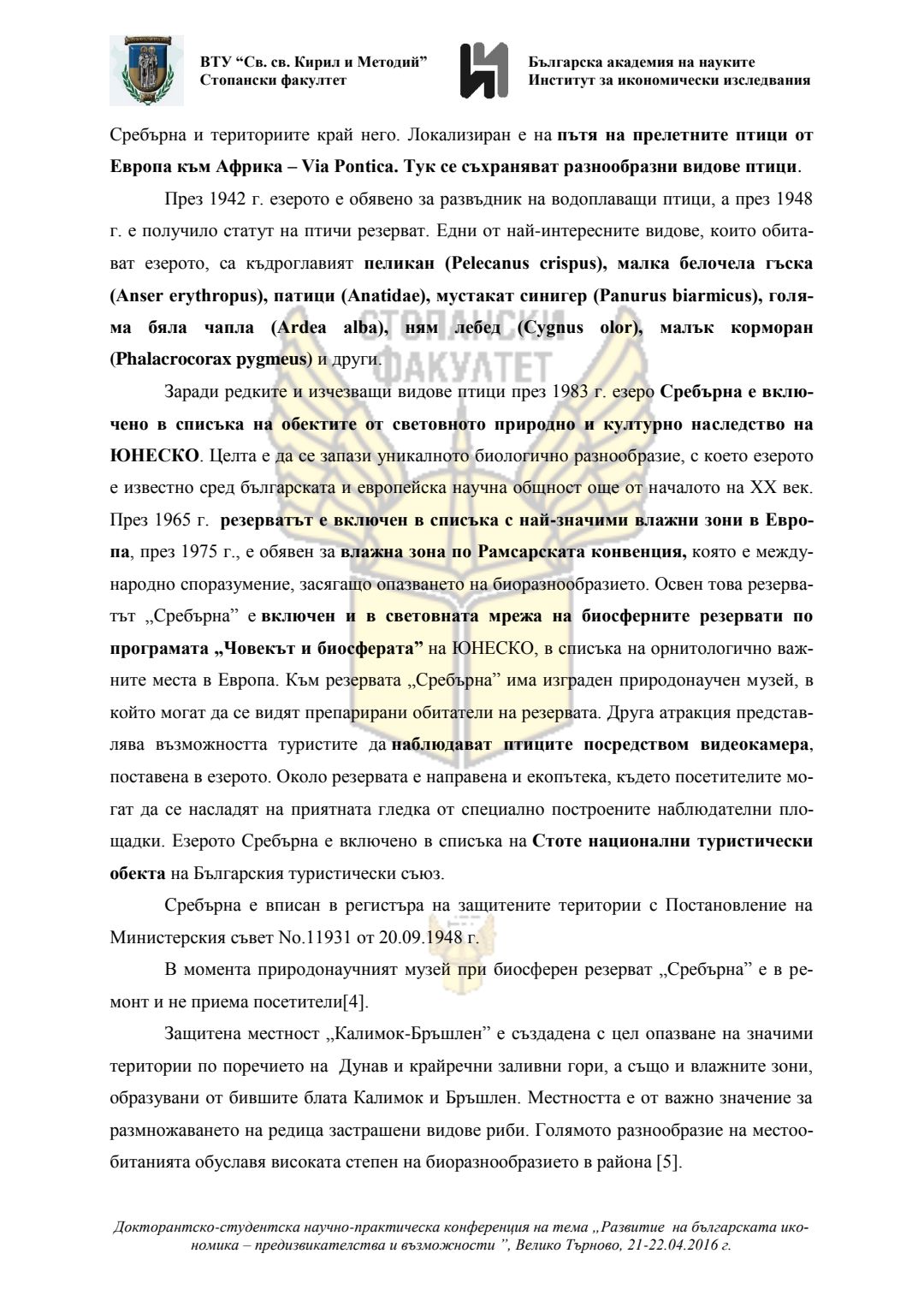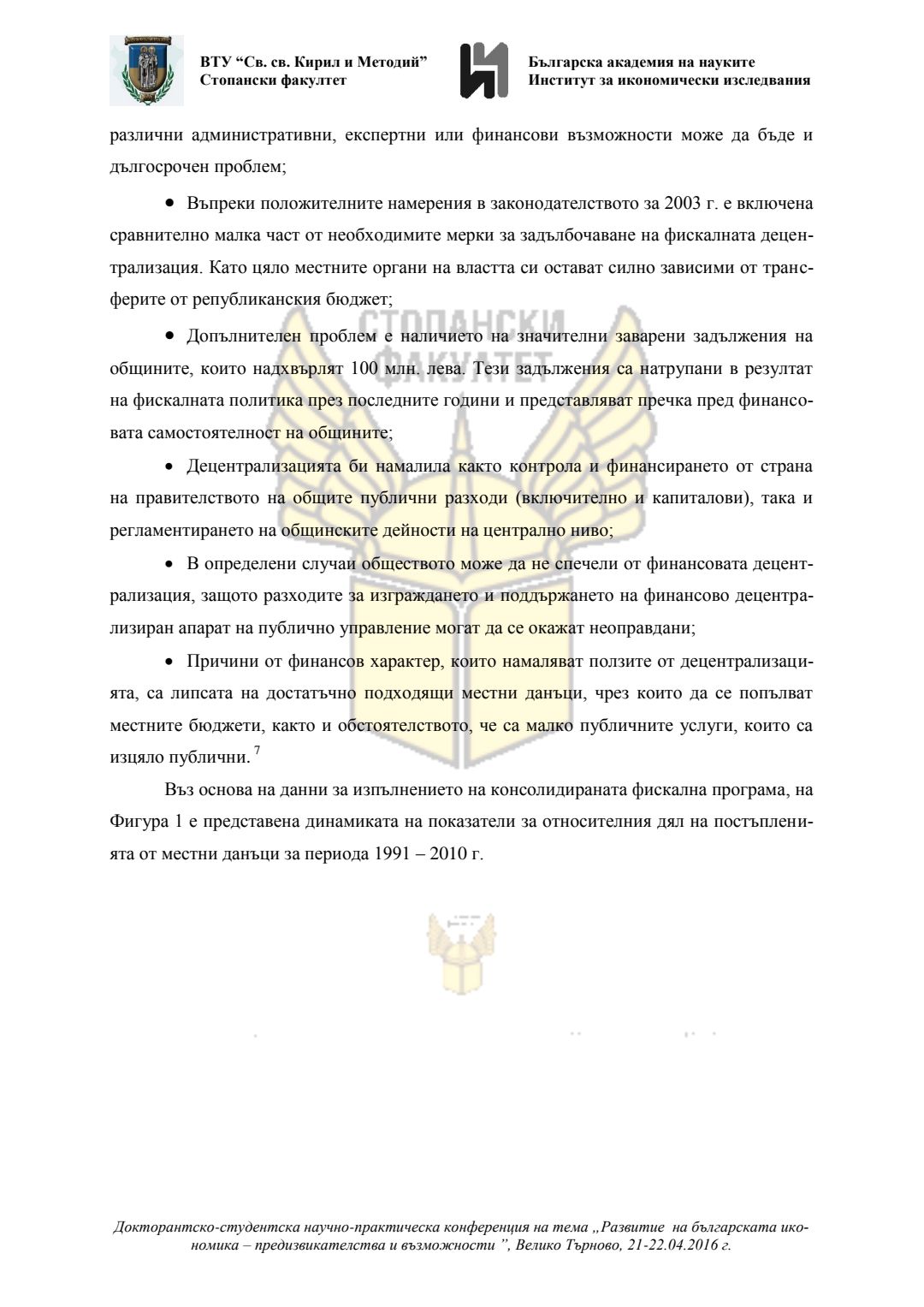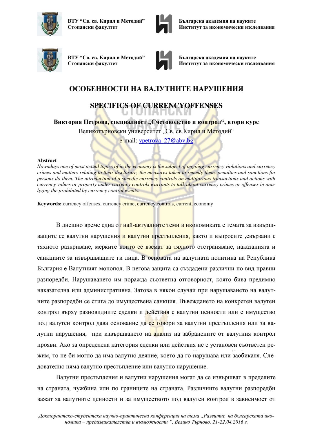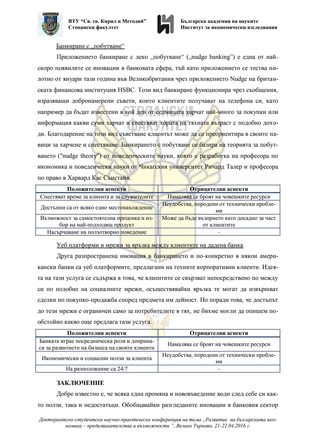 Докторантско-студентска научно-практическа конференция "Развитие на българската икономика - предизвикателства и възможности", 21 април 2016 г., Велико Търново : сборник с доклади