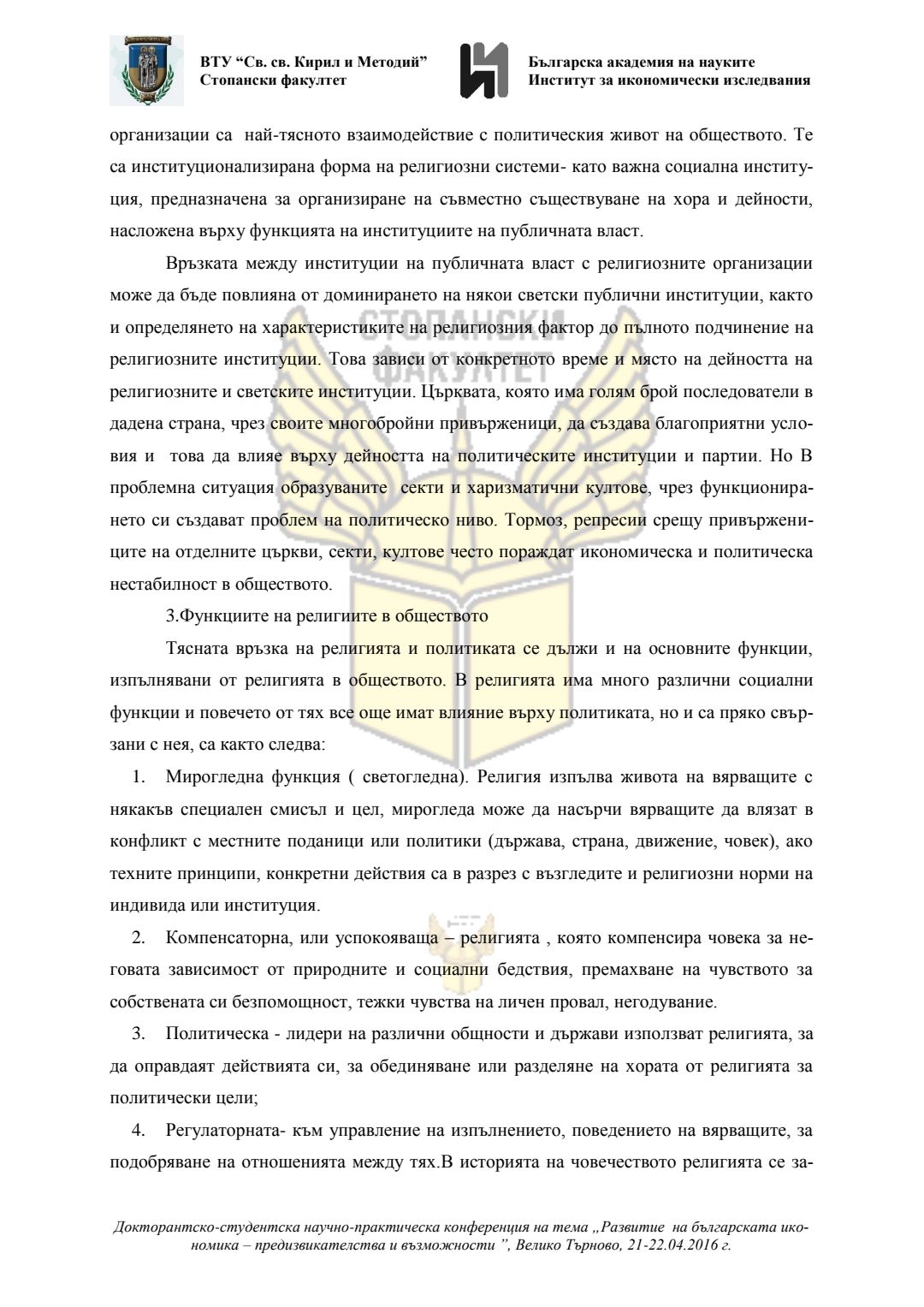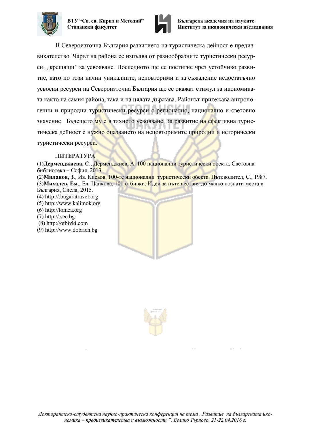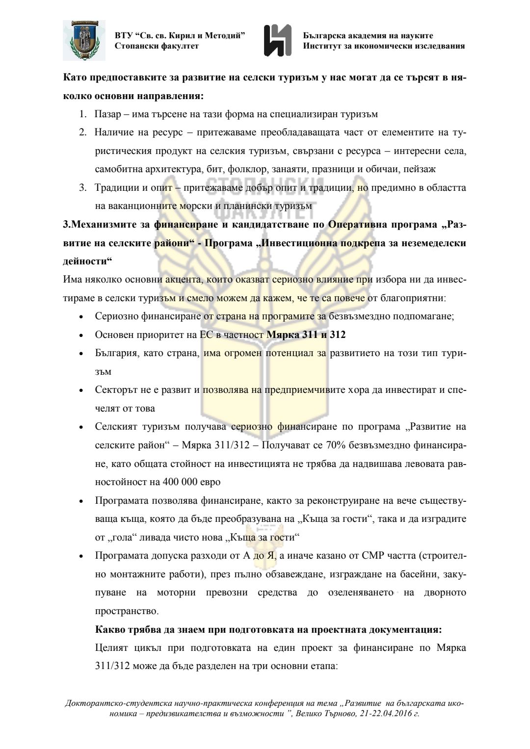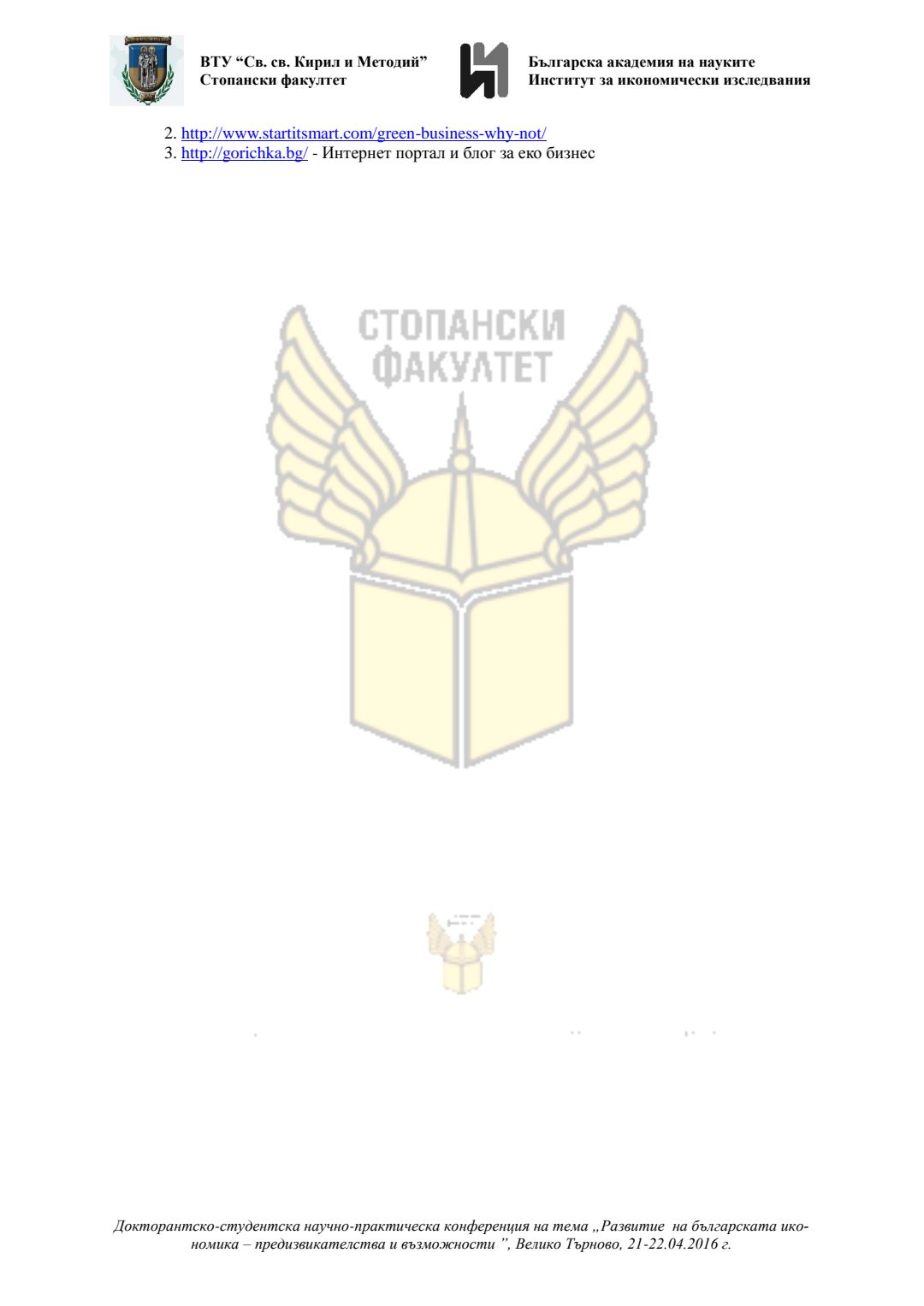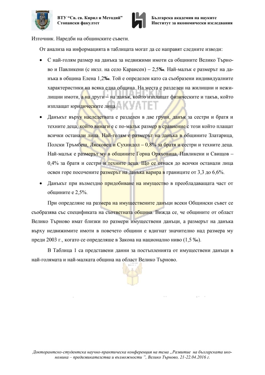 Докторантско-студентска научно-практическа конференция "Развитие на българската икономика - предизвикателства и възможности", 21 април 2016 г., Велико Търново : сборник с доклади