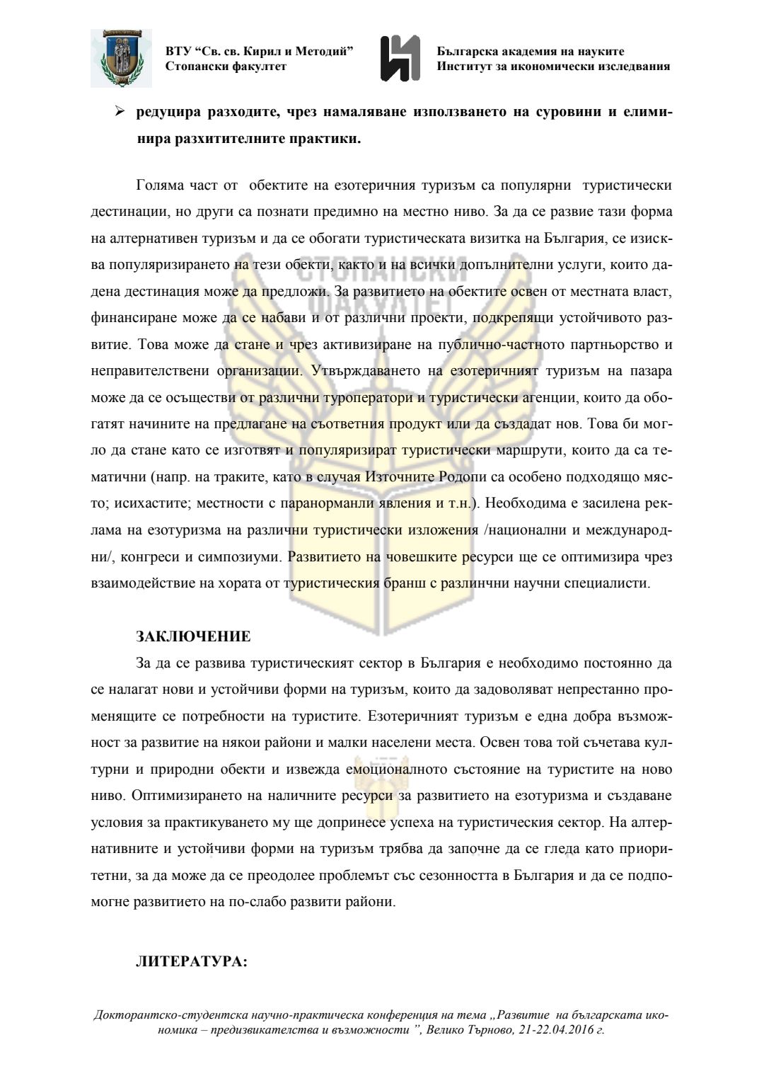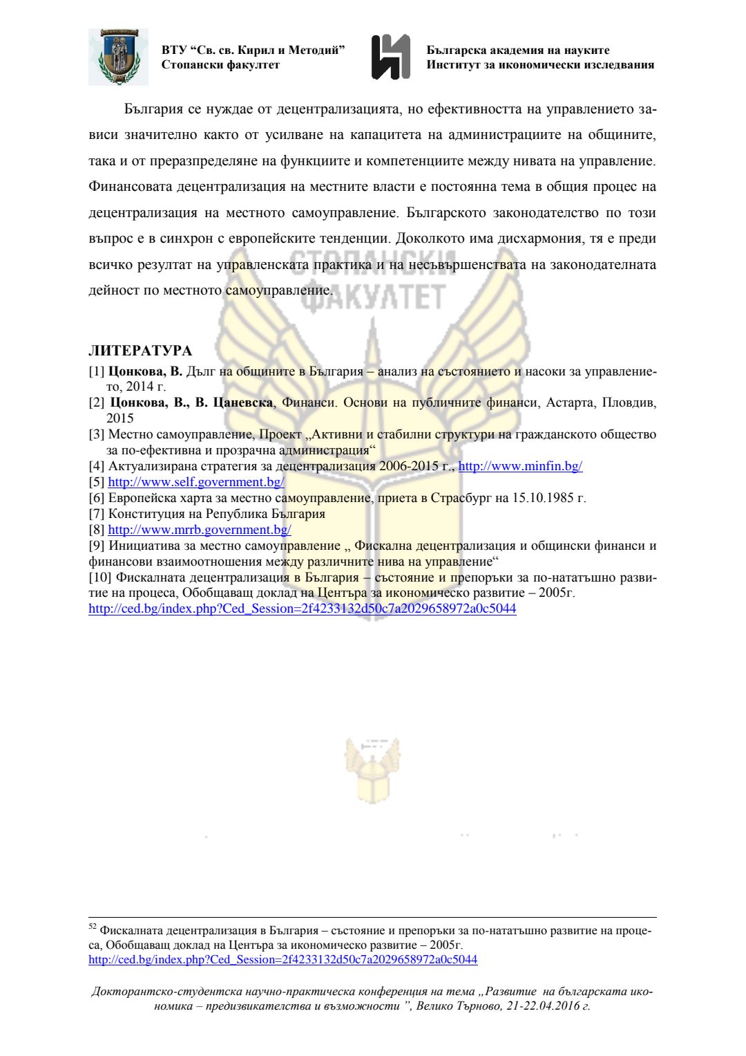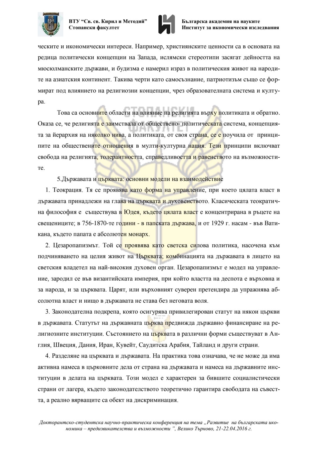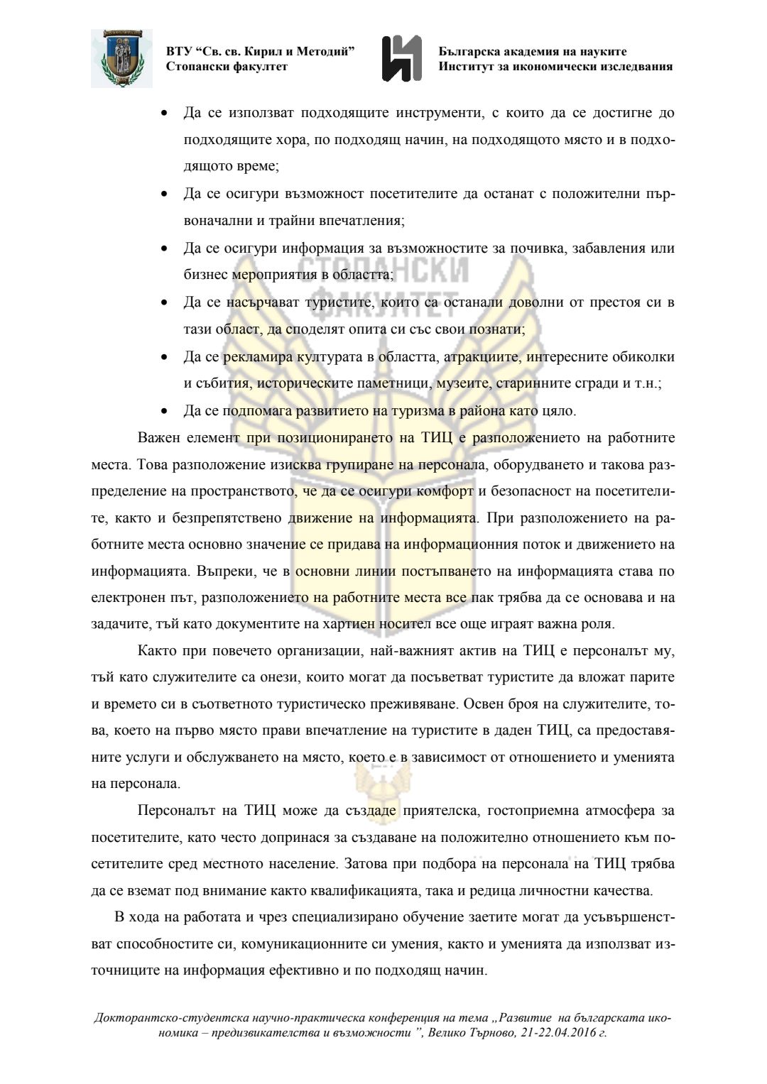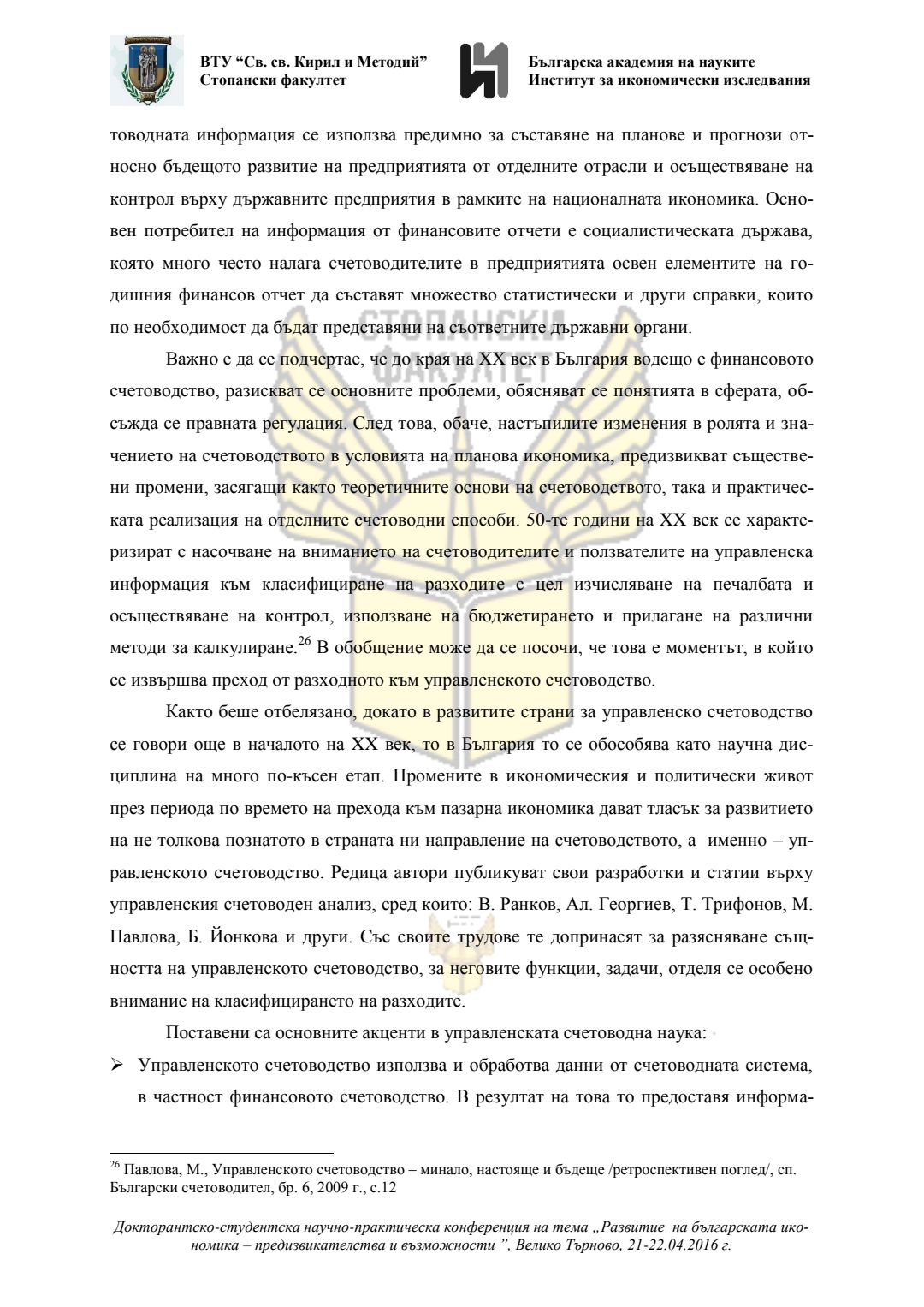 Докторантско-студентска научно-практическа конференция "Развитие на българската икономика - предизвикателства и възможности", 21 април 2016 г., Велико Търново : сборник с доклади