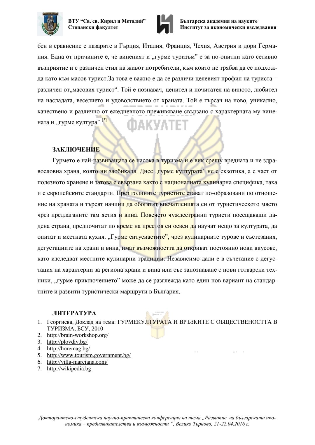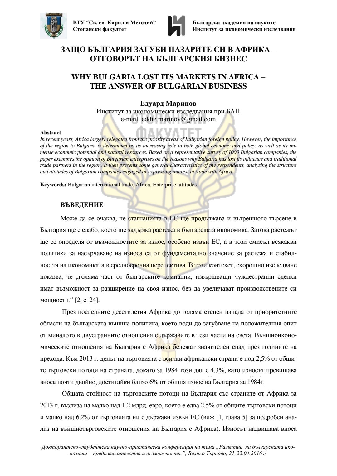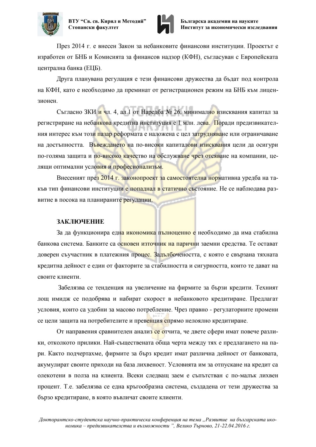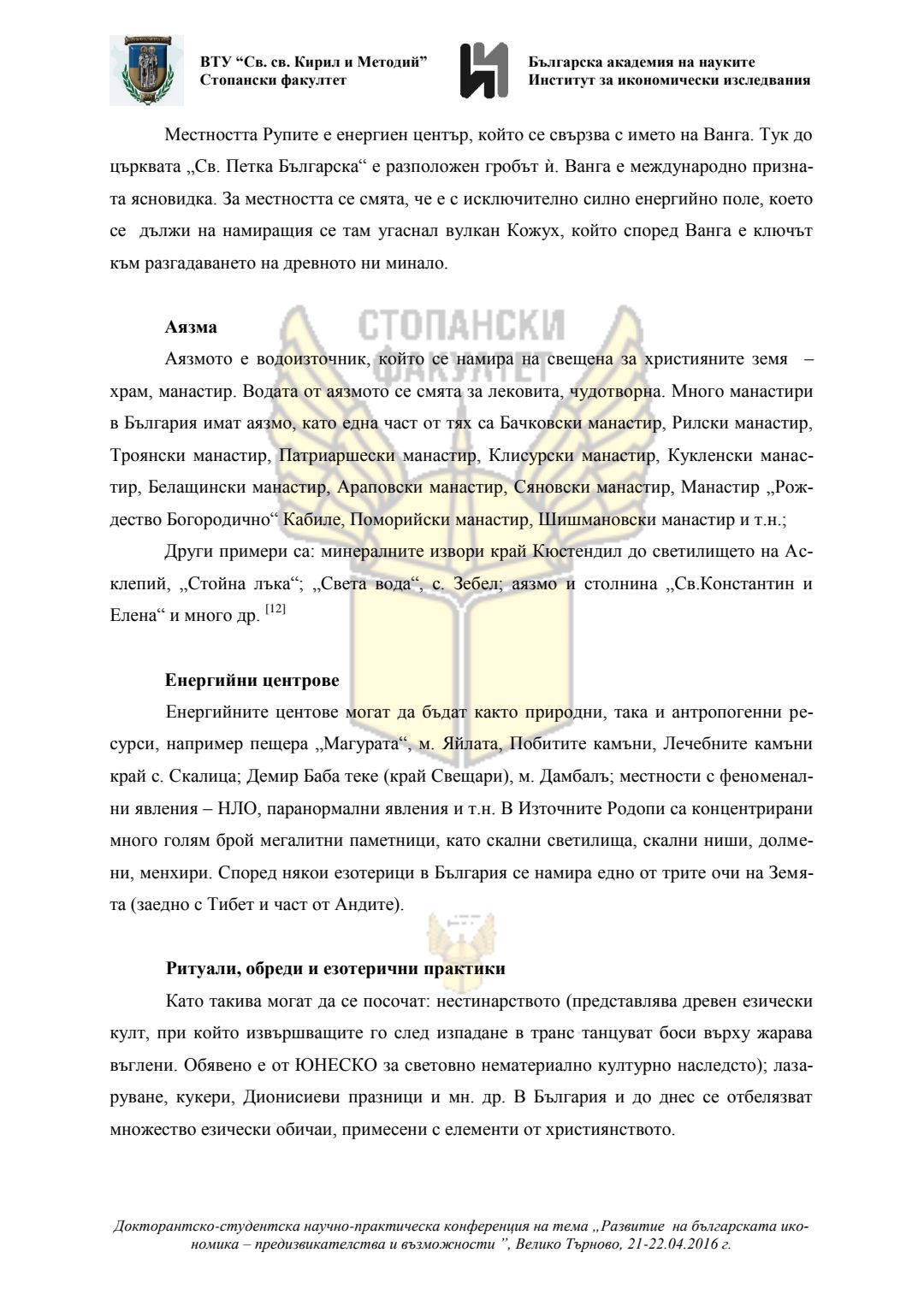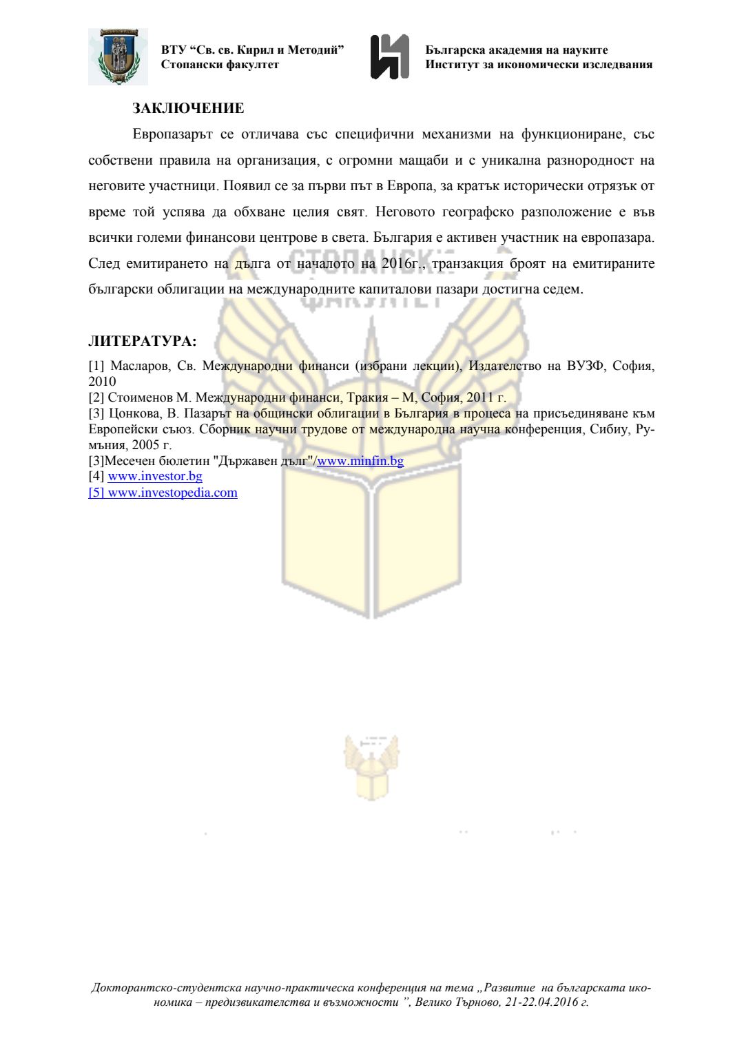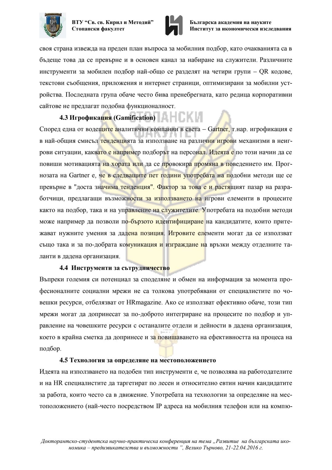 Докторантско-студентска научно-практическа конференция "Развитие на българската икономика - предизвикателства и възможности", 21 април 2016 г., Велико Търново : сборник с доклади
