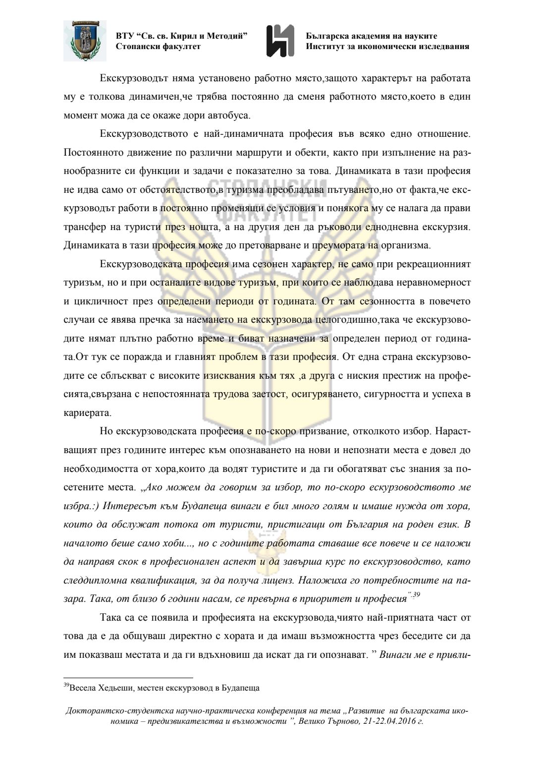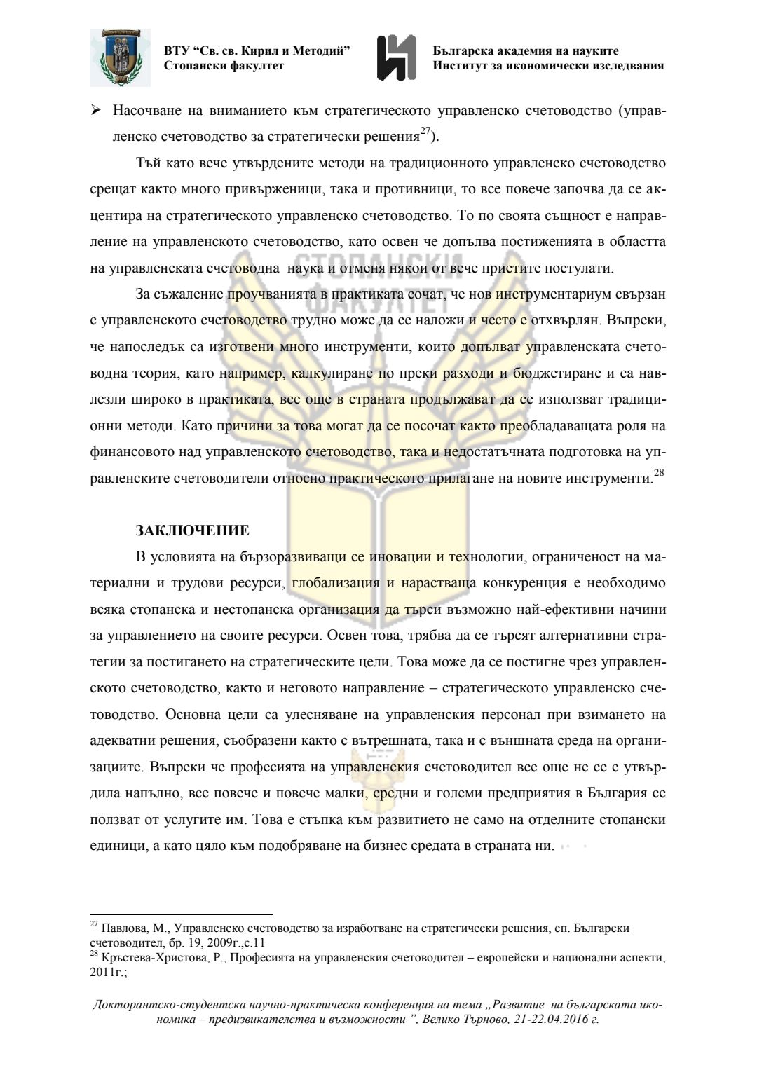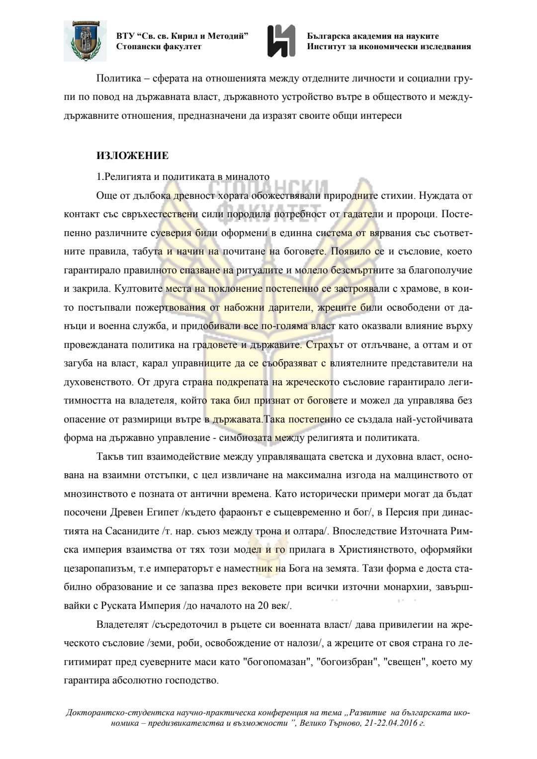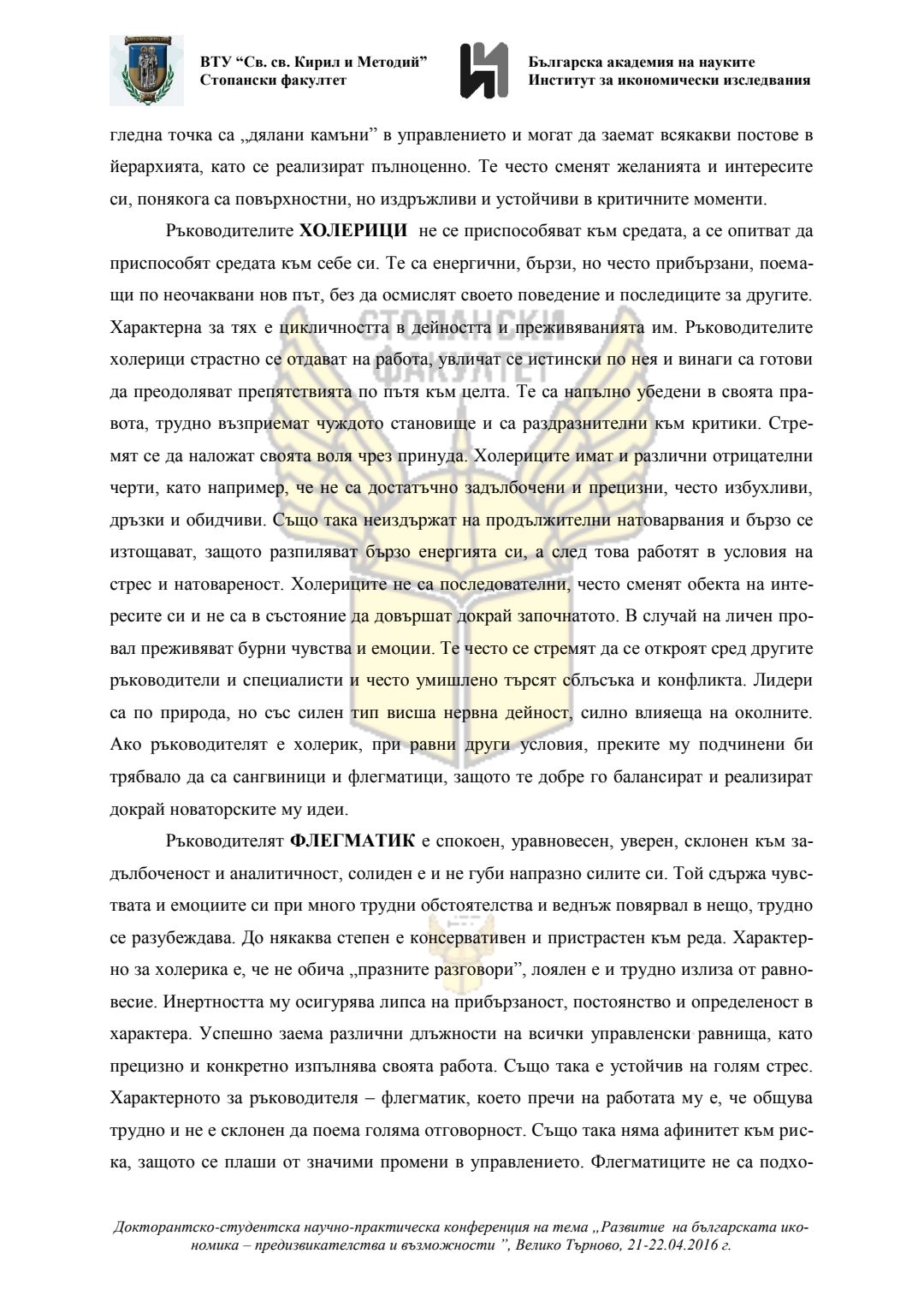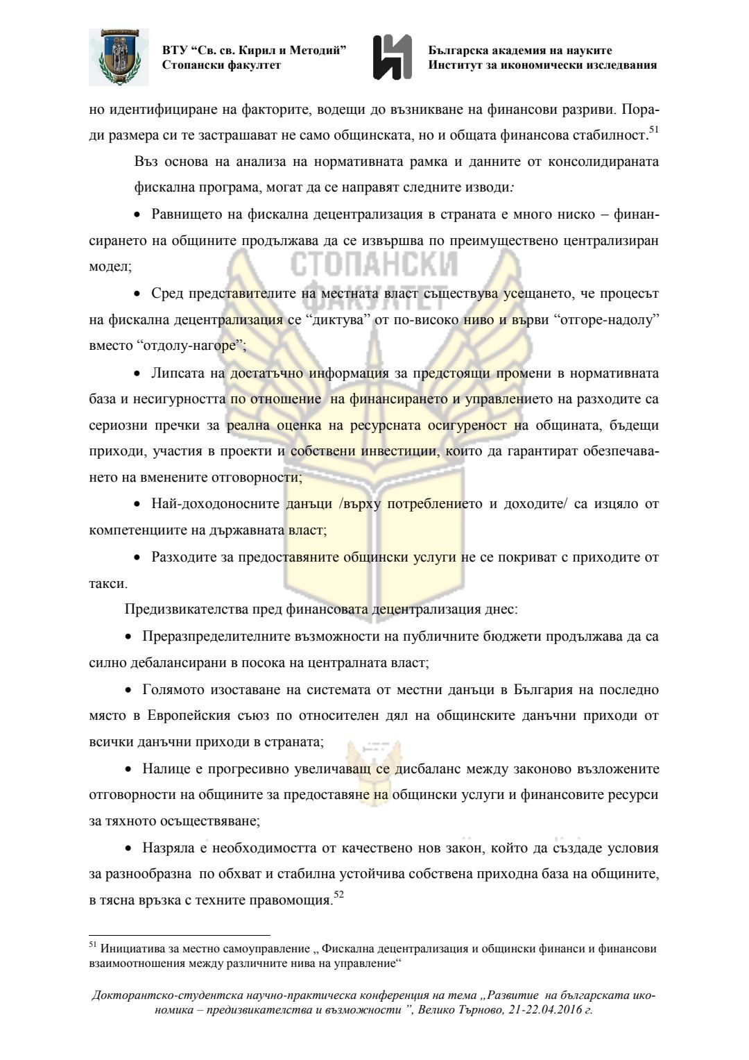 Докторантско-студентска научно-практическа конференция "Развитие на българската икономика - предизвикателства и възможности", 21 април 2016 г., Велико Търново : сборник с доклади