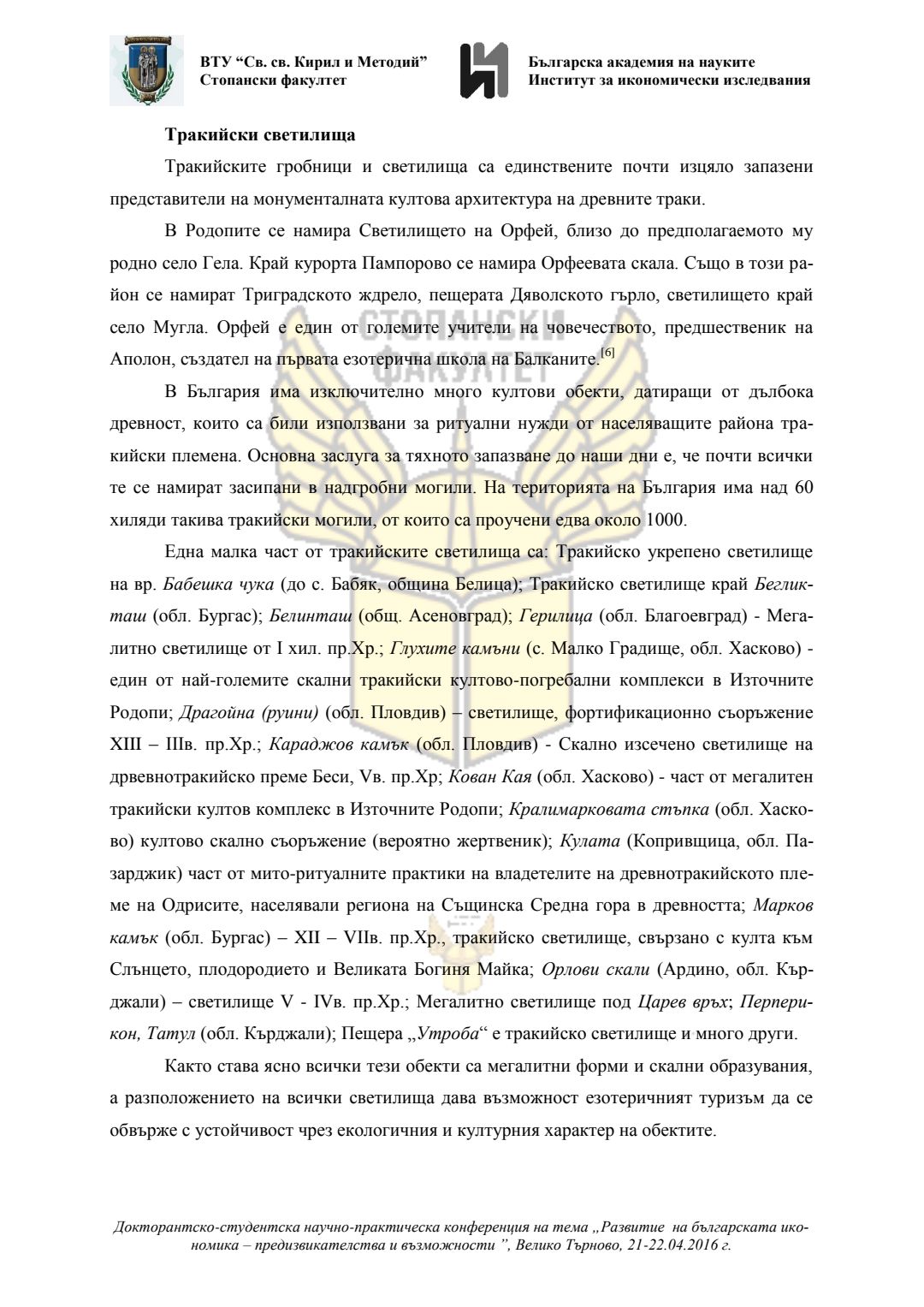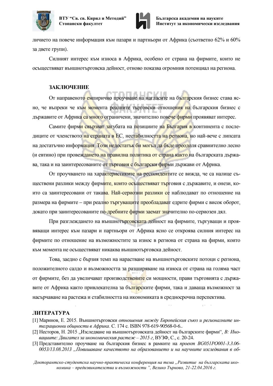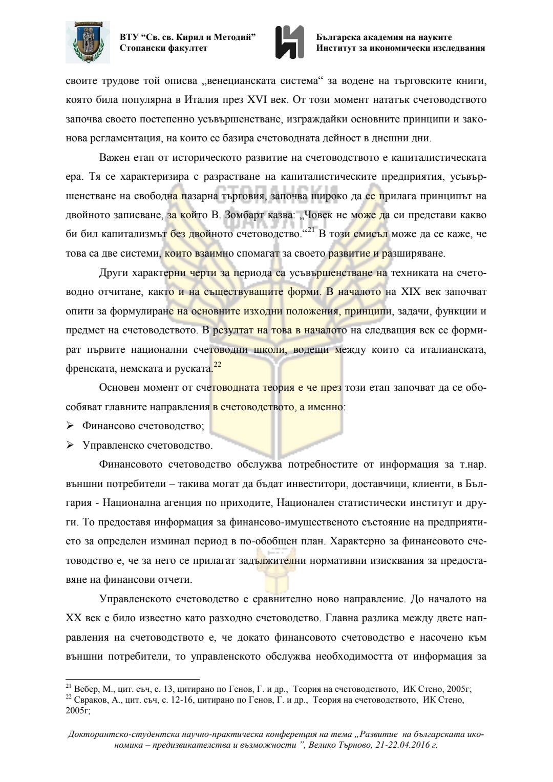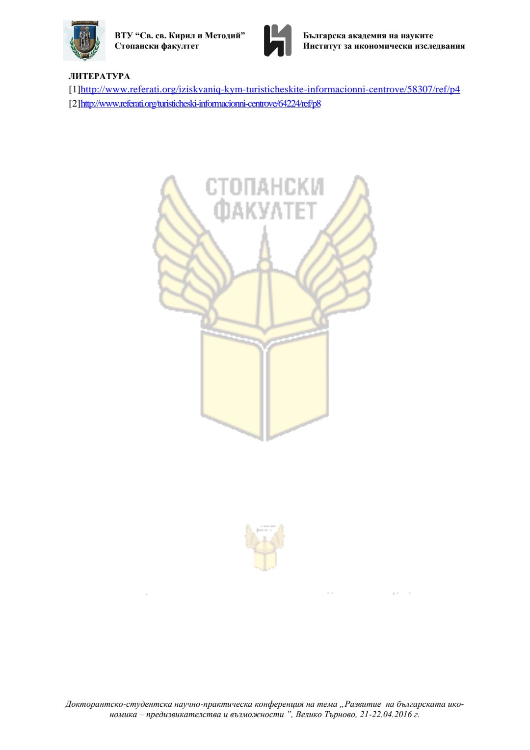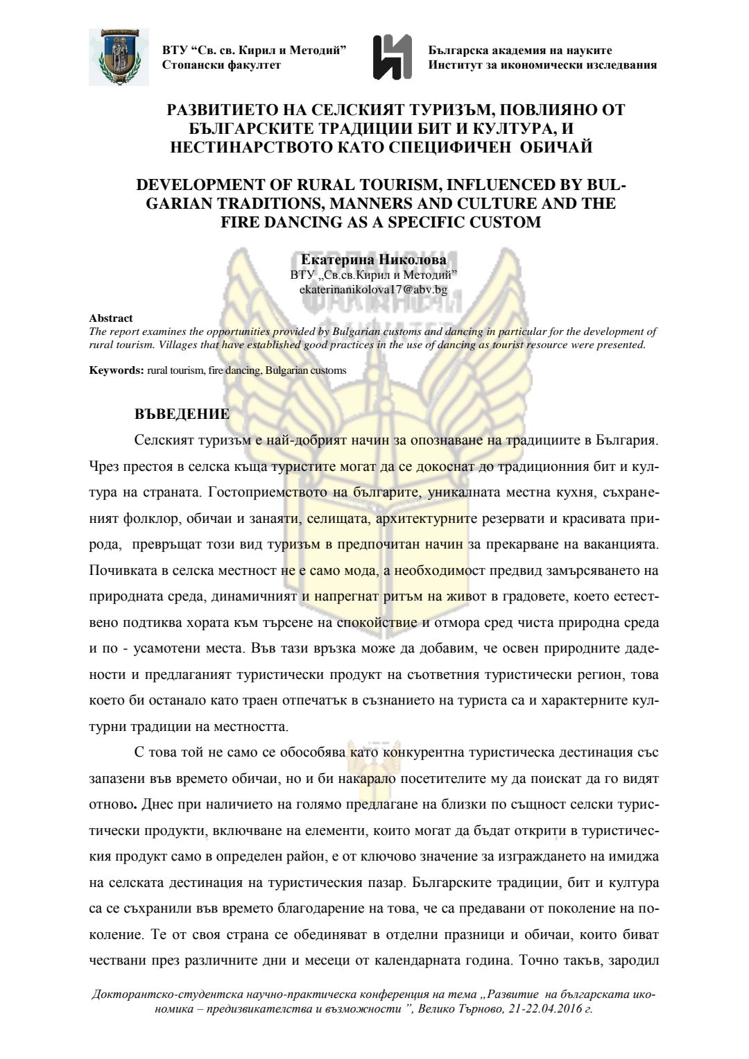 Докторантско-студентска научно-практическа конференция "Развитие на българската икономика - предизвикателства и възможности", 21 април 2016 г., Велико Търново : сборник с доклади