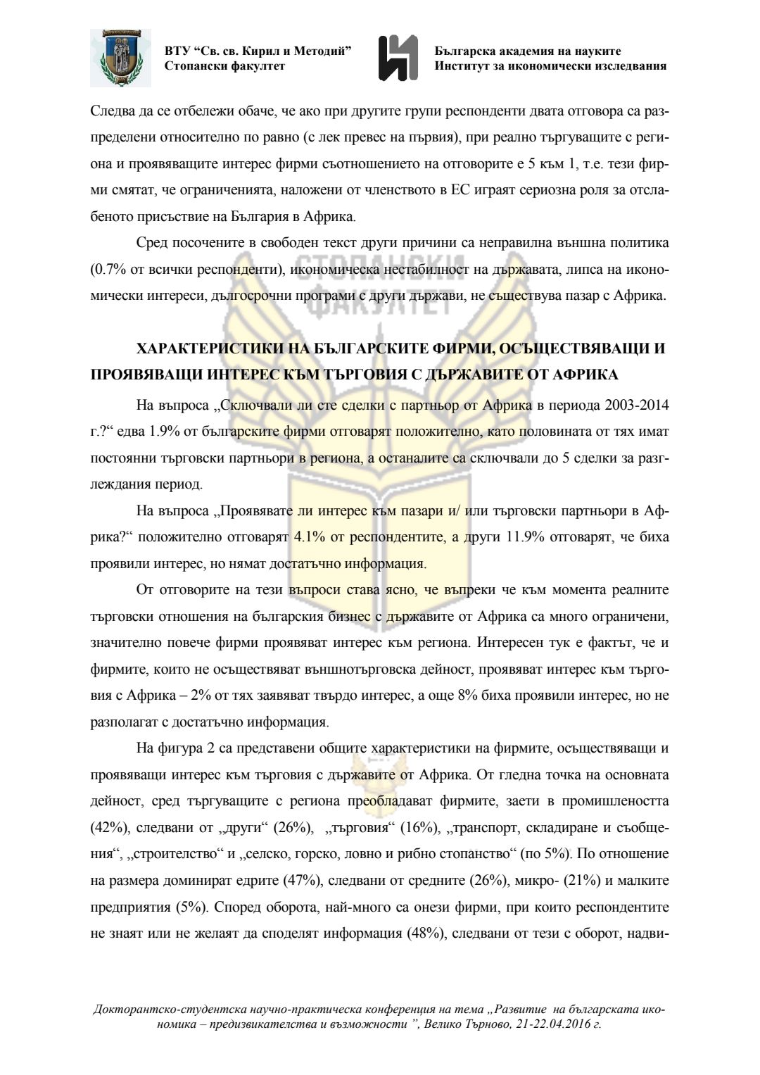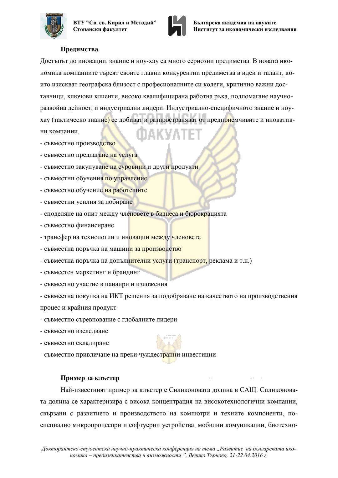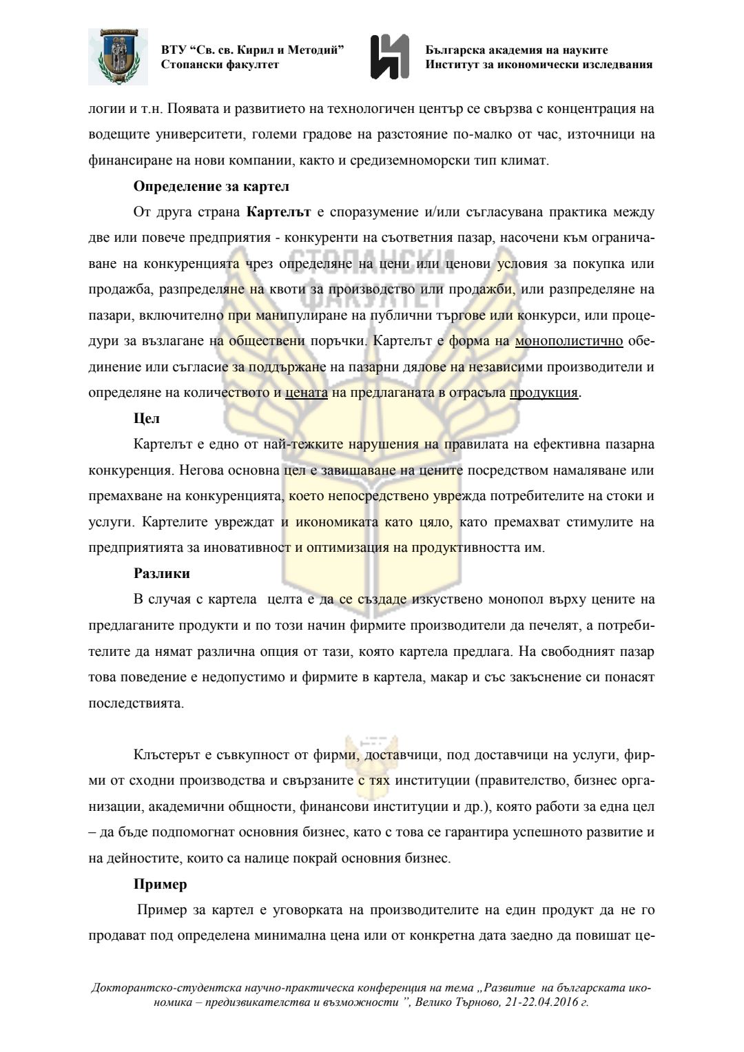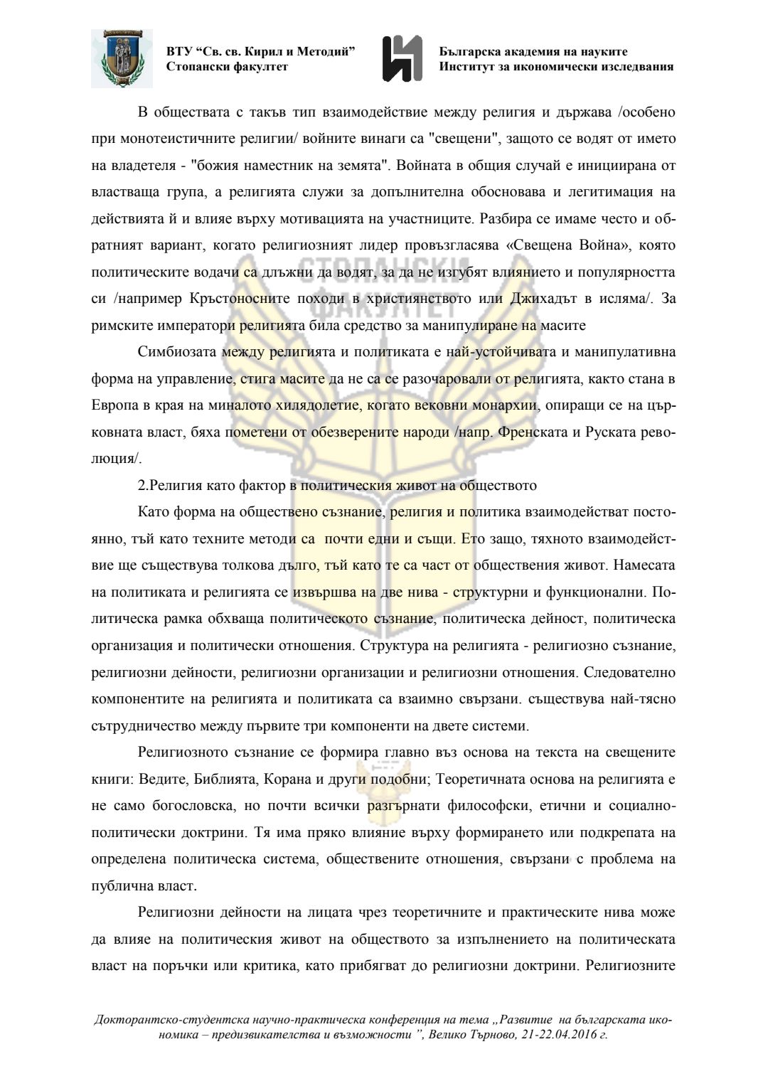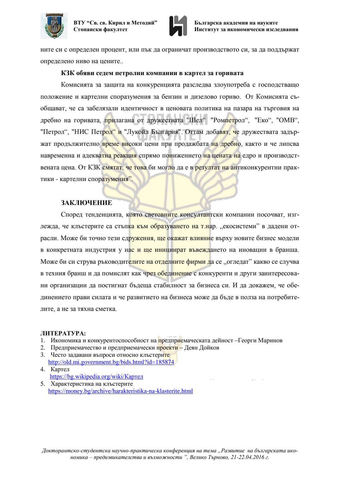 Докторантско-студентска научно-практическа конференция "Развитие на българската икономика - предизвикателства и възможности", 21 април 2016 г., Велико Търново : сборник с доклади