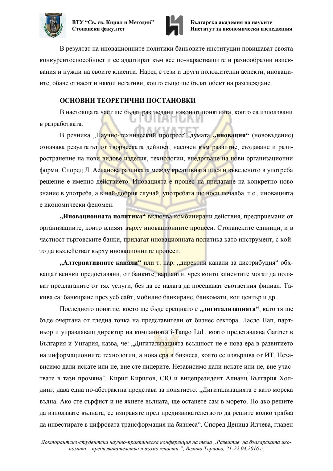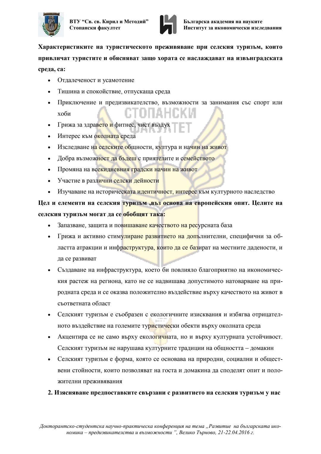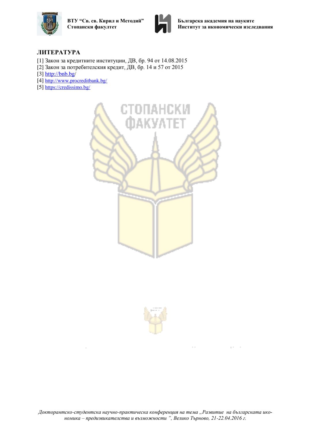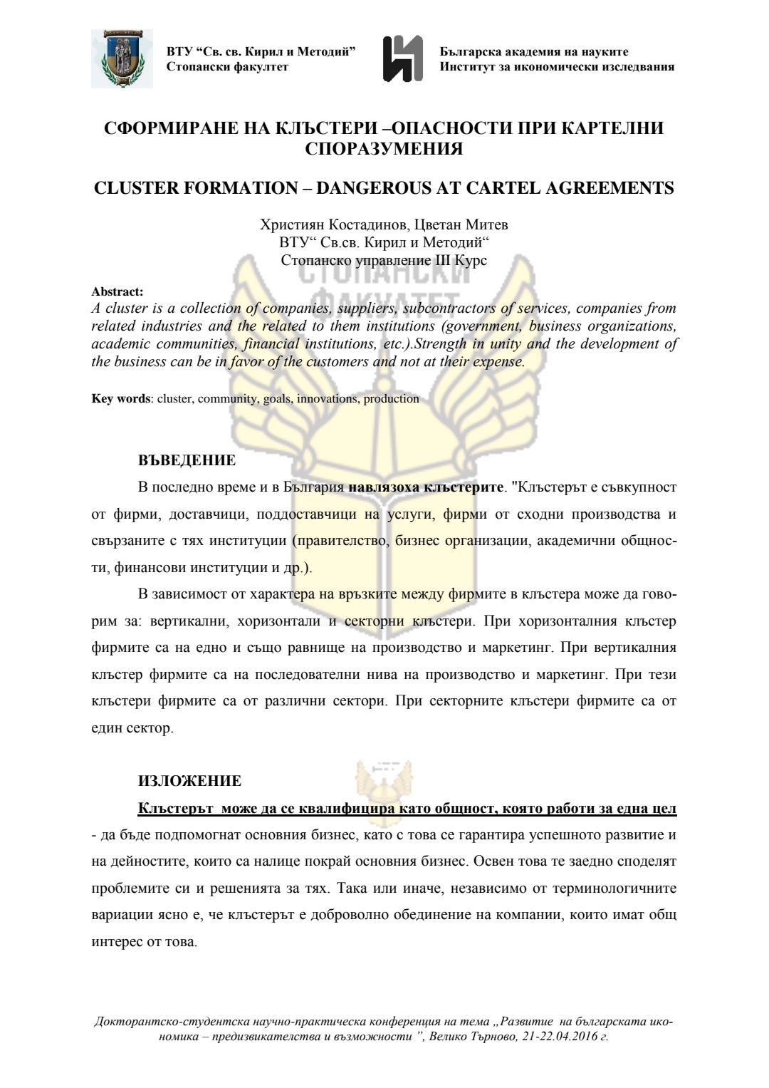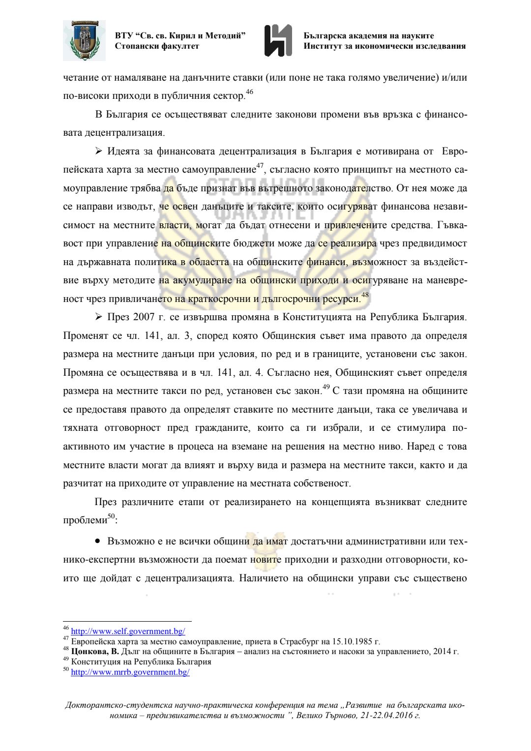 Докторантско-студентска научно-практическа конференция "Развитие на българската икономика - предизвикателства и възможности", 21 април 2016 г., Велико Търново : сборник с доклади