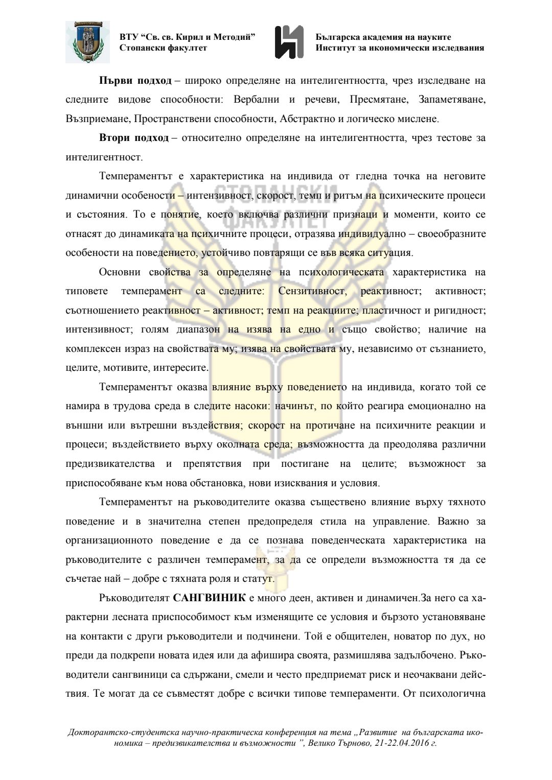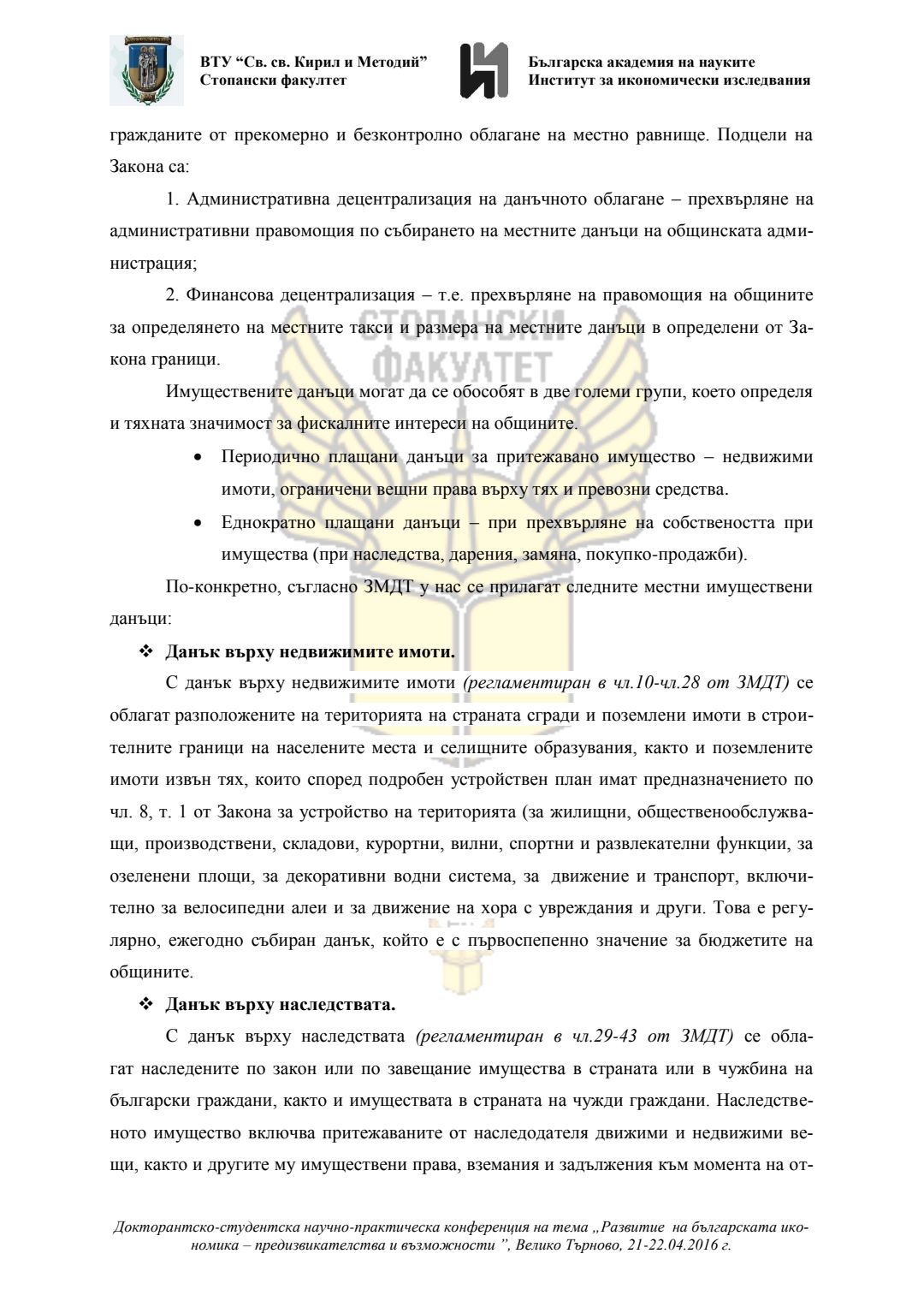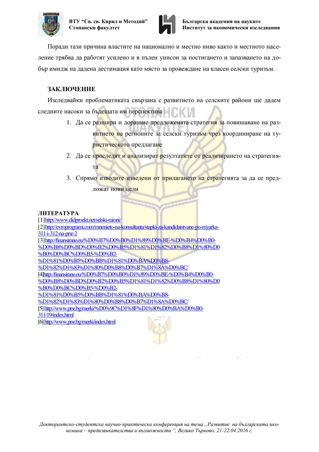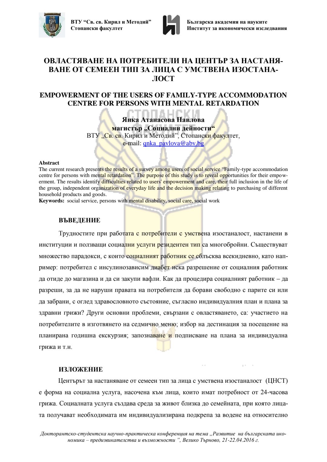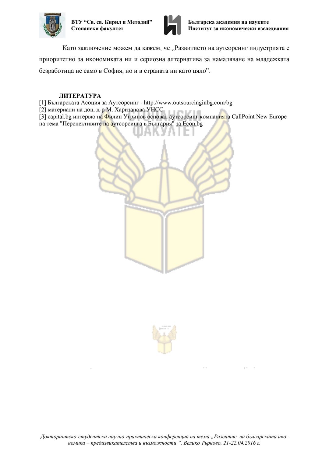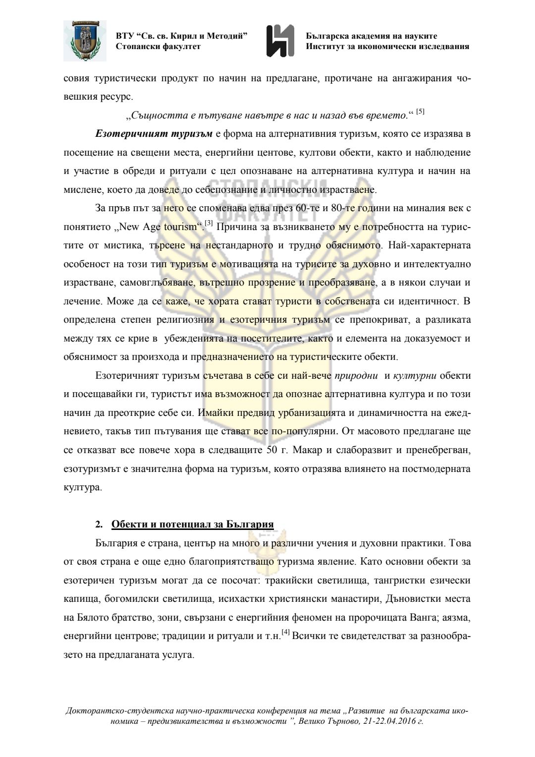 Докторантско-студентска научно-практическа конференция "Развитие на българската икономика - предизвикателства и възможности", 21 април 2016 г., Велико Търново : сборник с доклади
