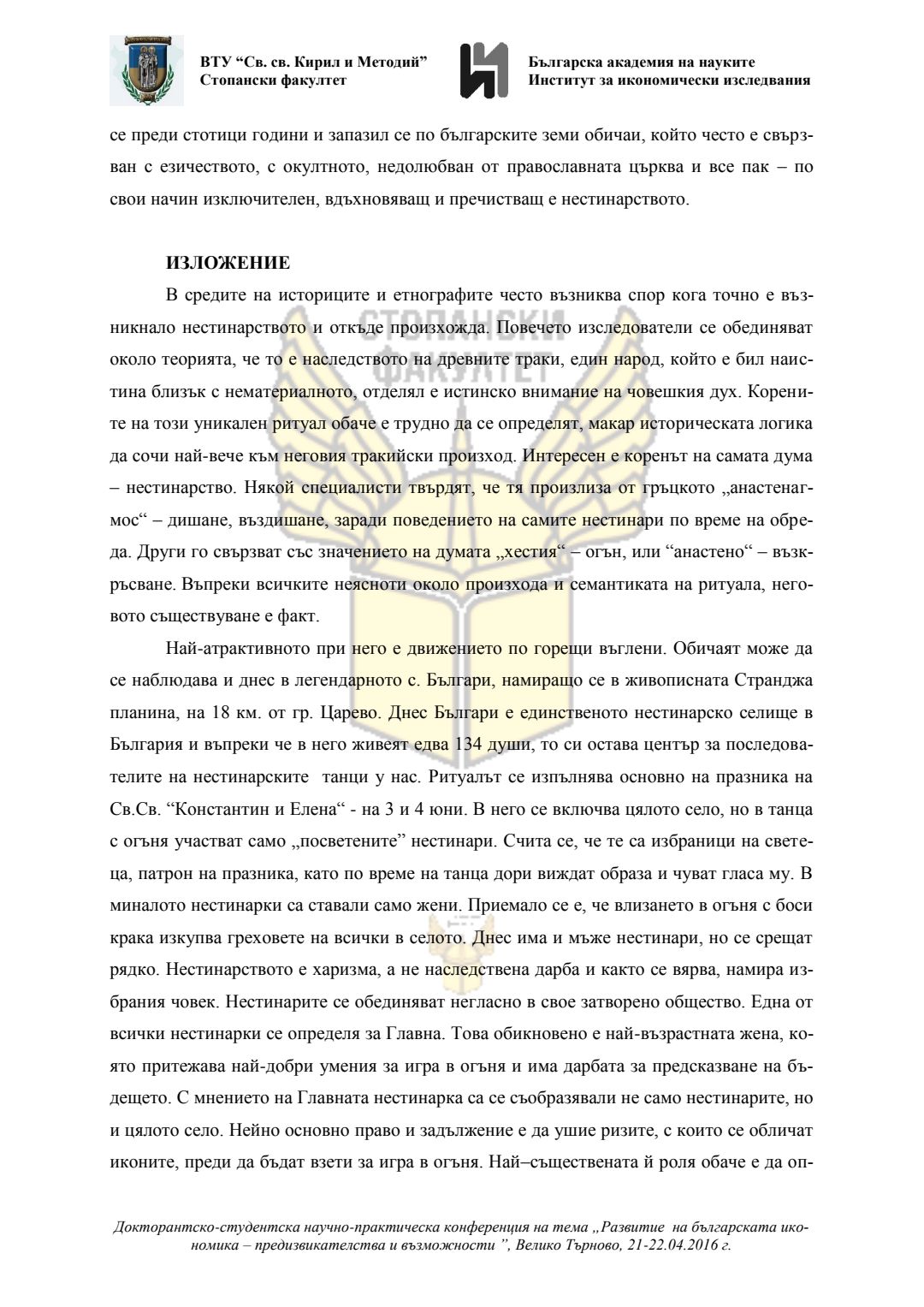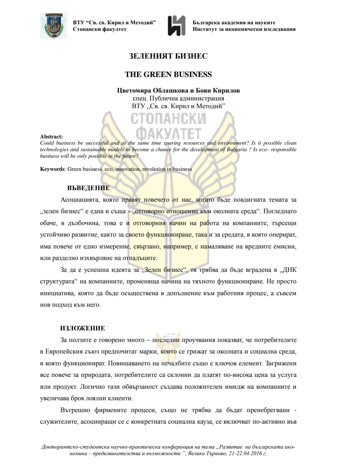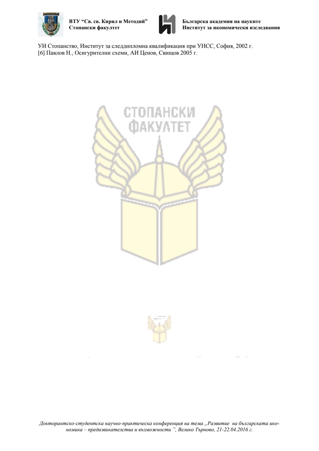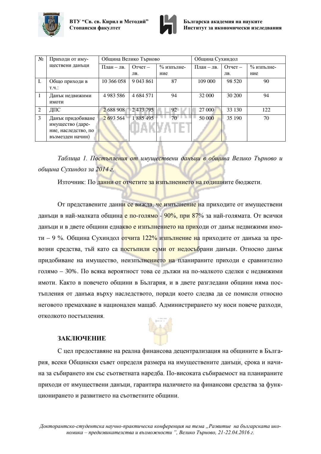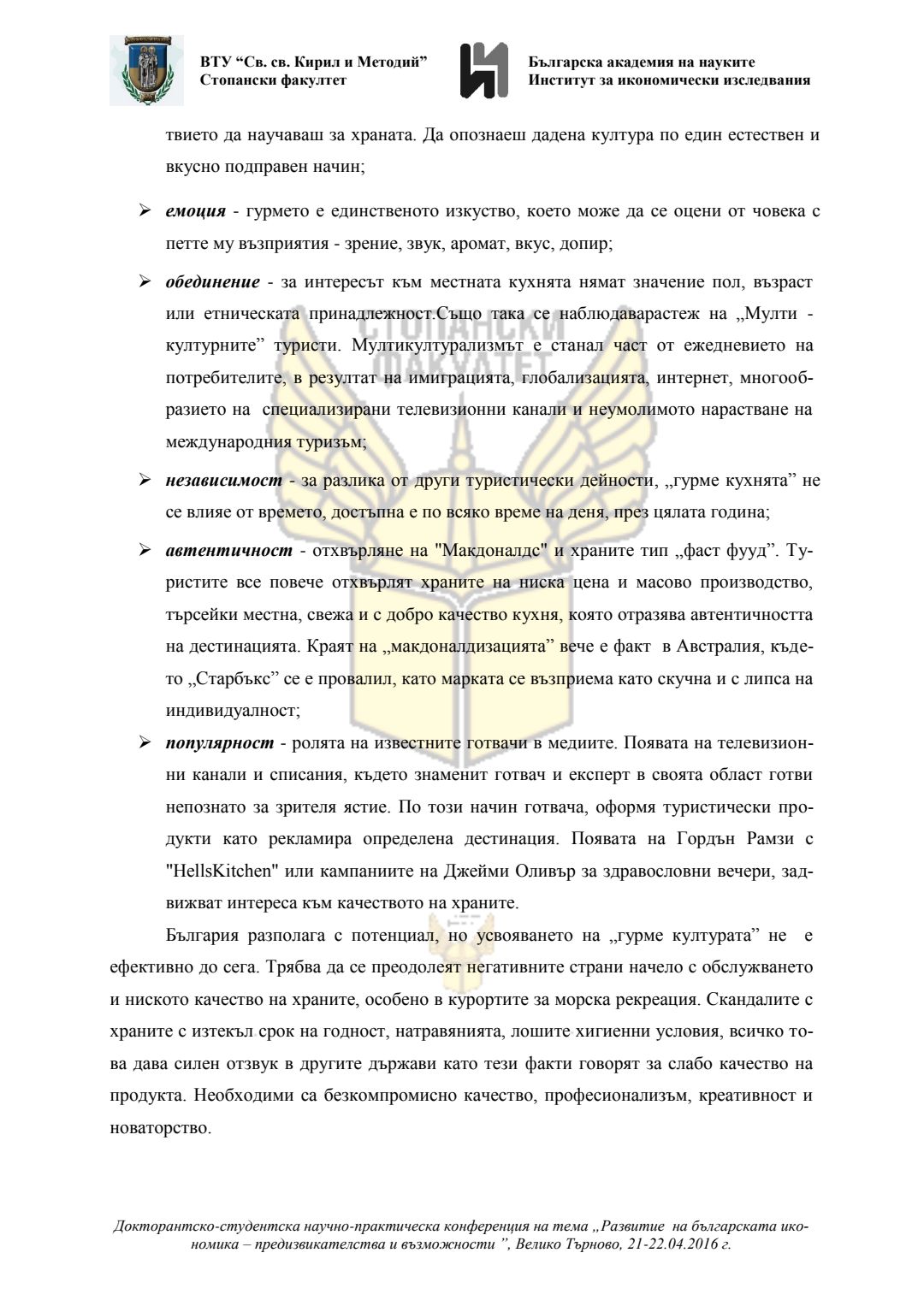 Докторантско-студентска научно-практическа конференция "Развитие на българската икономика - предизвикателства и възможности", 21 април 2016 г., Велико Търново : сборник с доклади