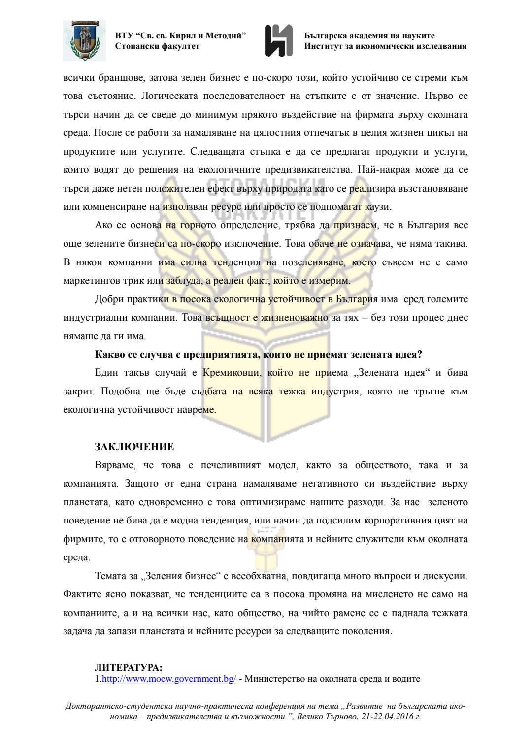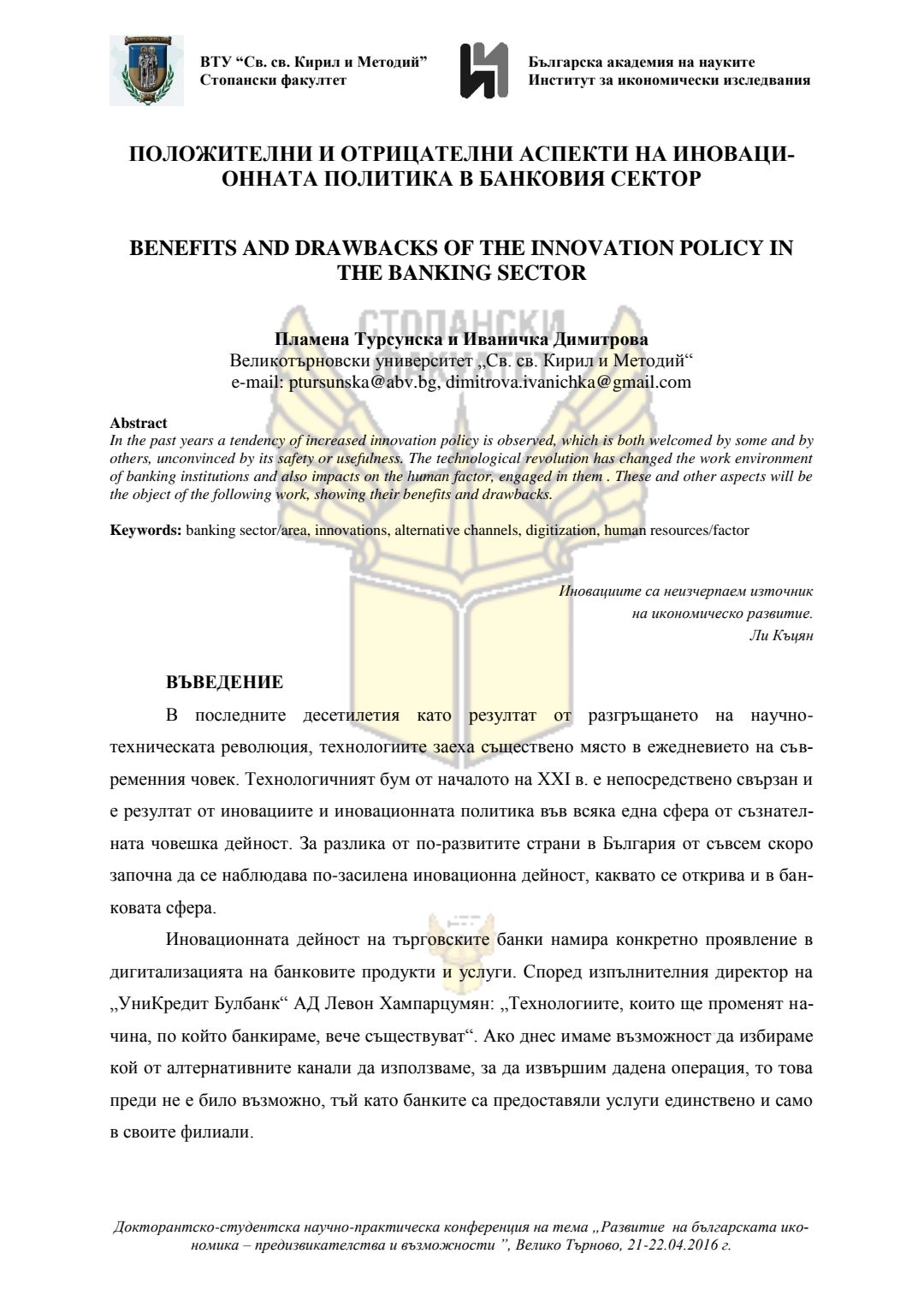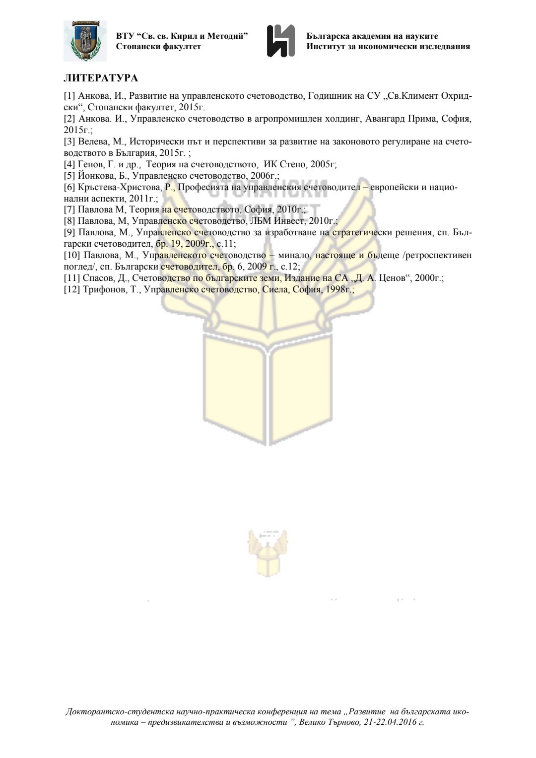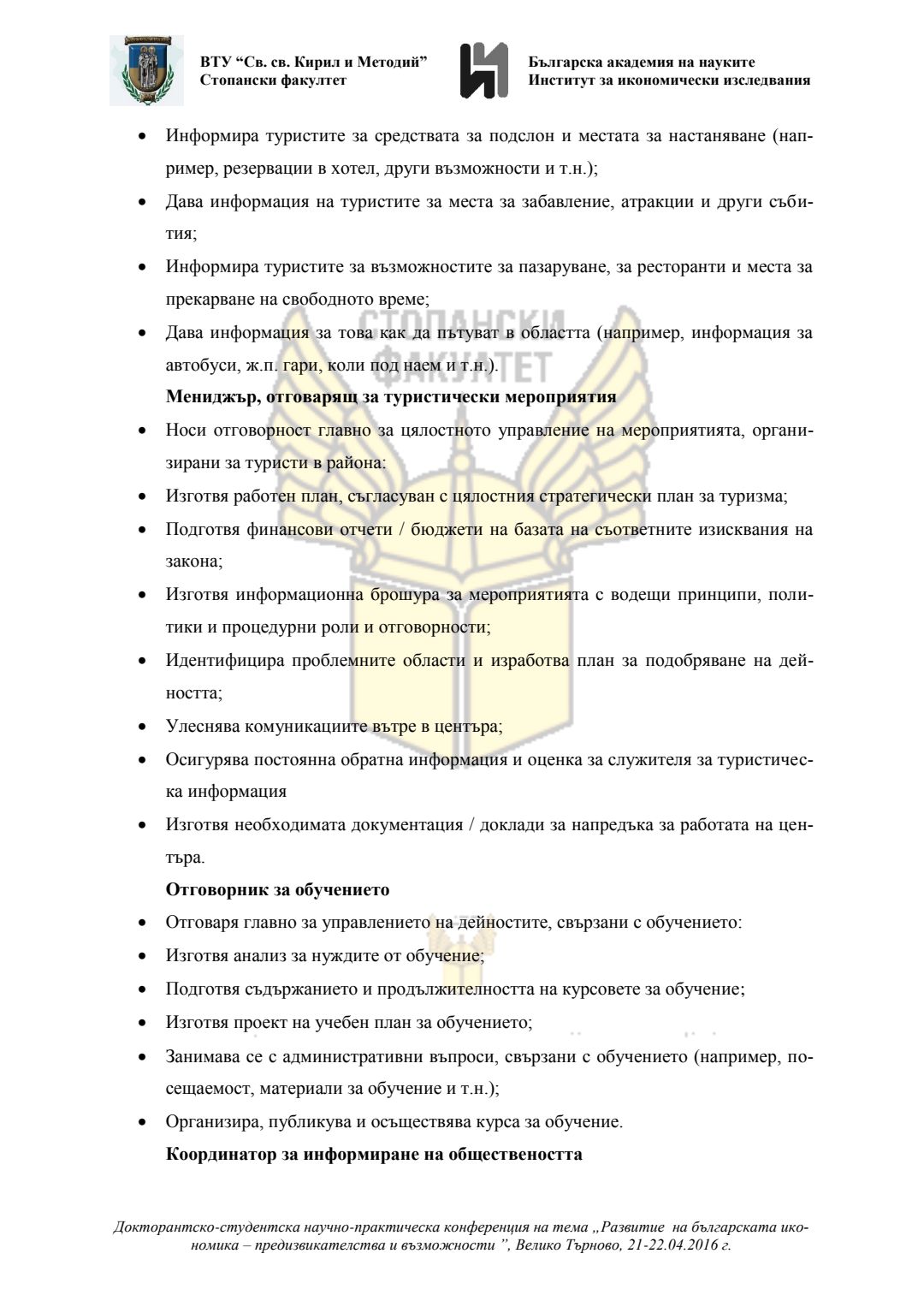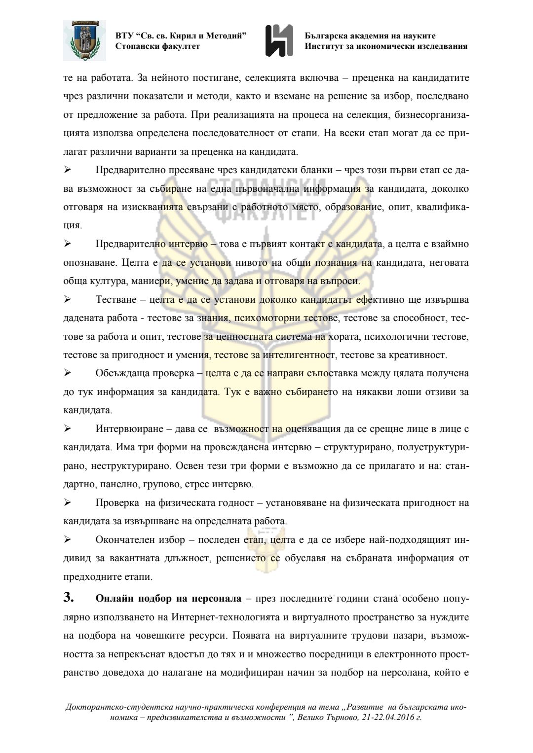 Докторантско-студентска научно-практическа конференция "Развитие на българската икономика - предизвикателства и възможности", 21 април 2016 г., Велико Търново : сборник с доклади