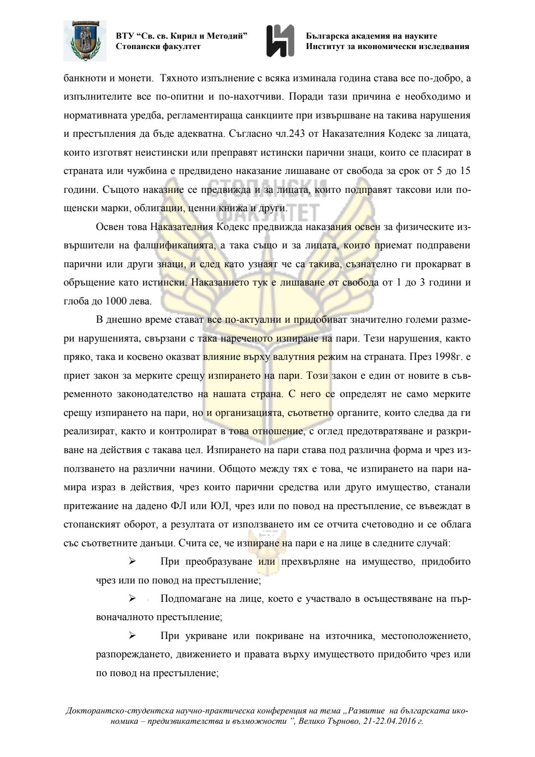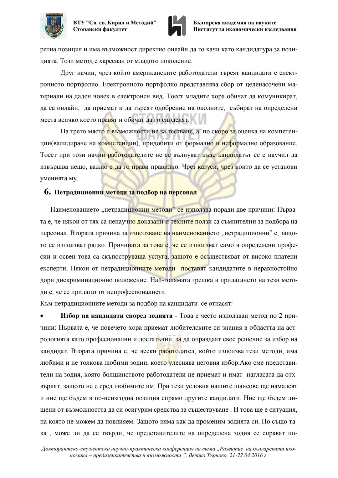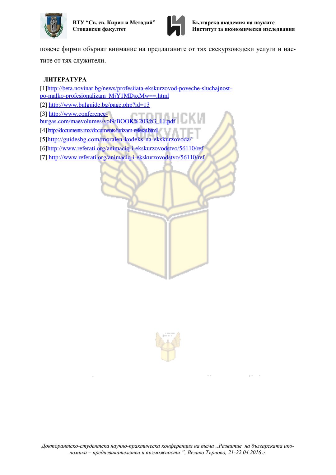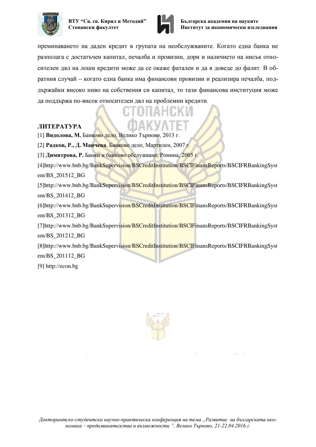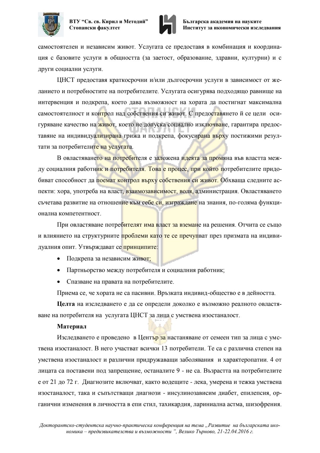 Докторантско-студентска научно-практическа конференция "Развитие на българската икономика - предизвикателства и възможности", 21 април 2016 г., Велико Търново : сборник с доклади