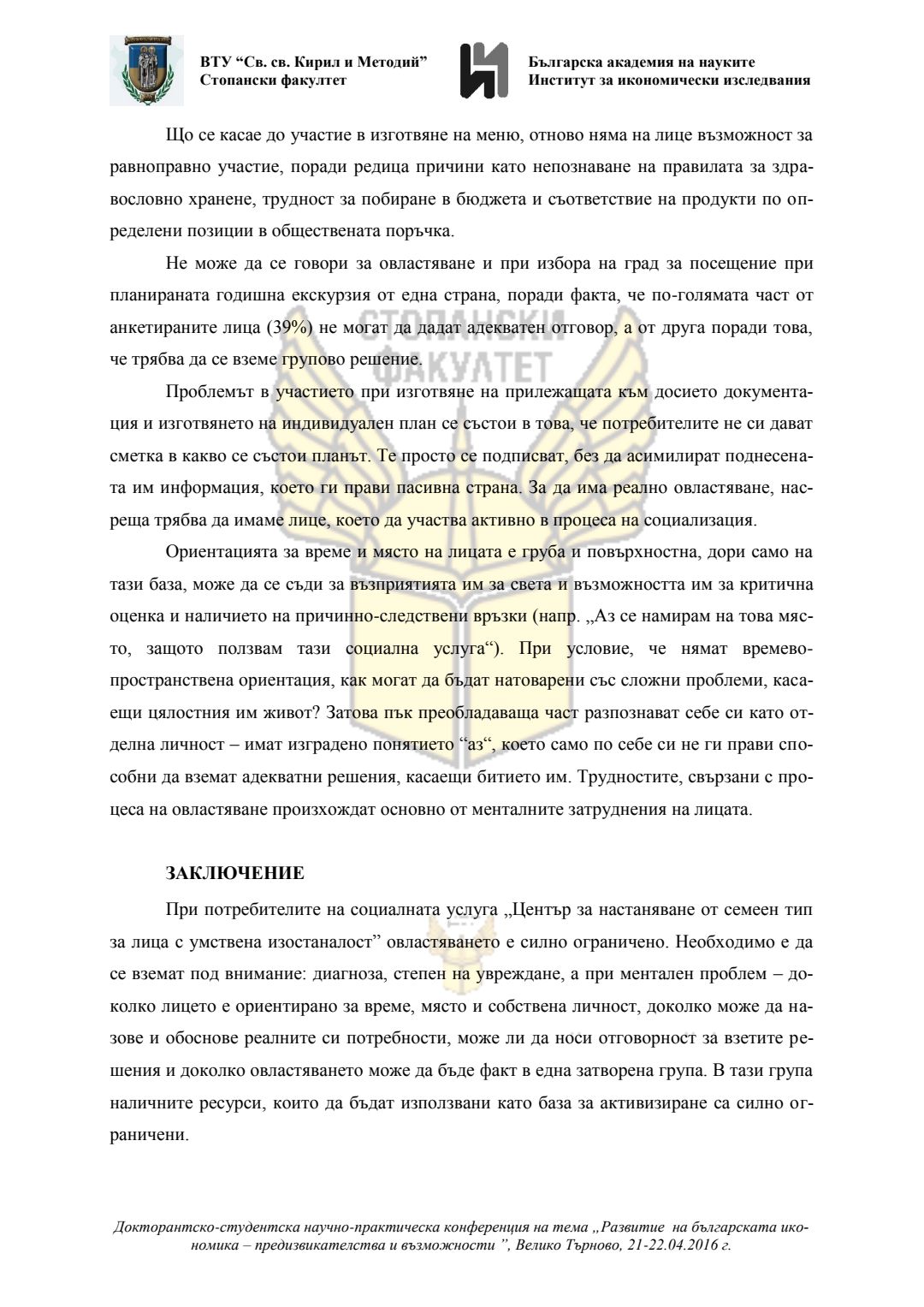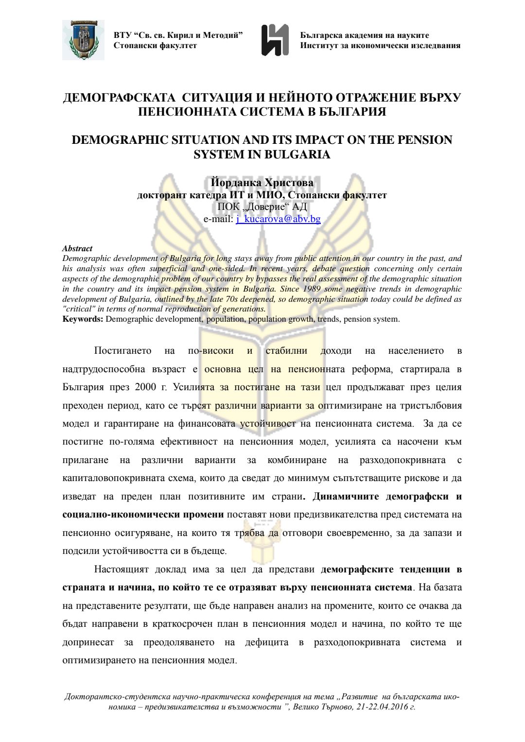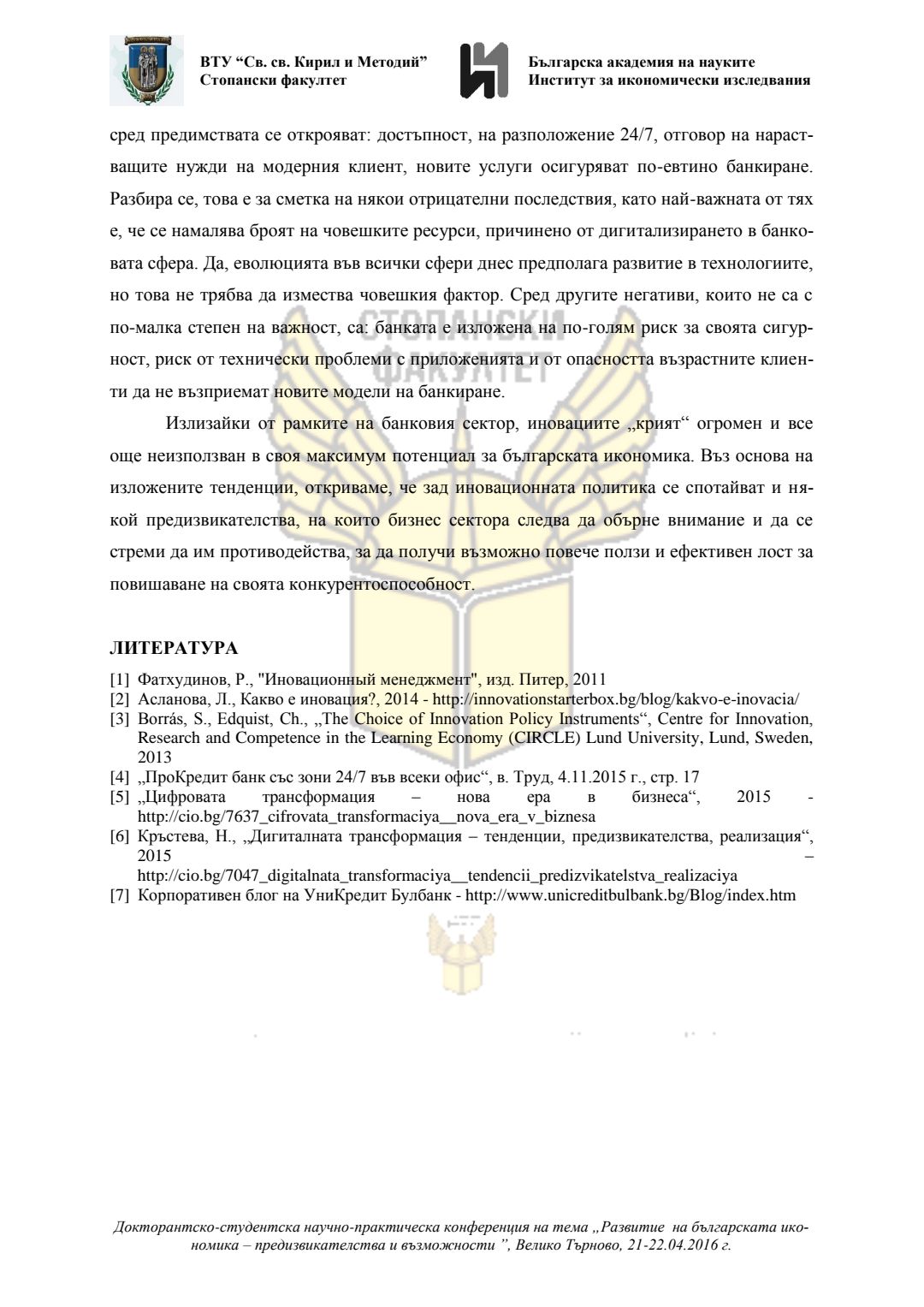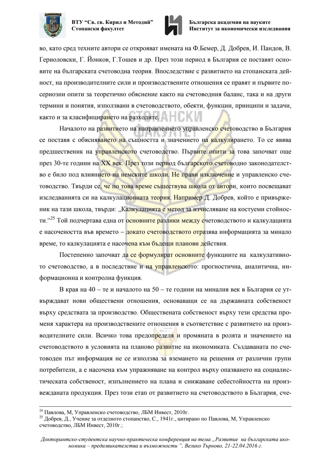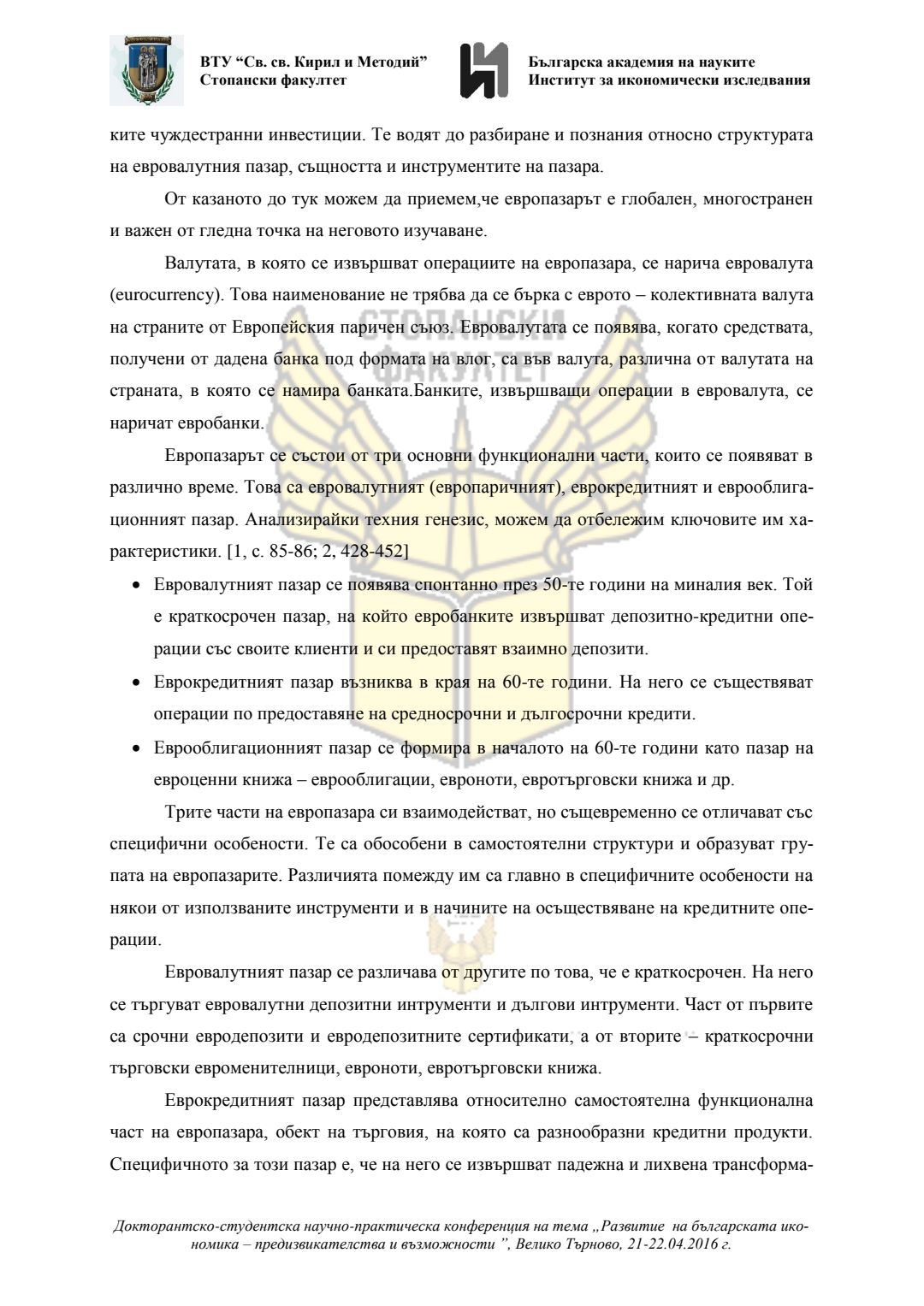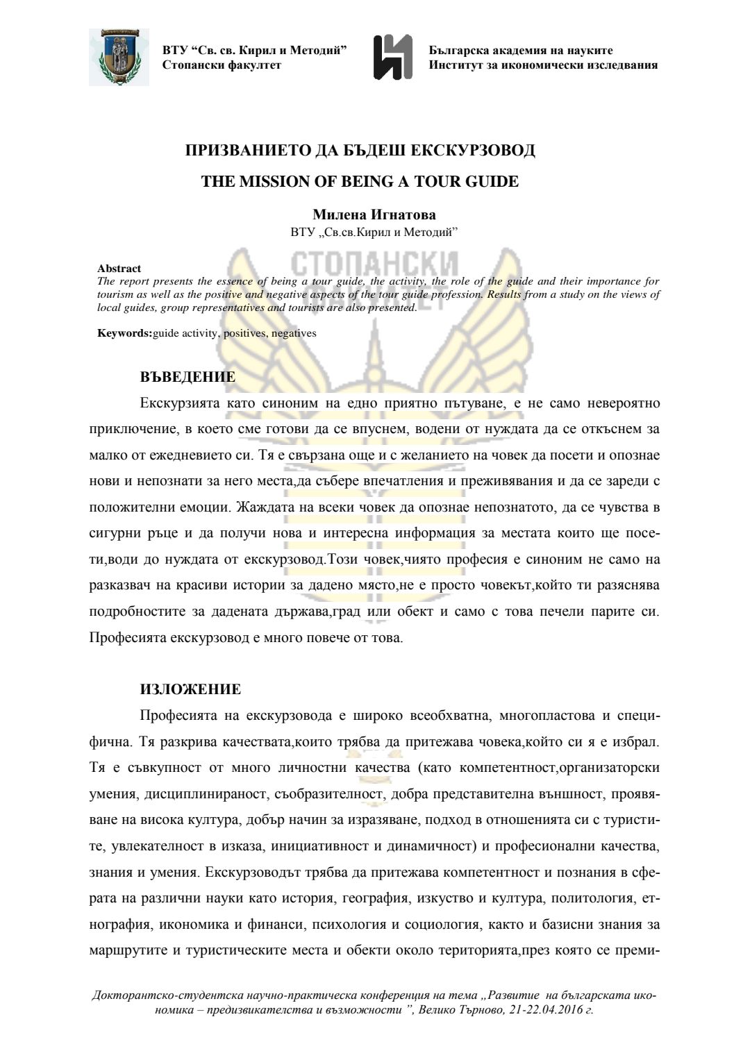 Докторантско-студентска научно-практическа конференция "Развитие на българската икономика - предизвикателства и възможности", 21 април 2016 г., Велико Търново : сборник с доклади
