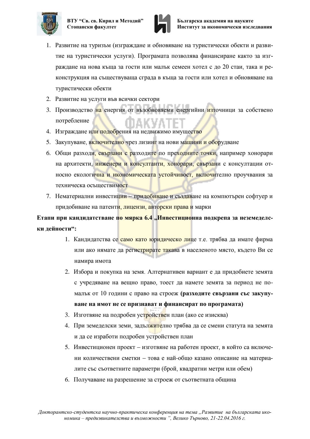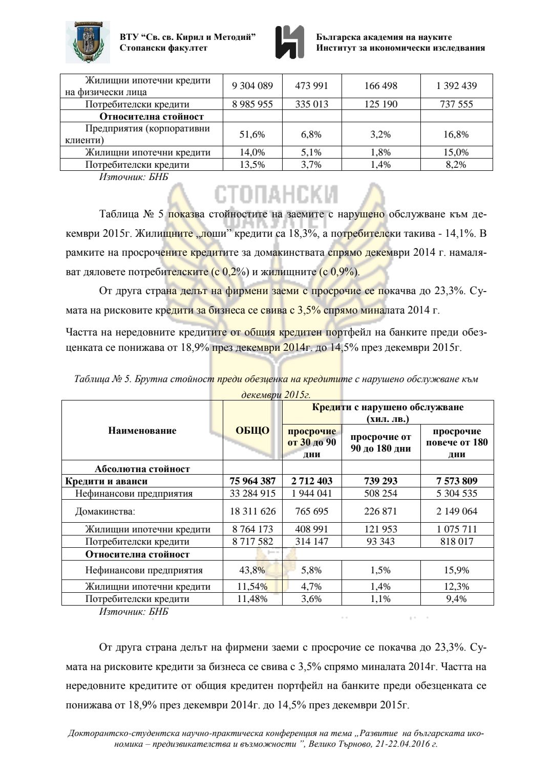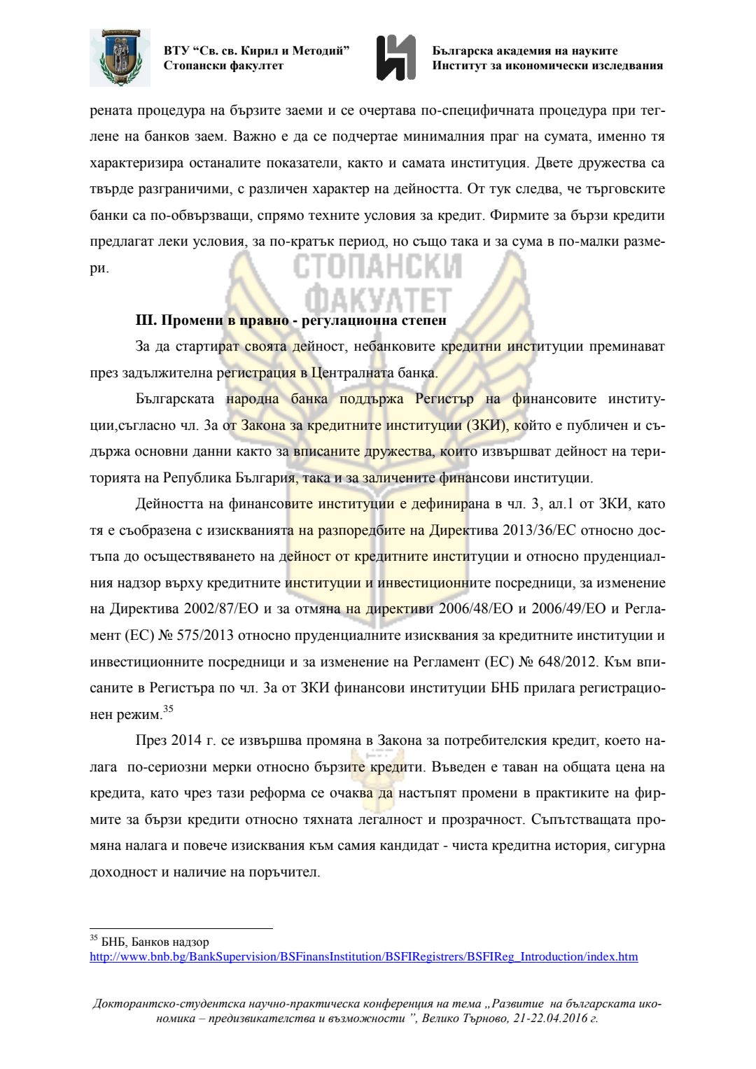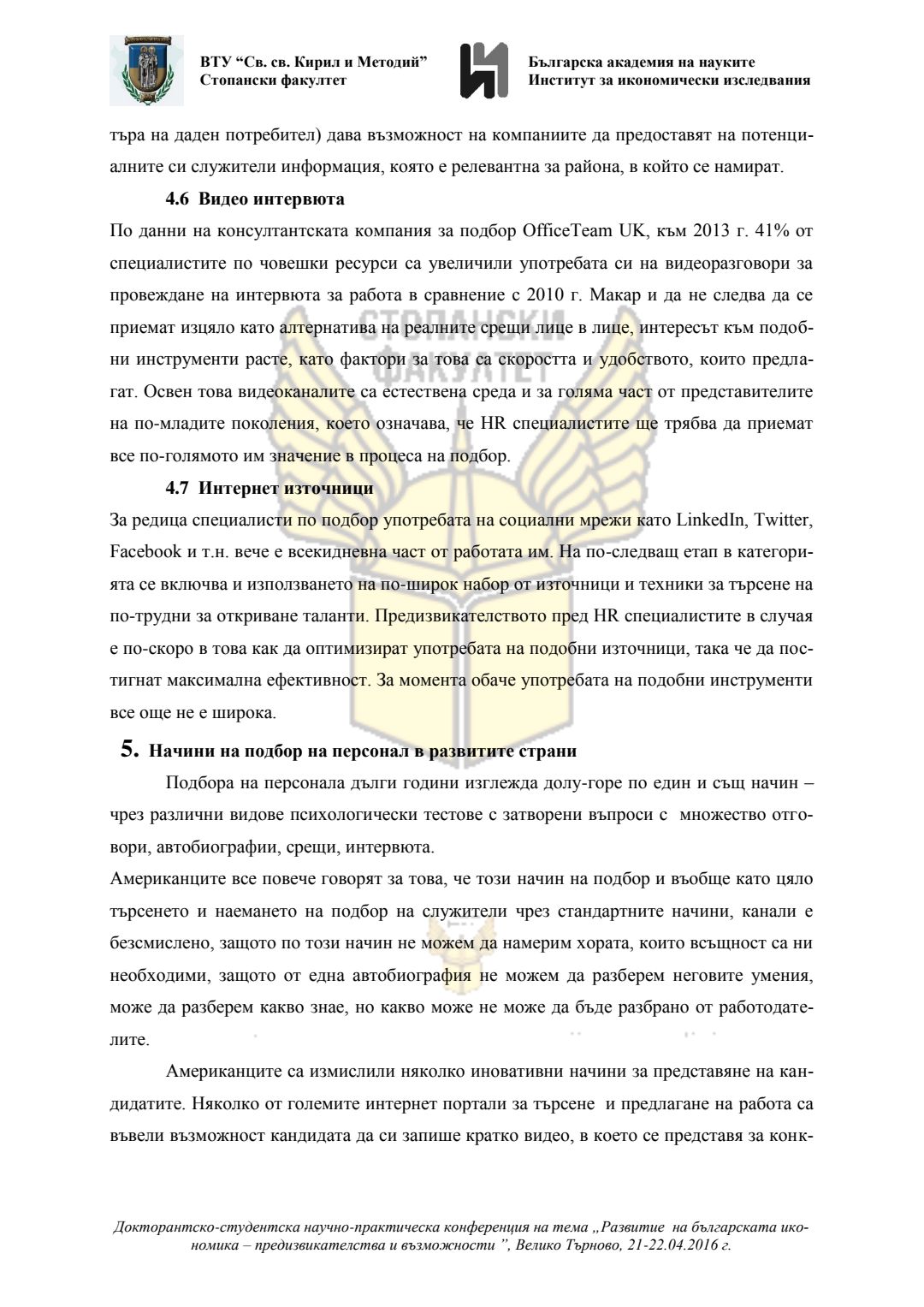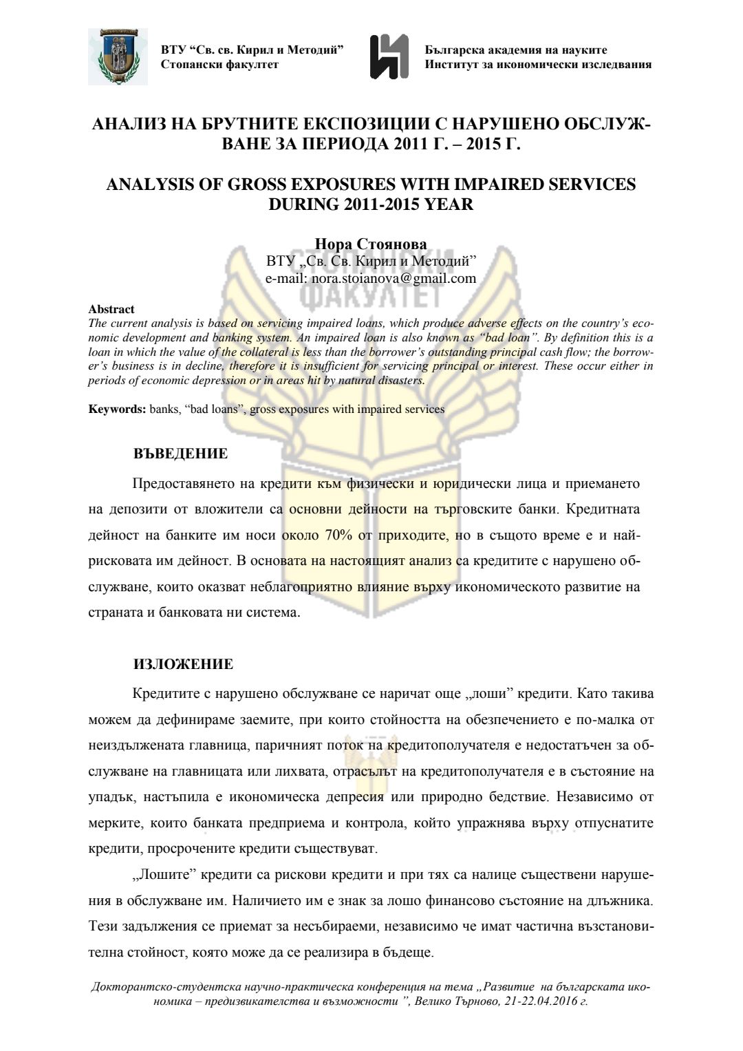 Докторантско-студентска научно-практическа конференция "Развитие на българската икономика - предизвикателства и възможности", 21 април 2016 г., Велико Търново : сборник с доклади