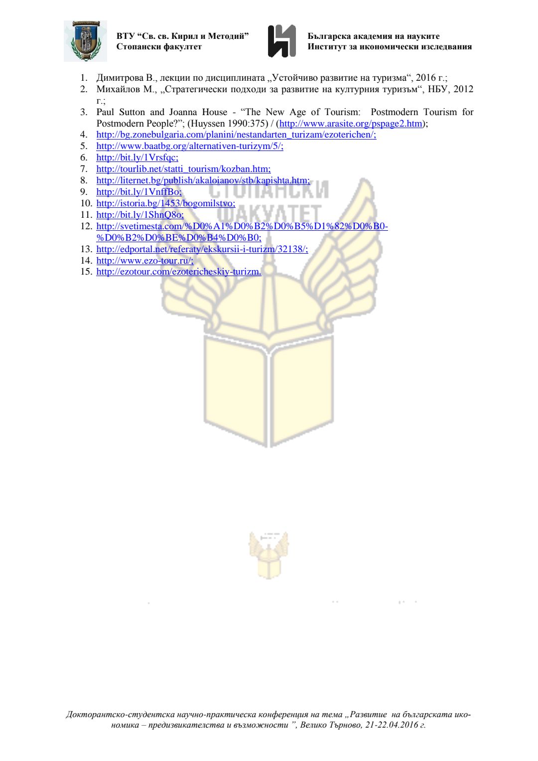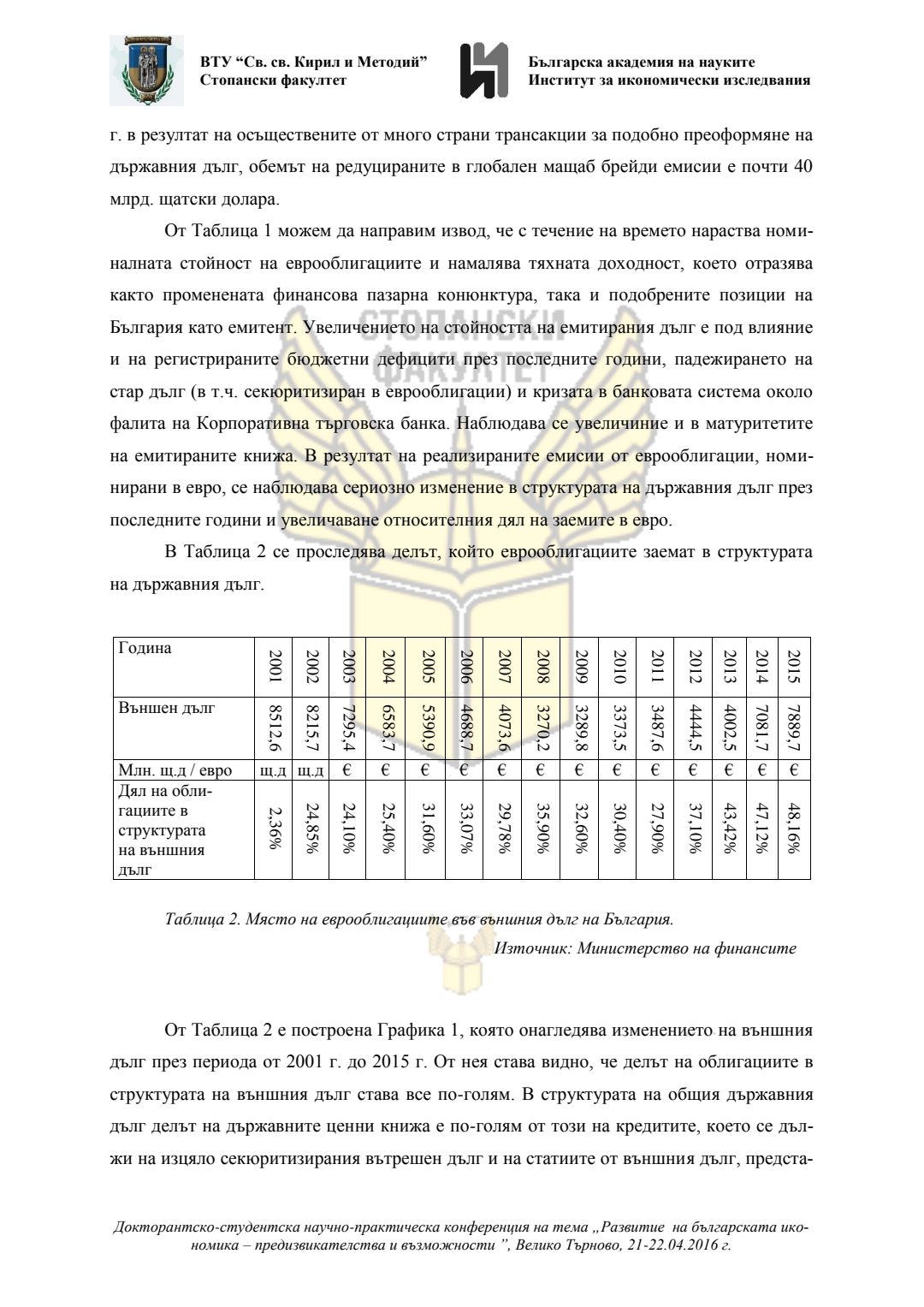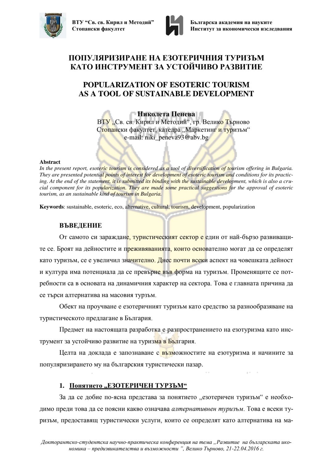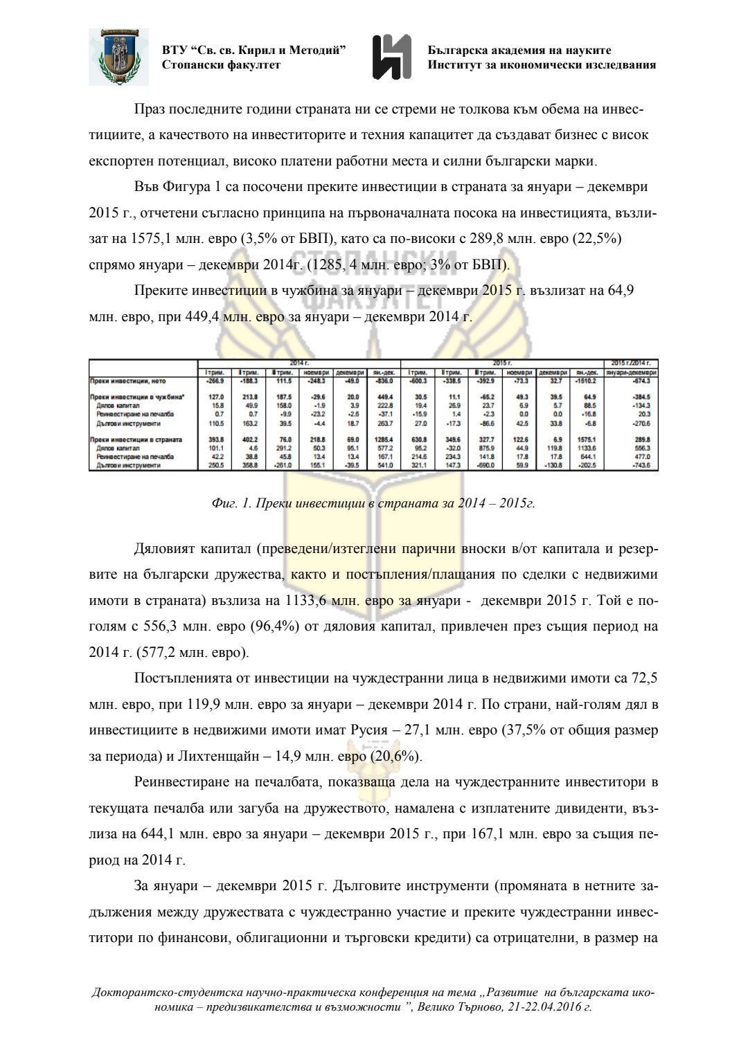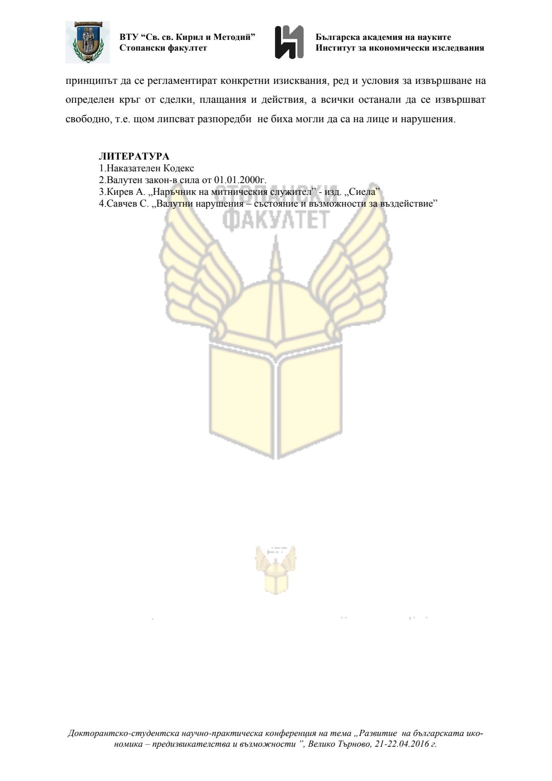 Докторантско-студентска научно-практическа конференция "Развитие на българската икономика - предизвикателства и възможности", 21 април 2016 г., Велико Търново : сборник с доклади