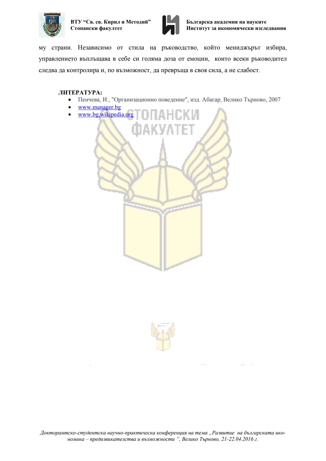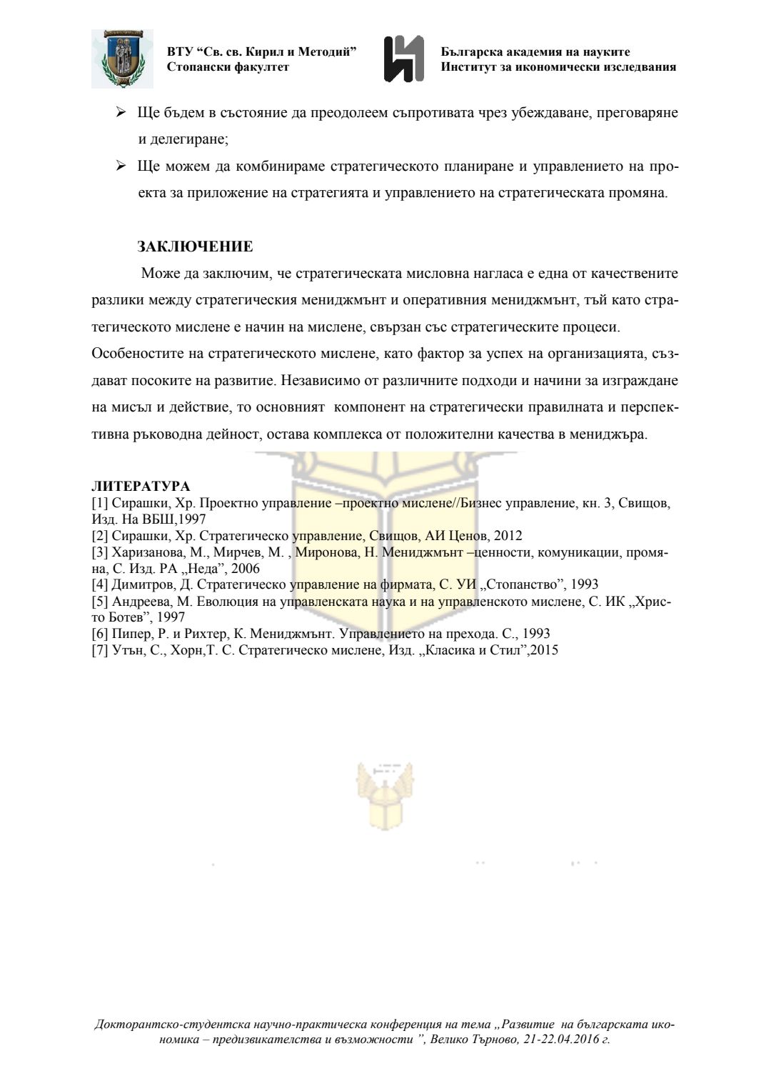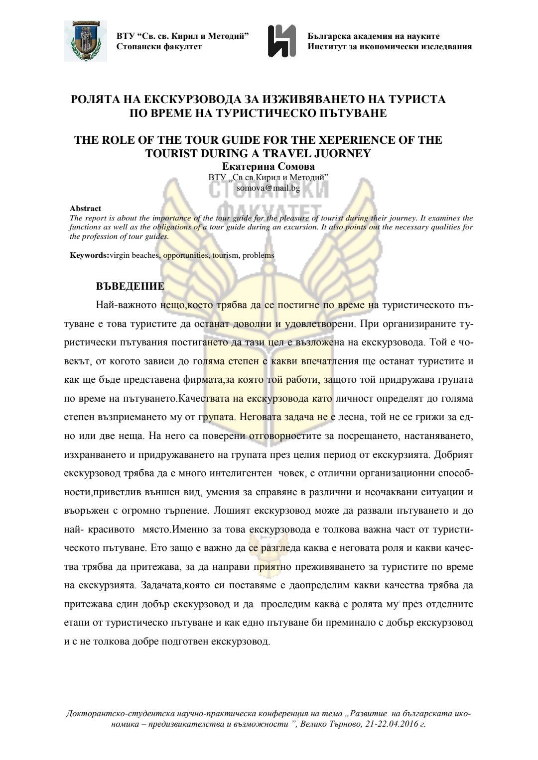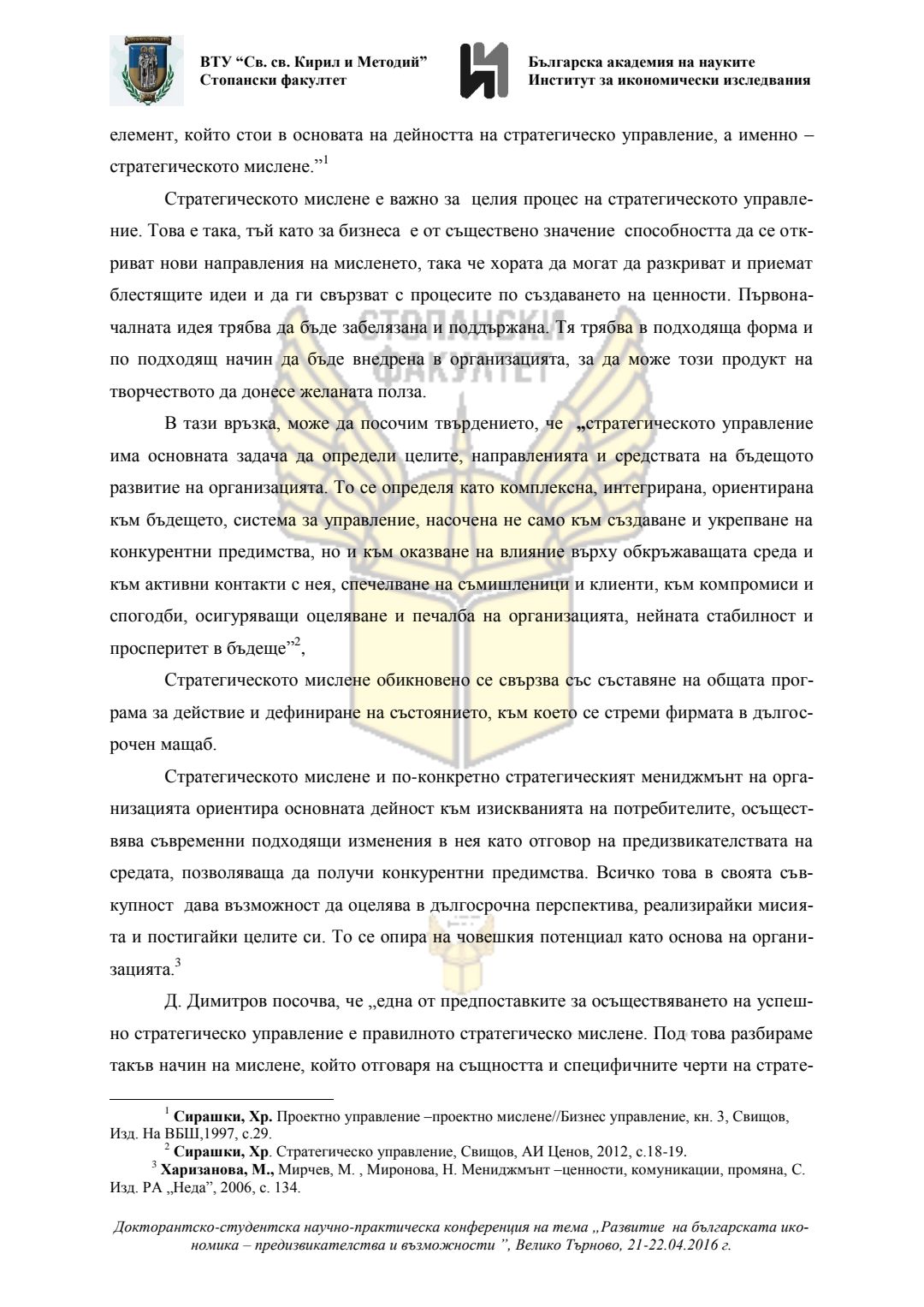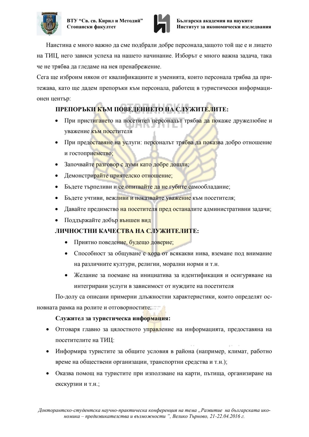 Докторантско-студентска научно-практическа конференция "Развитие на българската икономика - предизвикателства и възможности", 21 април 2016 г., Велико Търново : сборник с доклади