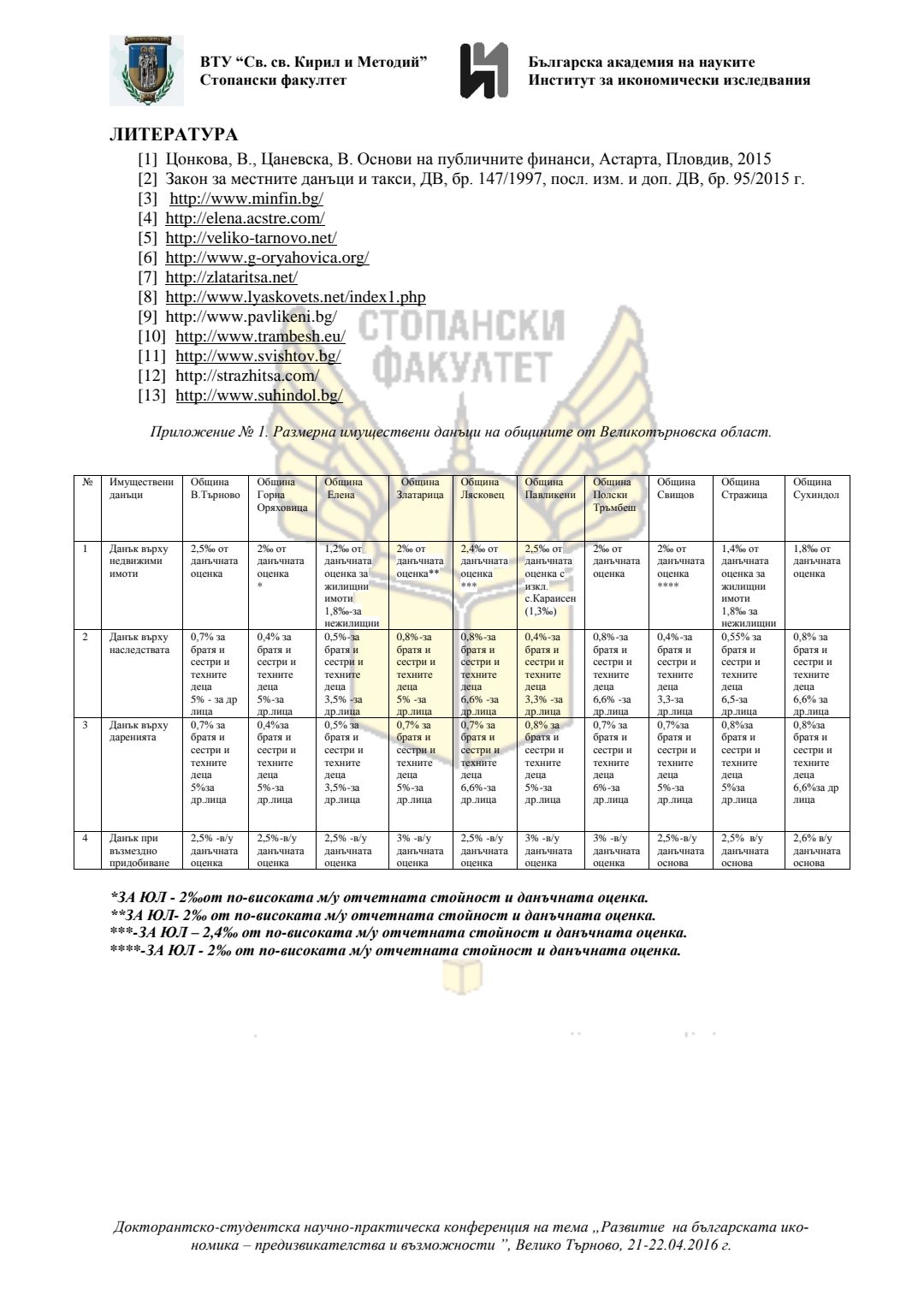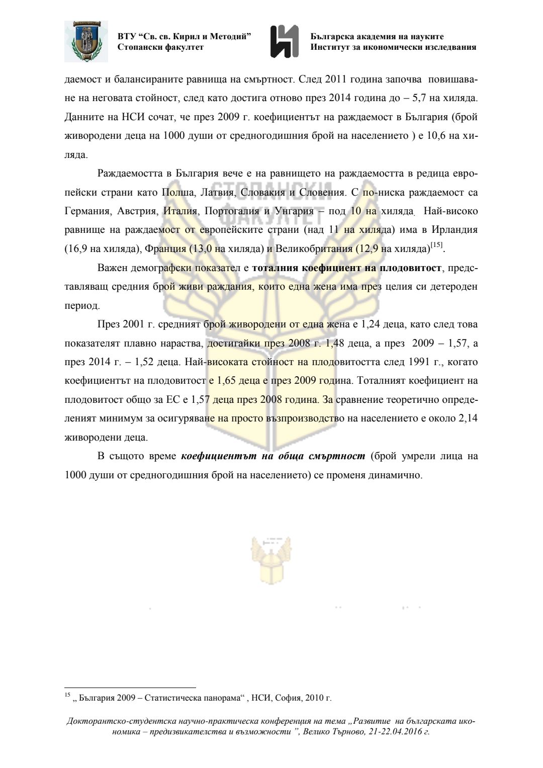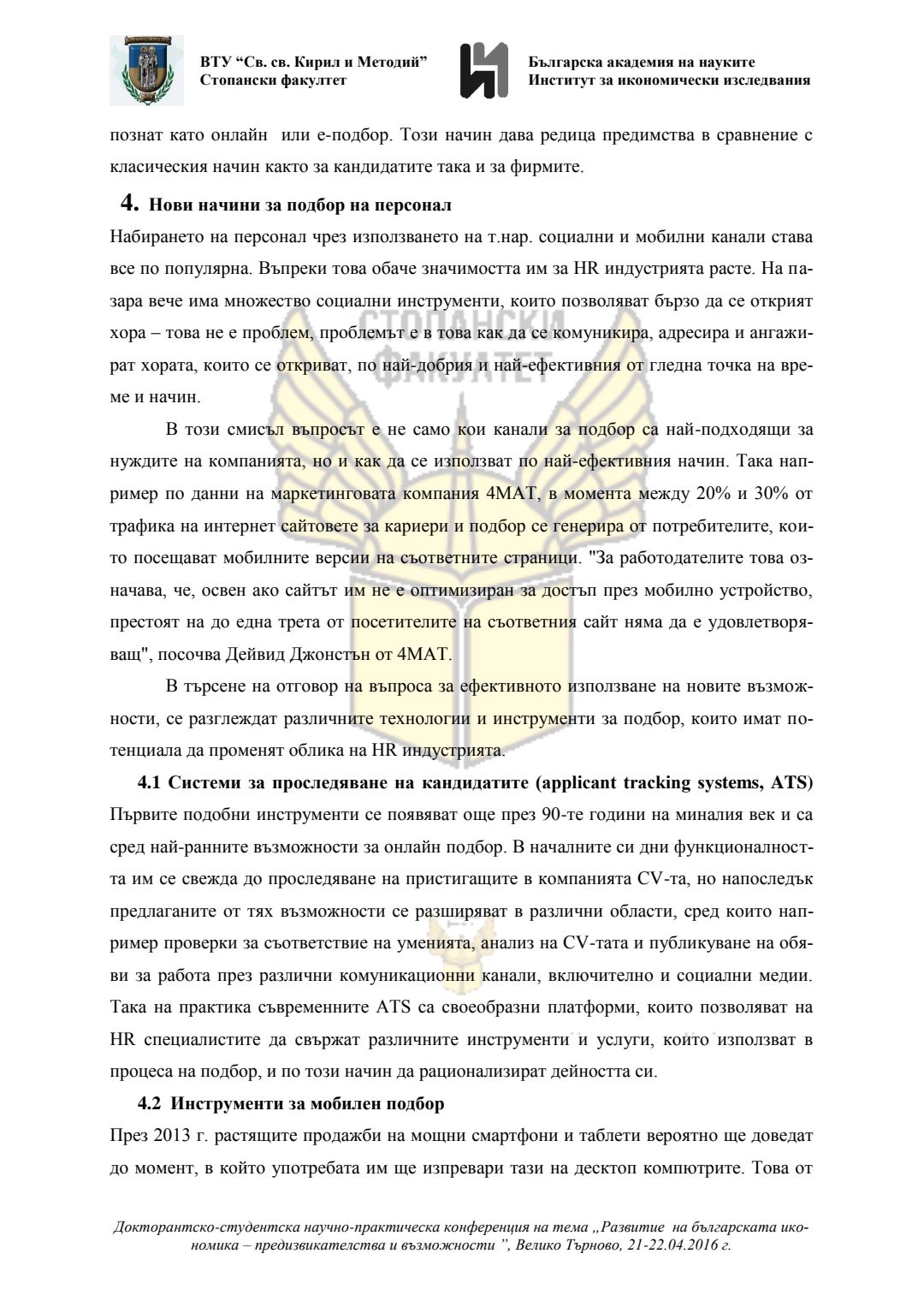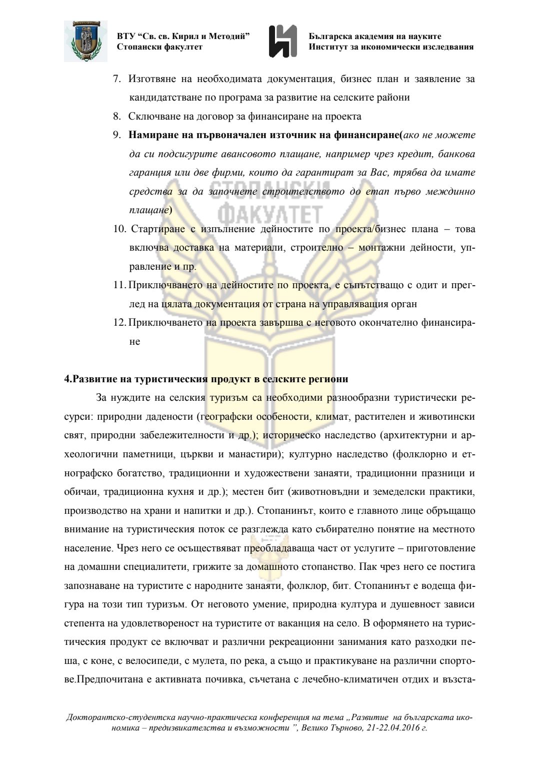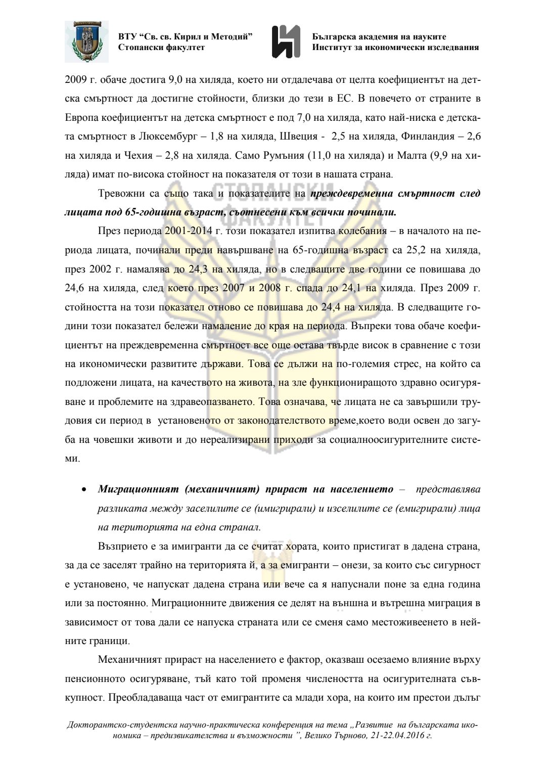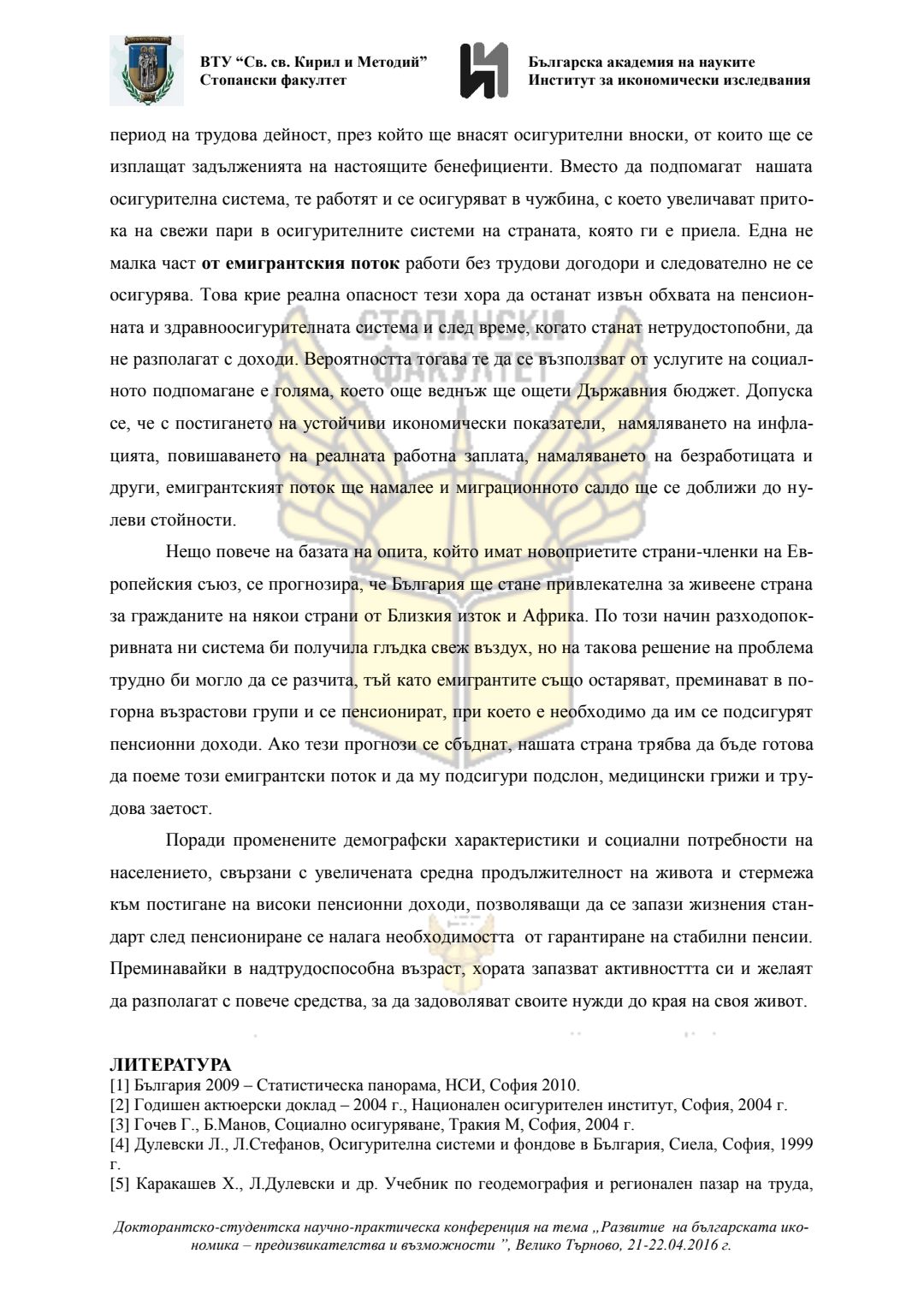 Докторантско-студентска научно-практическа конференция "Развитие на българската икономика - предизвикателства и възможности", 21 април 2016 г., Велико Търново : сборник с доклади