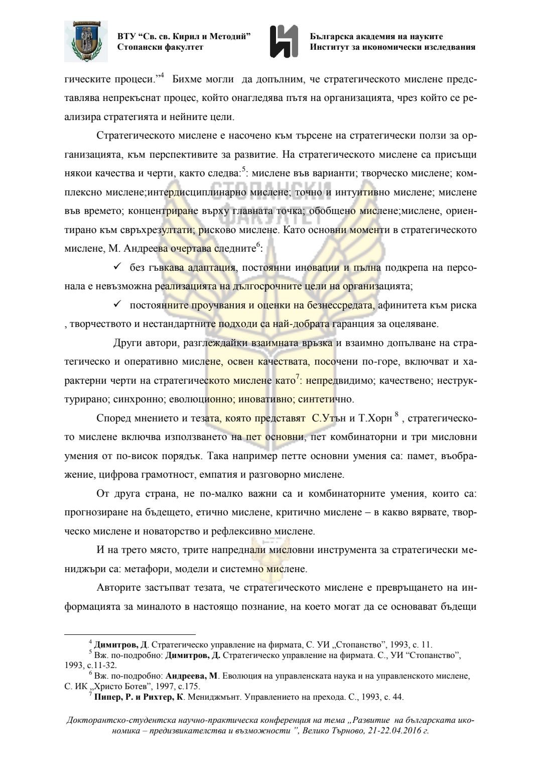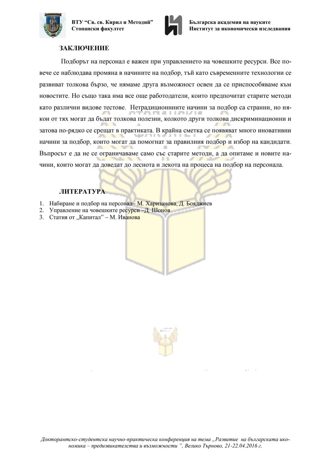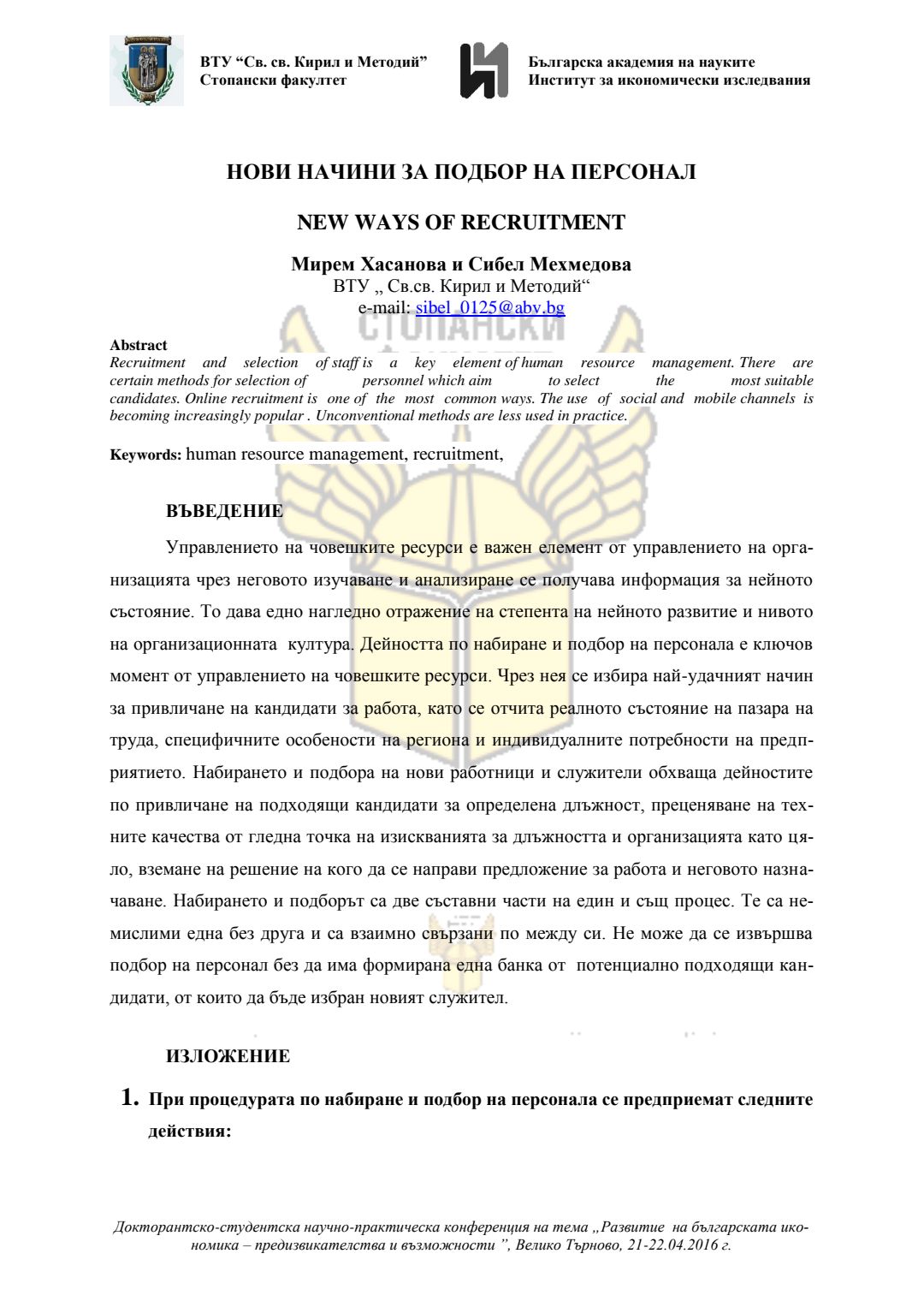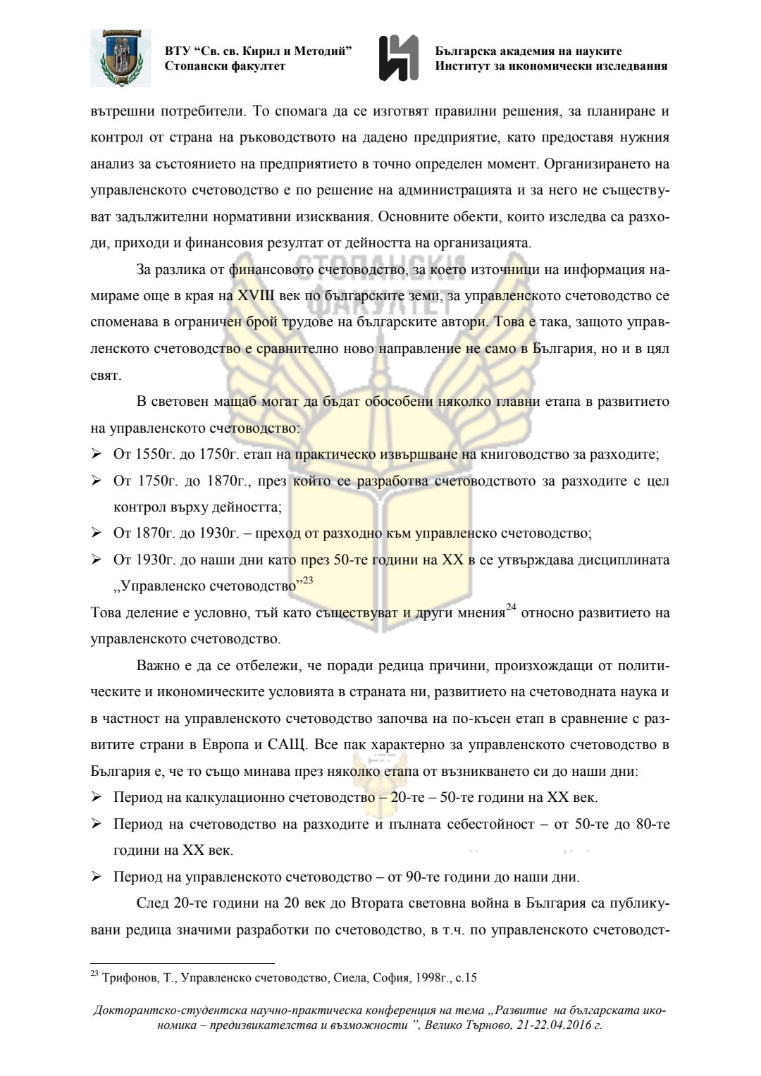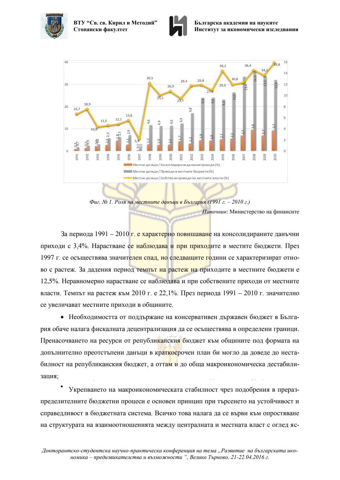 Докторантско-студентска научно-практическа конференция "Развитие на българската икономика - предизвикателства и възможности", 21 април 2016 г., Велико Търново : сборник с доклади