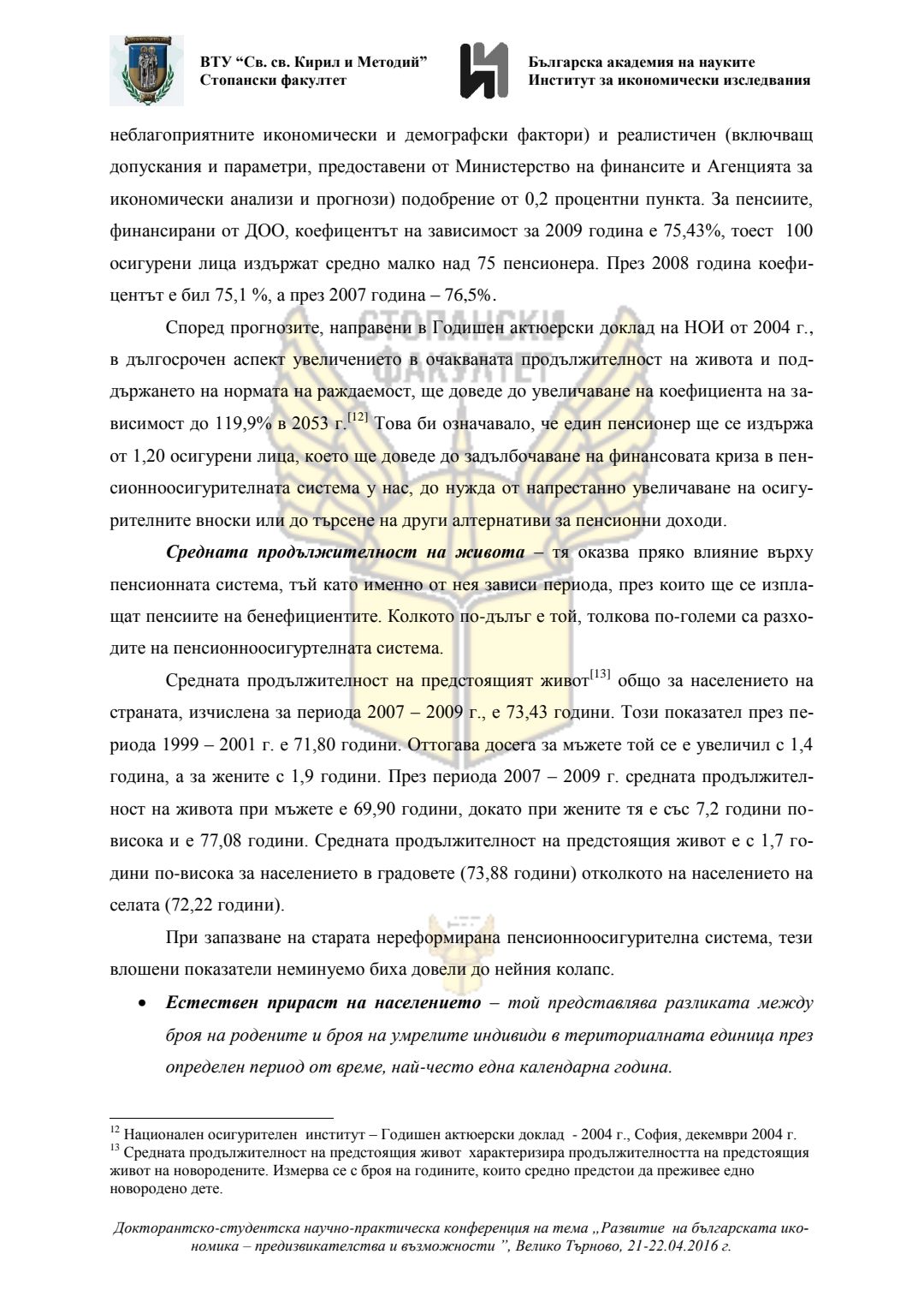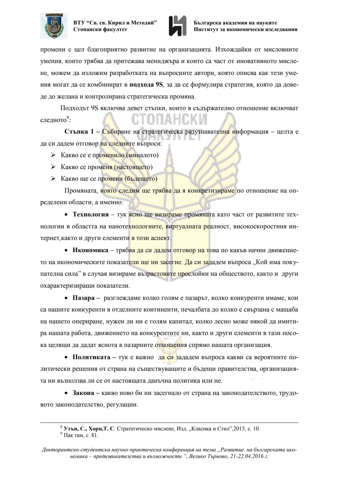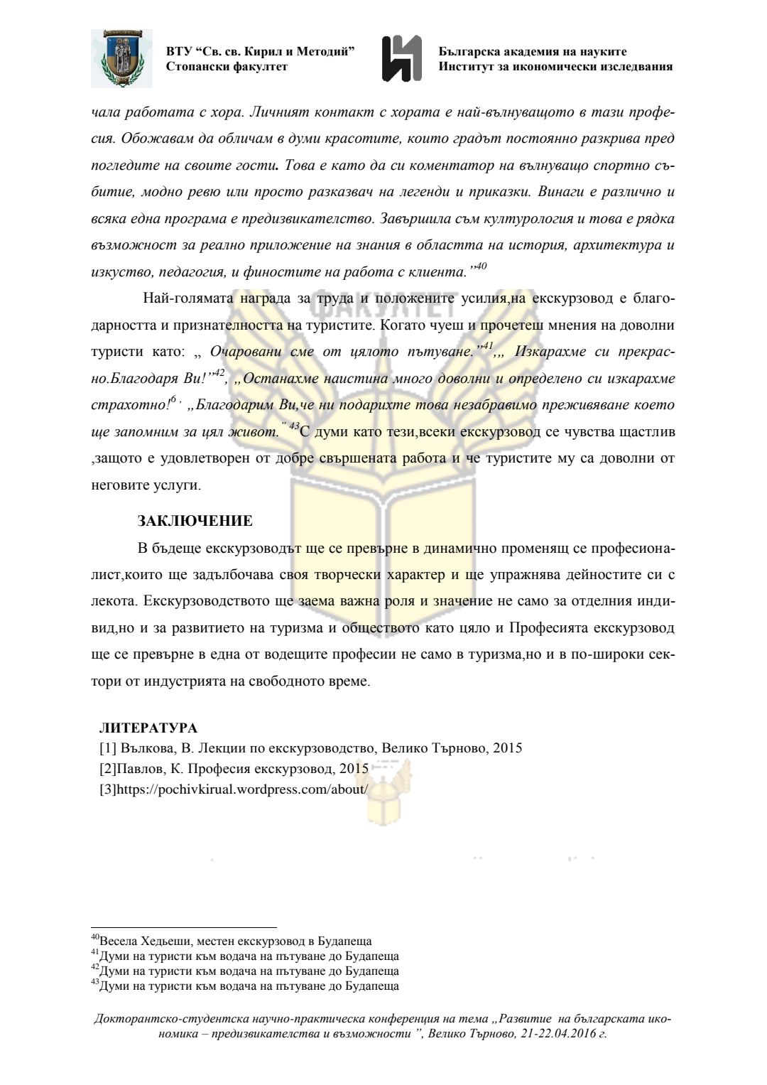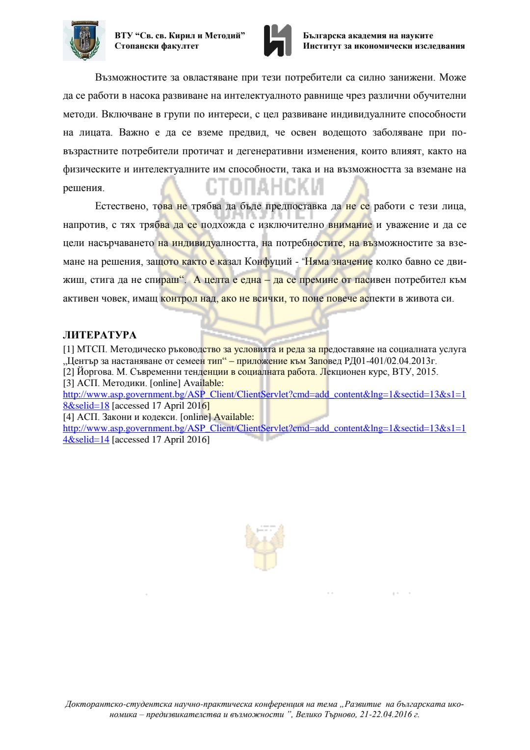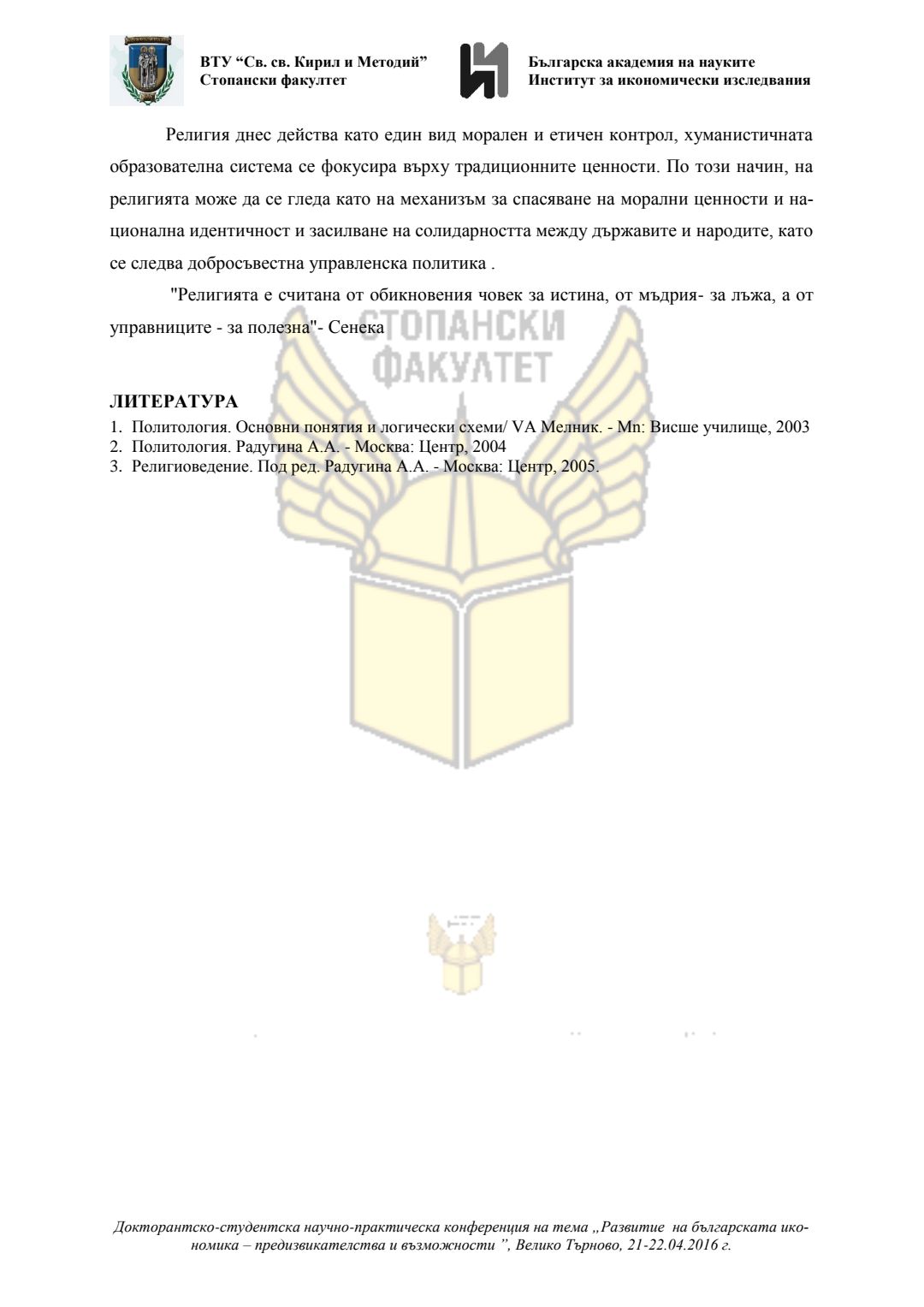 Докторантско-студентска научно-практическа конференция "Развитие на българската икономика - предизвикателства и възможности", 21 април 2016 г., Велико Търново : сборник с доклади