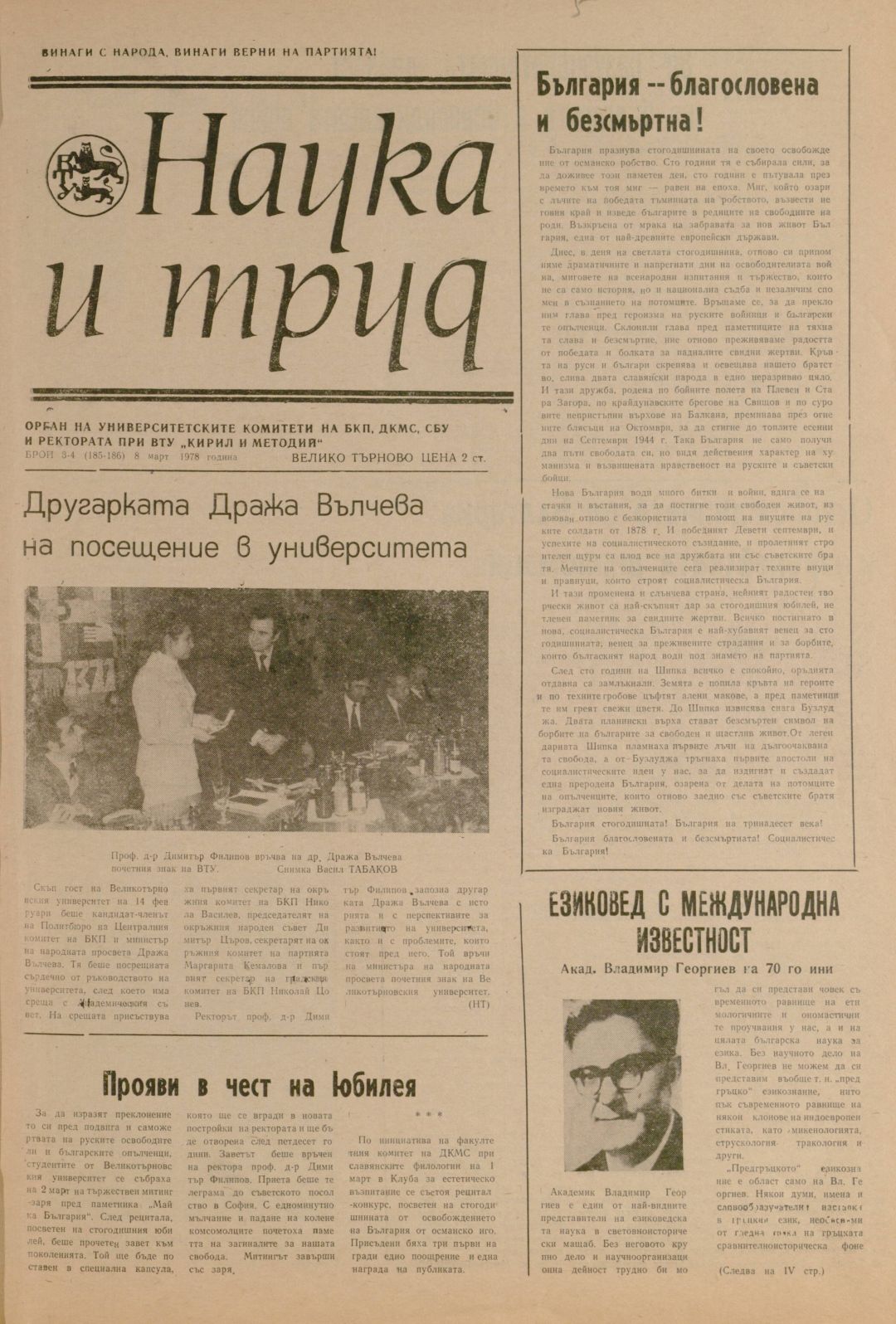 Год.17, 3-4 (185-186). Наука и труд : Орган на университетските организации на БКП, ДКМС, СУ и Ректората при ВПИ "Братя Кирил и Методий"