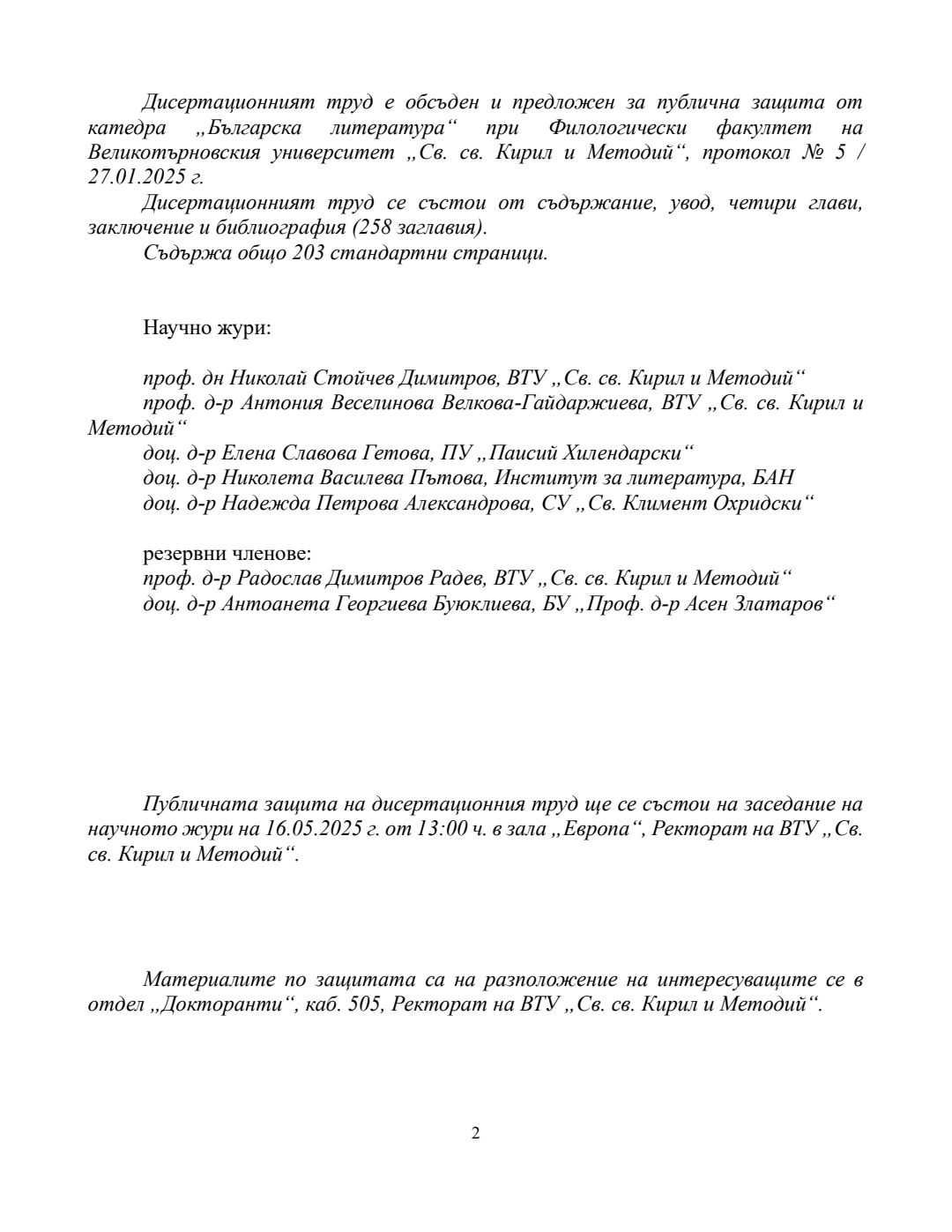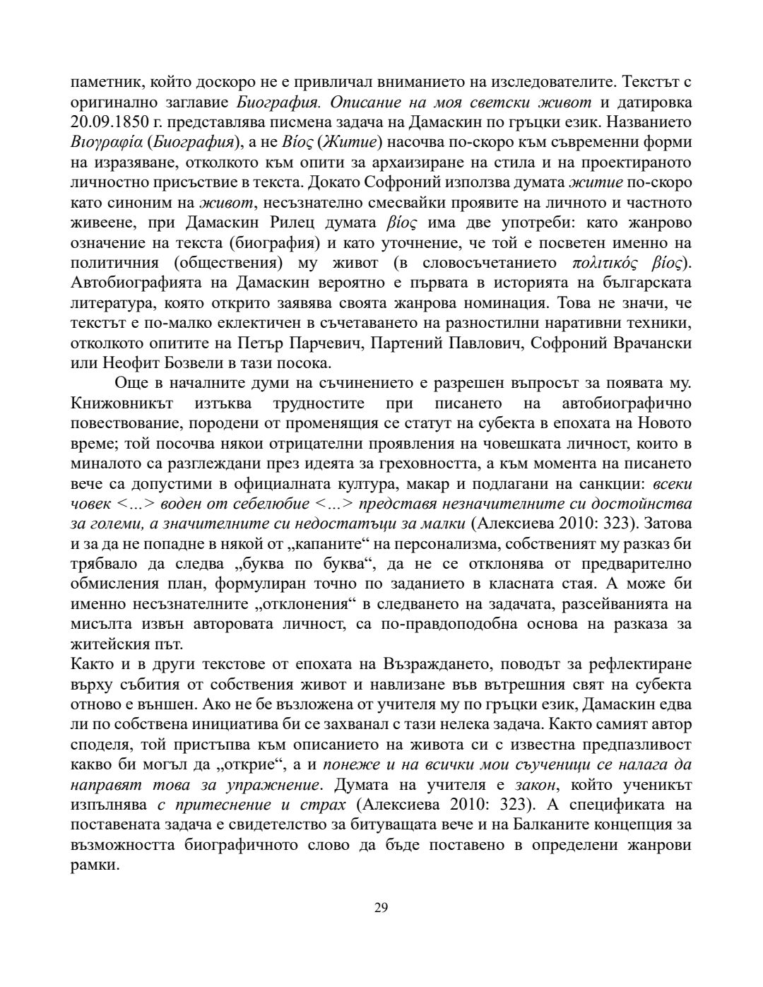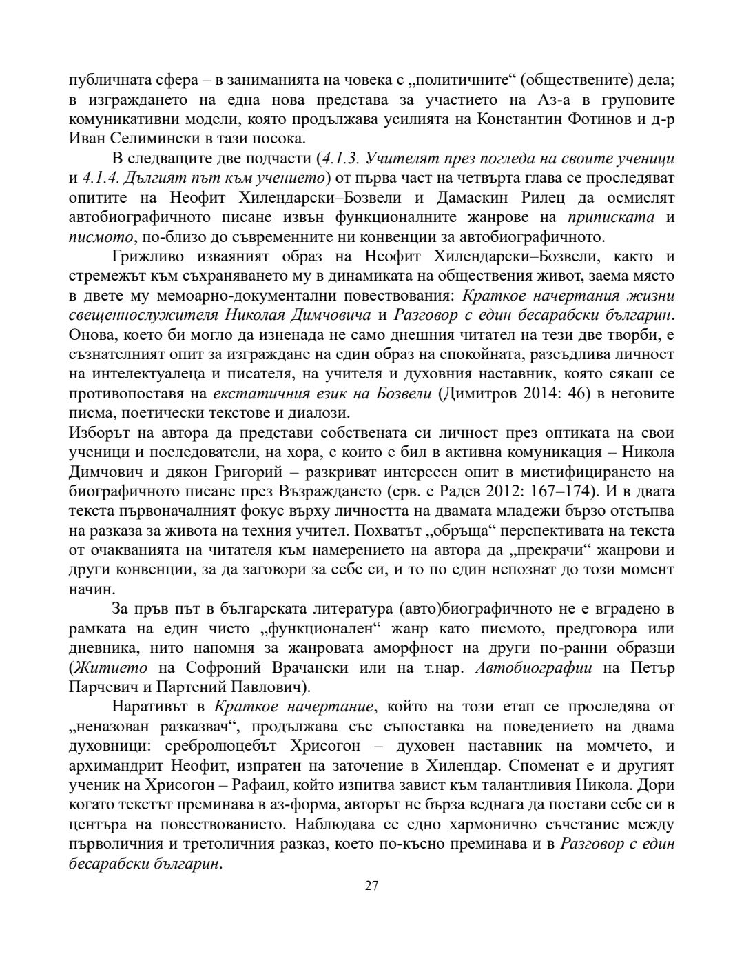 Рефлекси на автобиографичното в българската книжнина на прехода от Средновековието към Възраждането (XV - средата на XIX век) : Автореферат / Александър Юлиянов Николов ; Научен ръководител Невена Гавазова