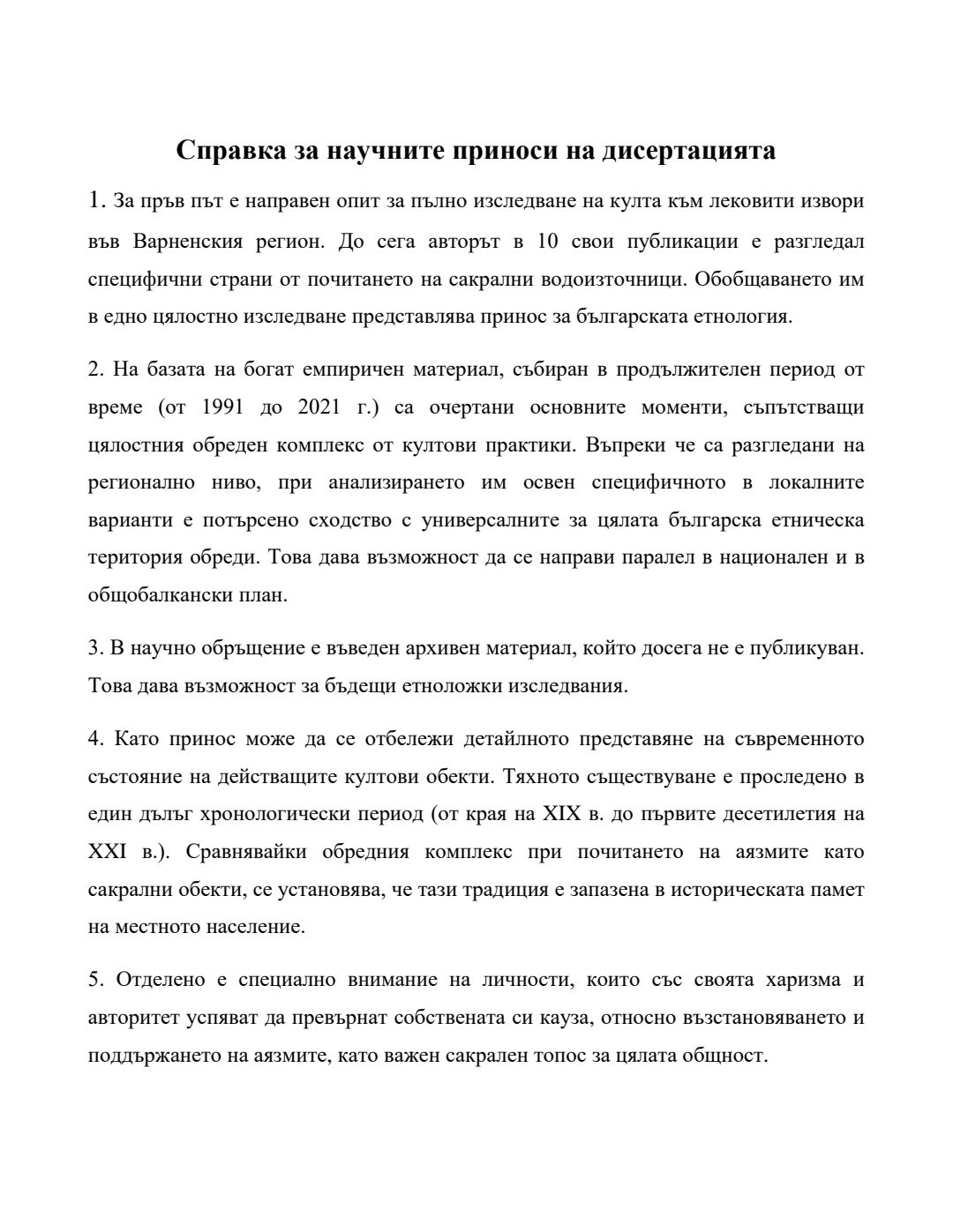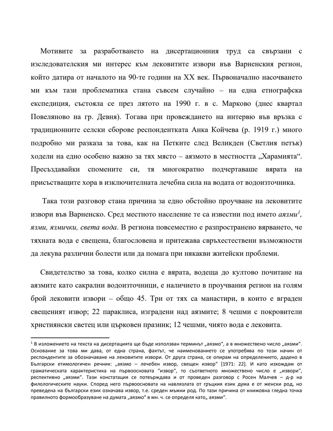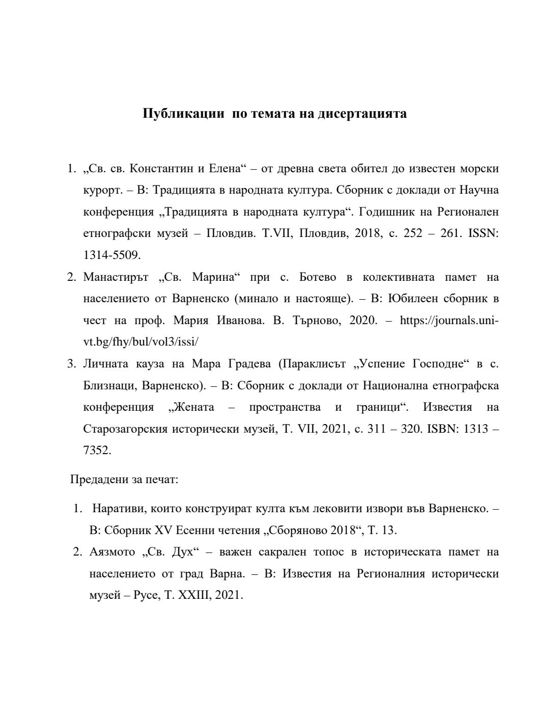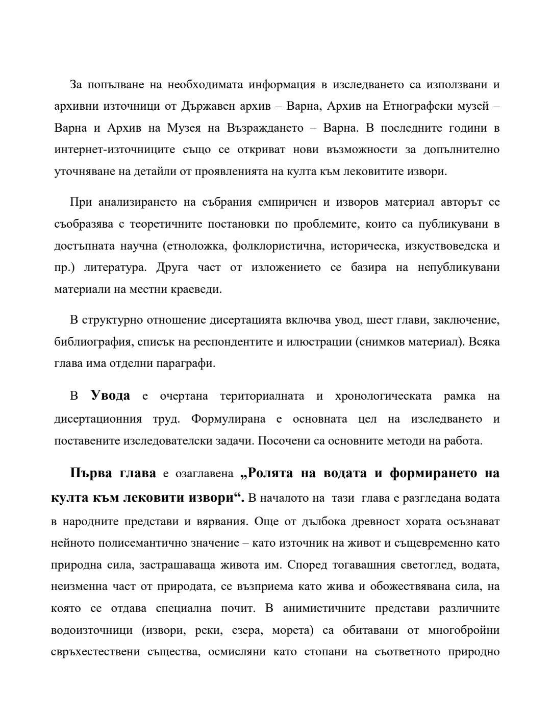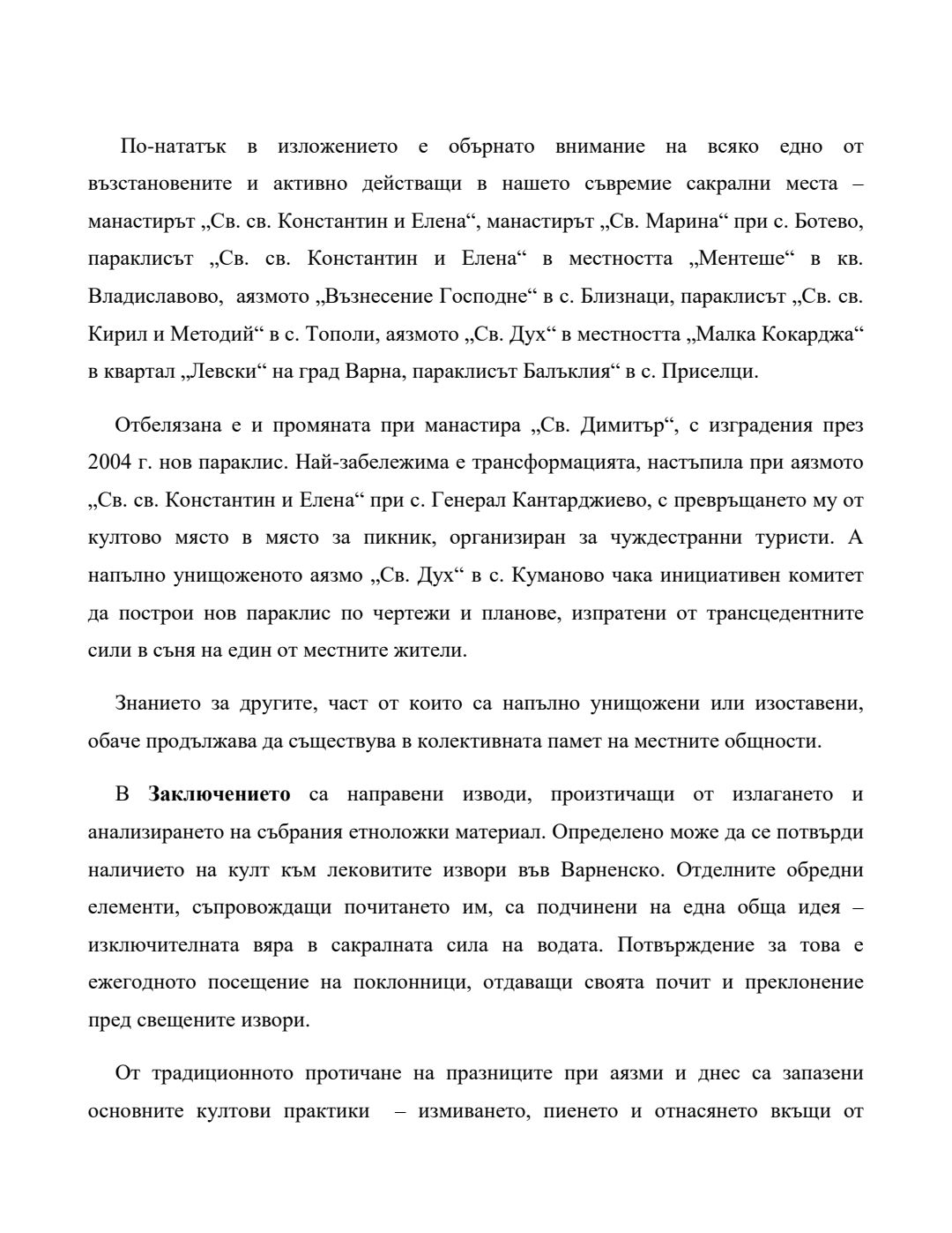 Култът към лековити извори във Варненско от края на XIX до началото на XXI век (етноложки прочит) : Автореферат / Светлозара Димитрова Колева ; Науч. ръководител Мария Иванова