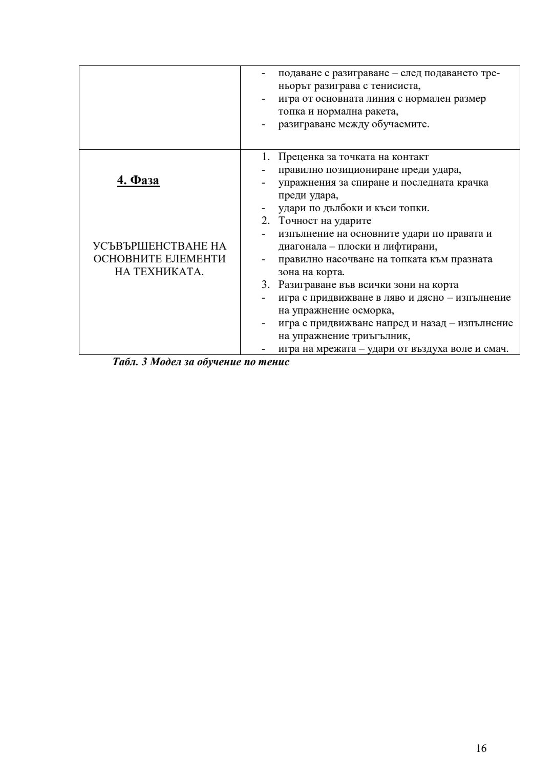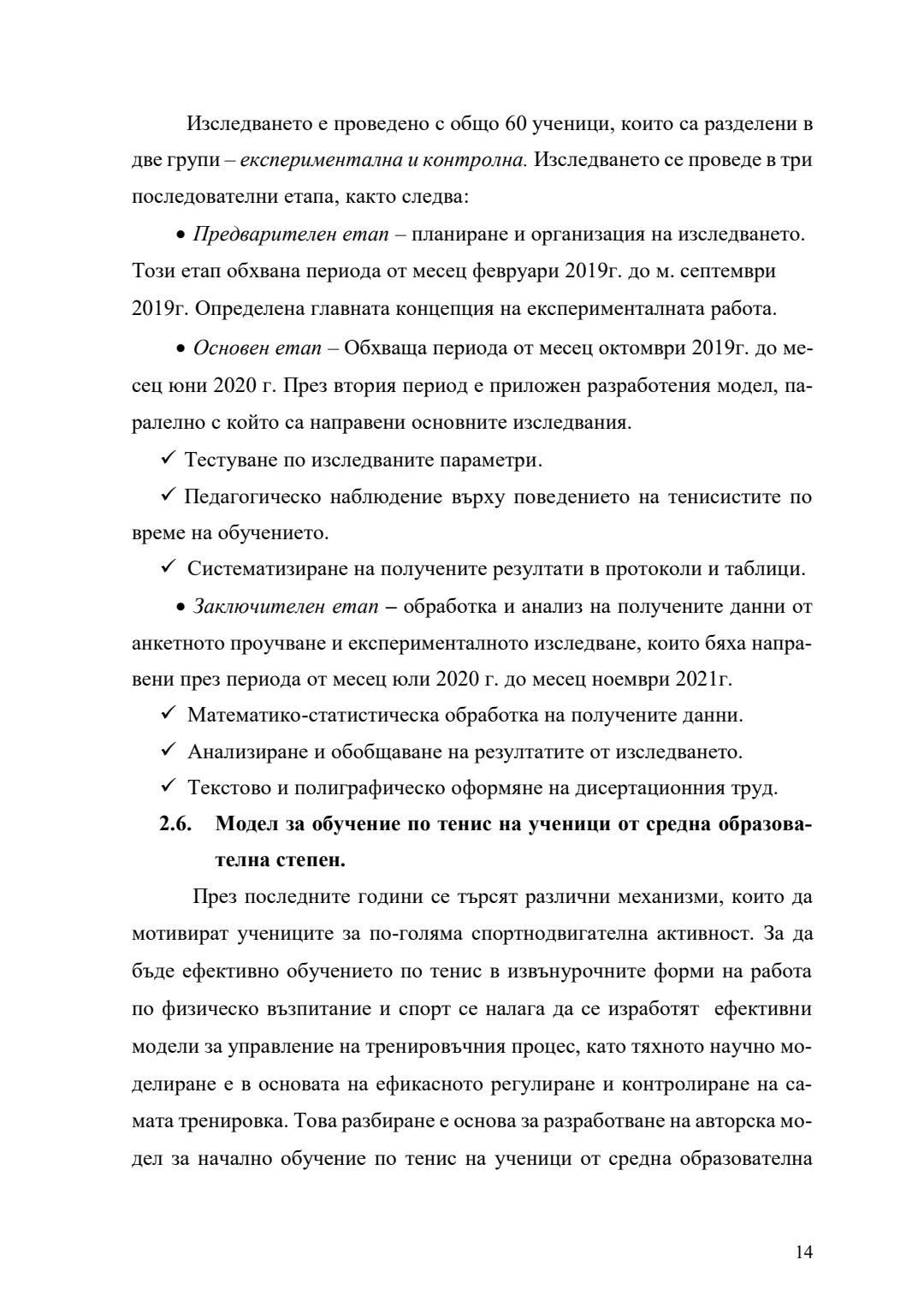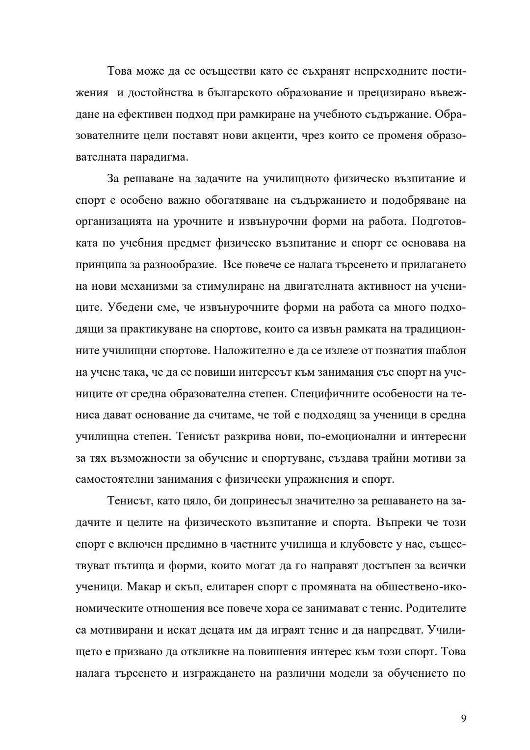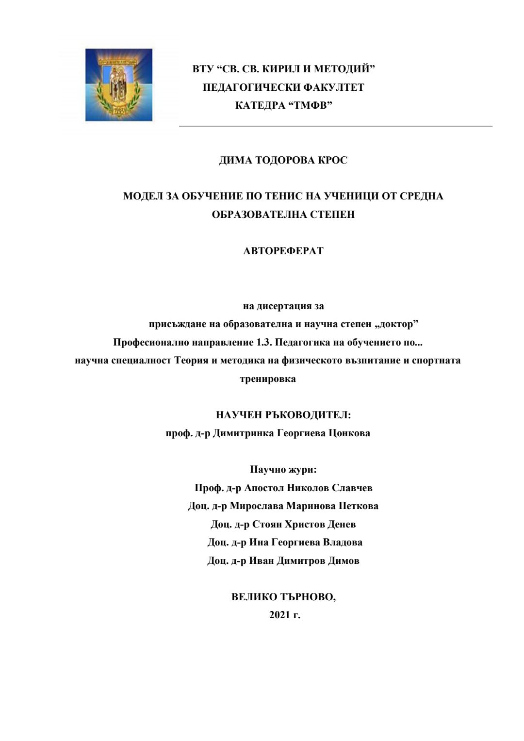 Модел за обучение по тенис на ученици от средна образователна степен : Автореферат / Дима Тодорова Крос ; Науч. ръководител Димитринка Цонкова