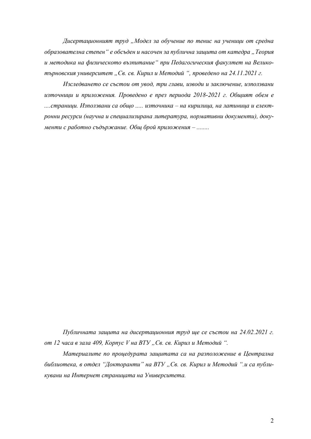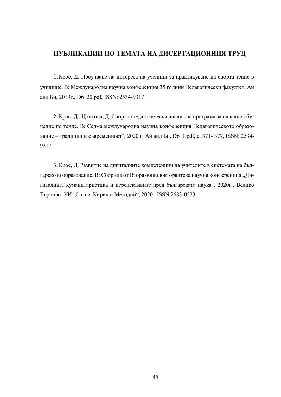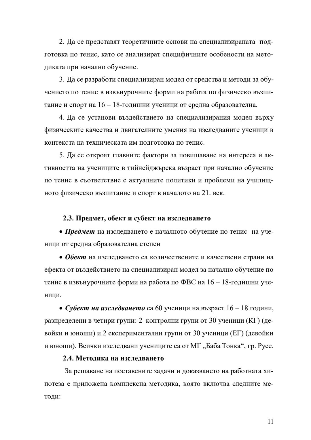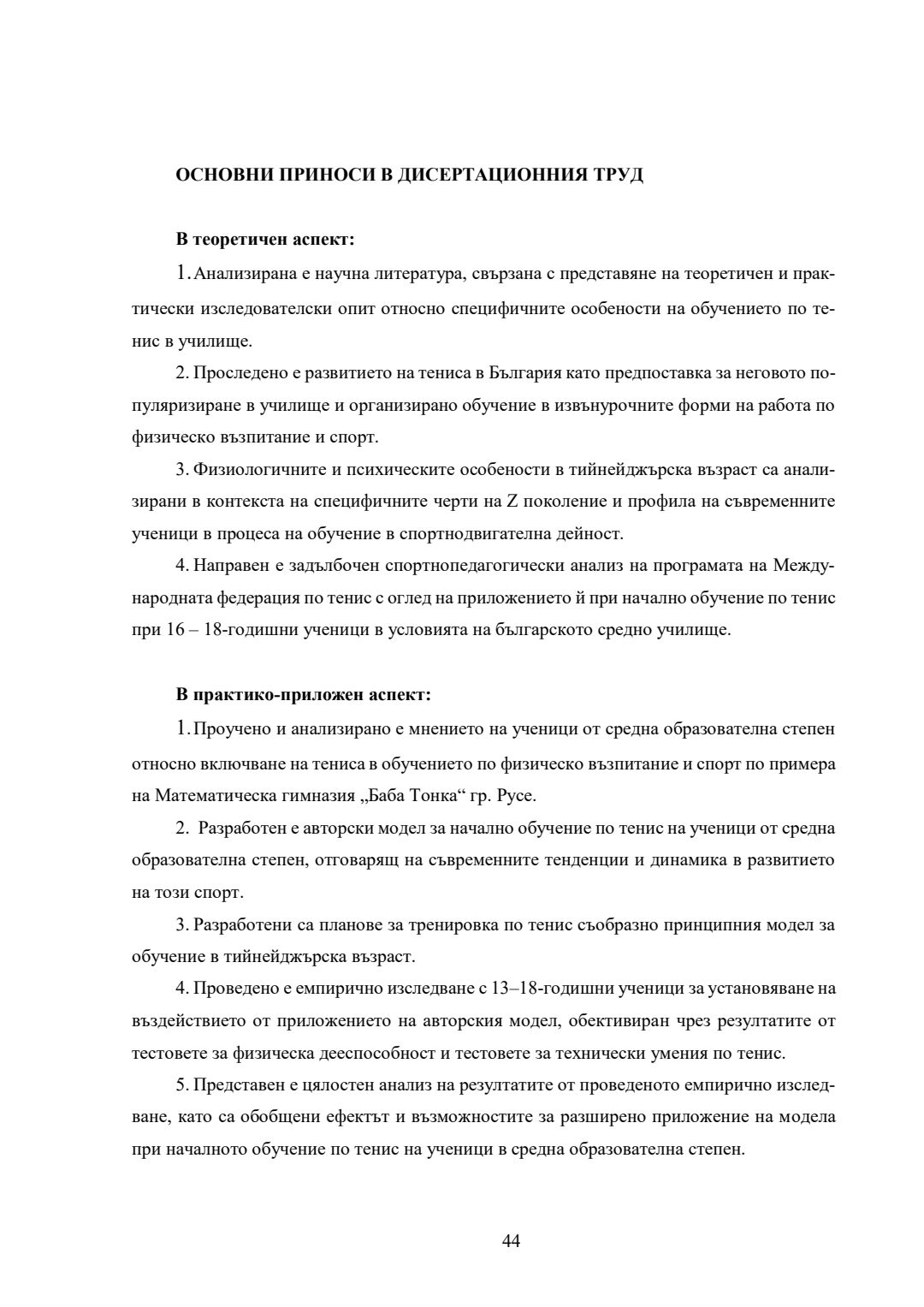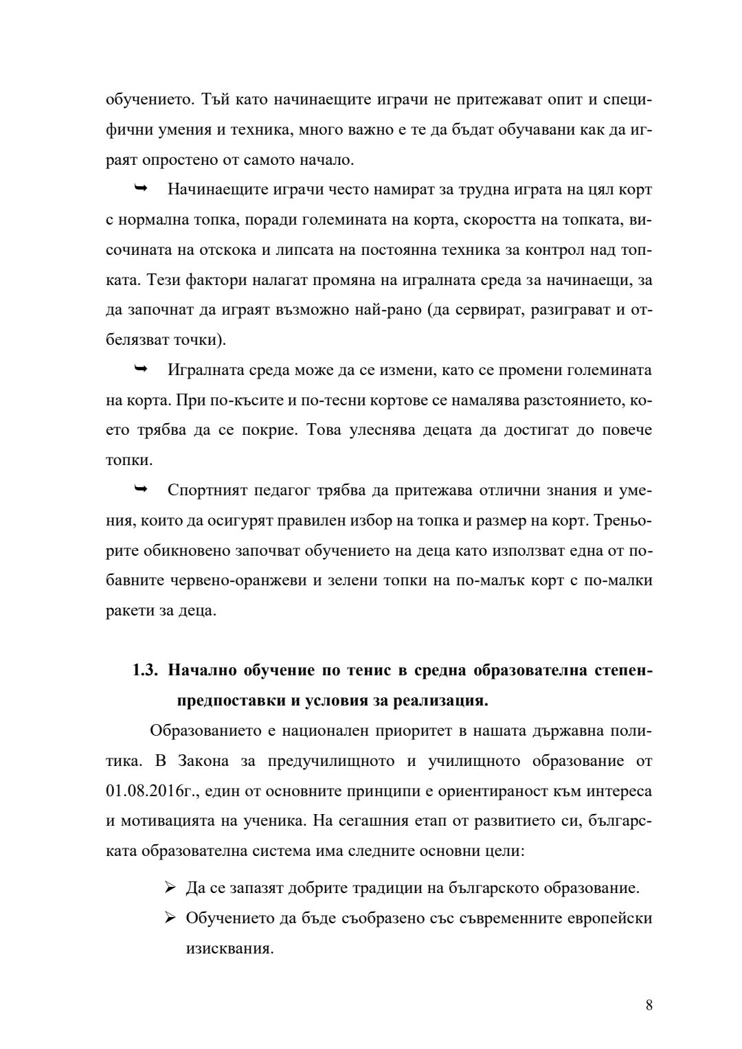 Модел за обучение по тенис на ученици от средна образователна степен : Автореферат / Дима Тодорова Крос ; Науч. ръководител Димитринка Цонкова