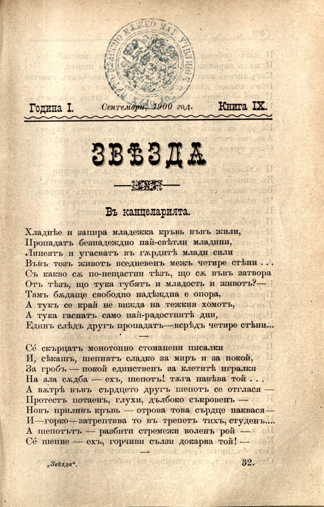 Год. 1. Кн. 9. Звезда : Месечно литературно списание