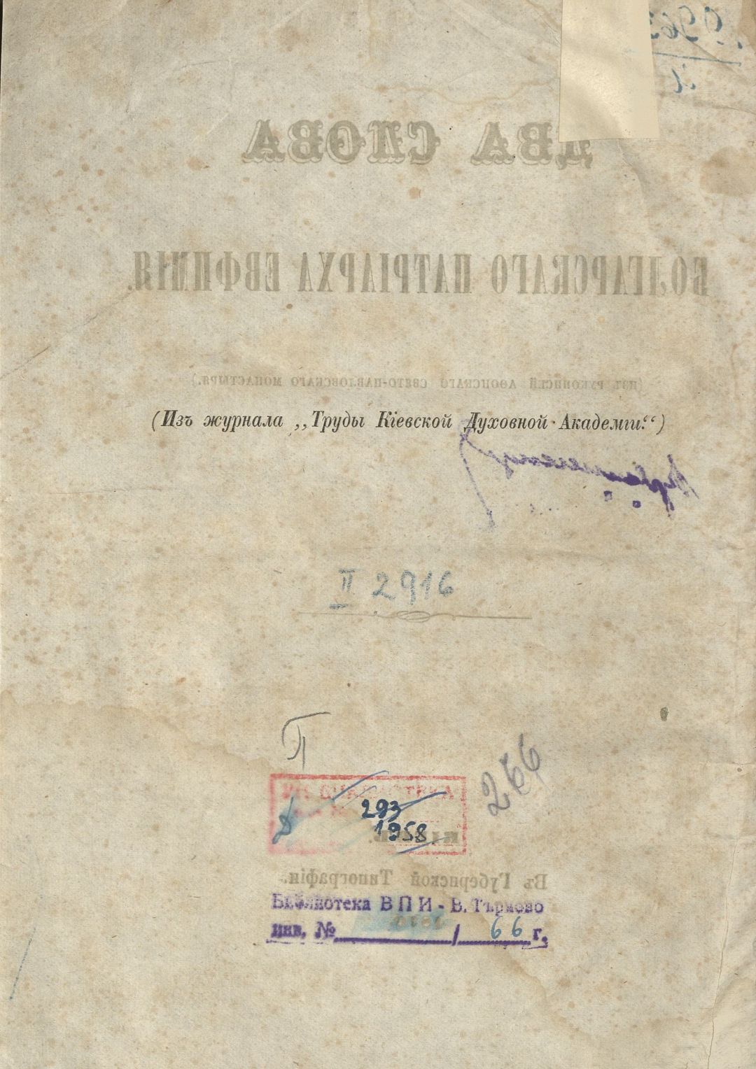 Два слова болгарского патриарха Евфимия : [Из рукописей атонскаго Свято-Павловскаго монастыря] .