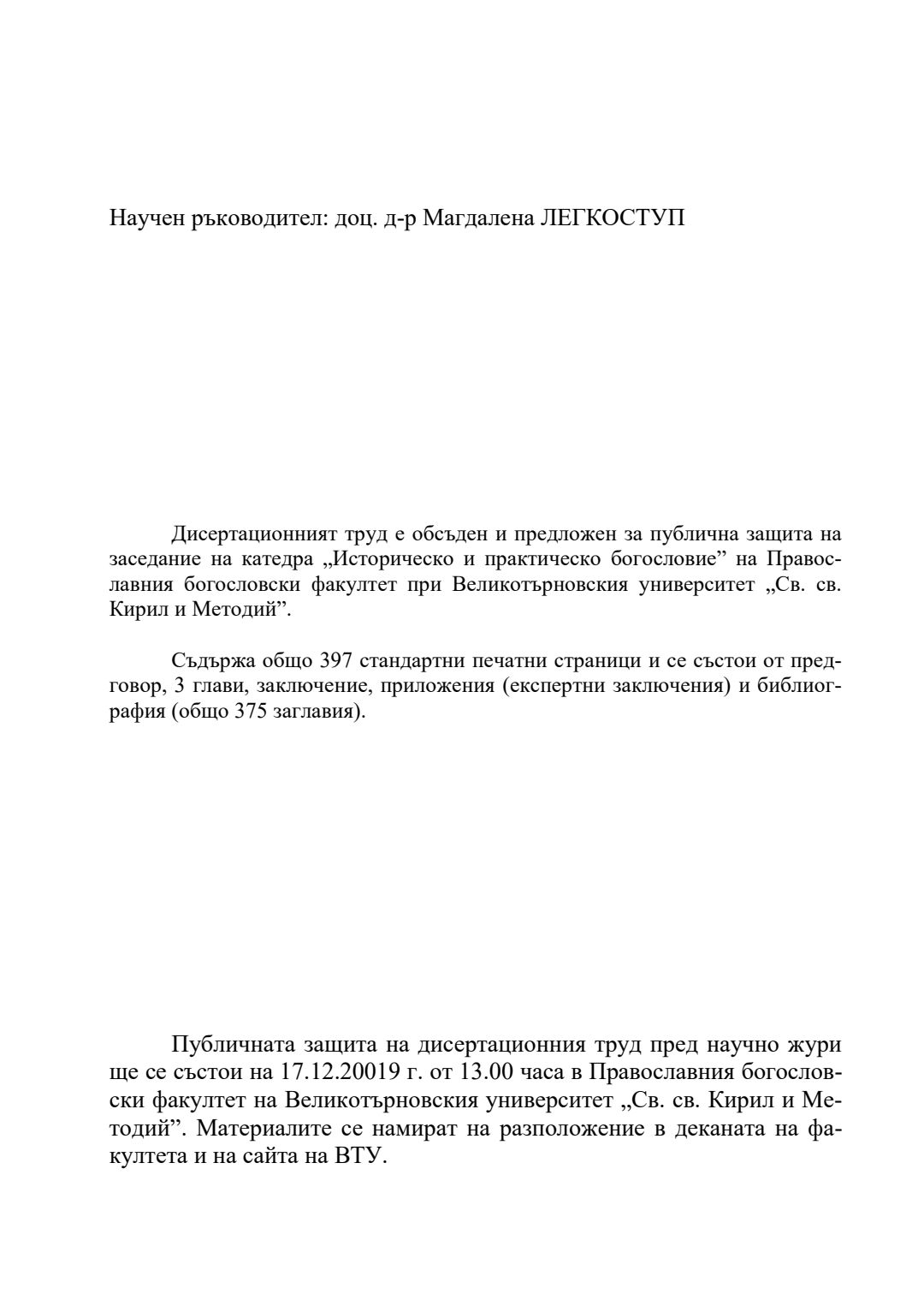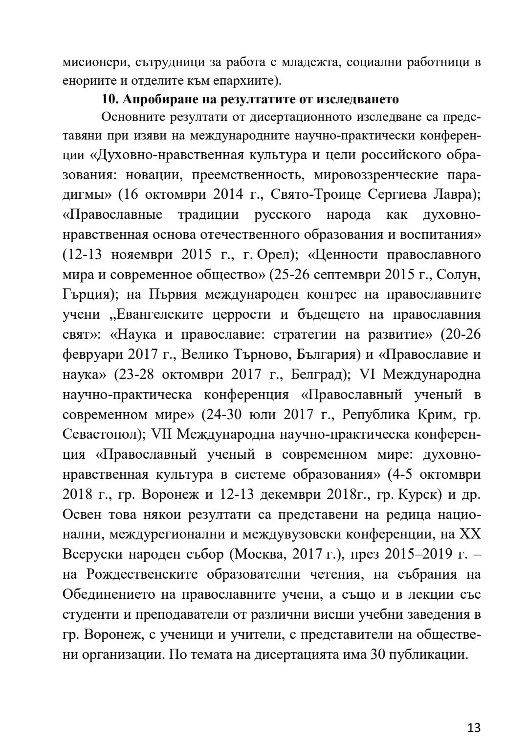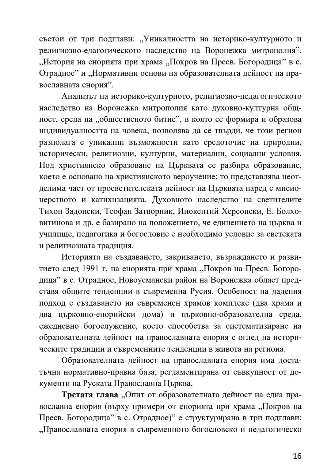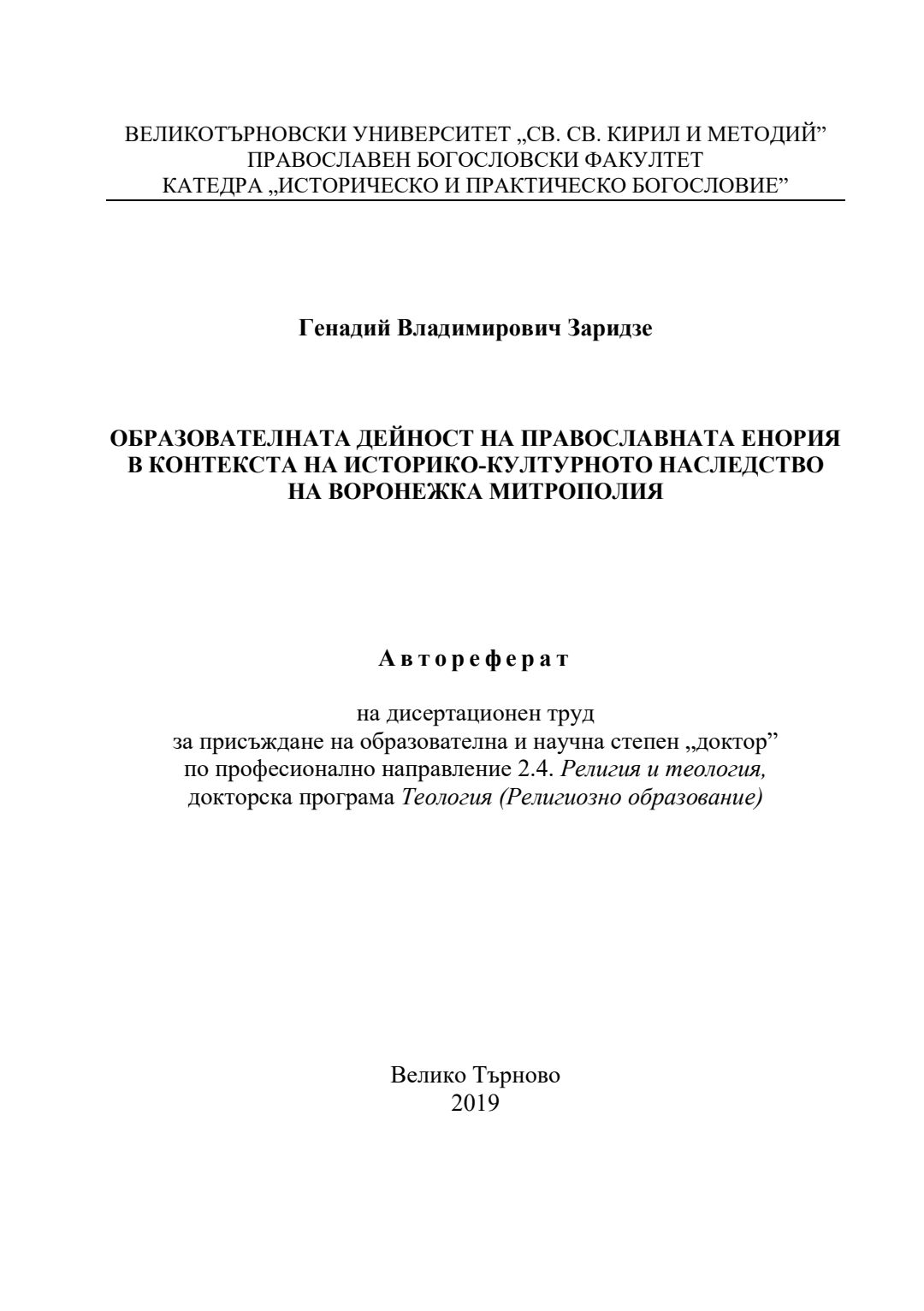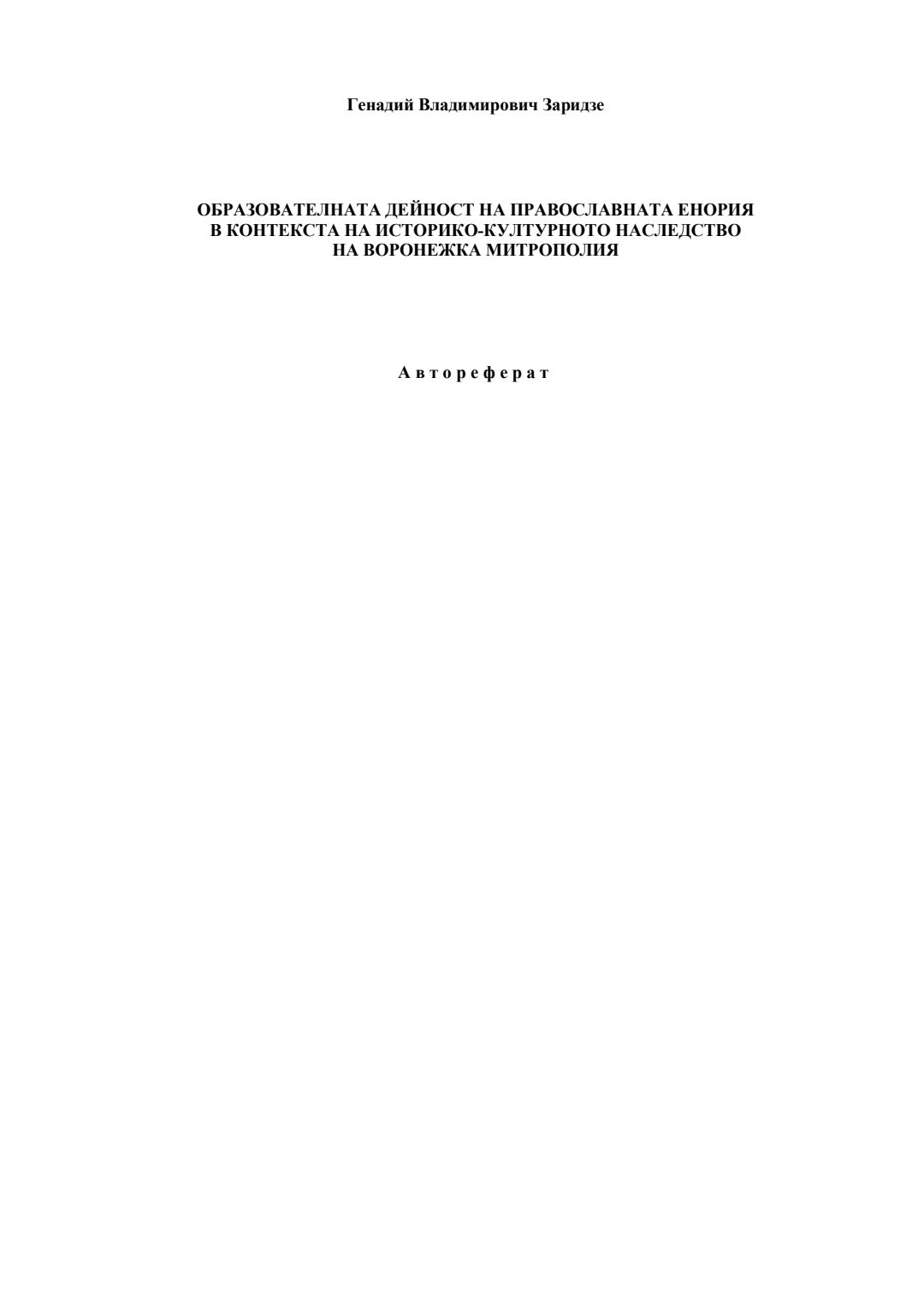 Образователната дейност на православната енория в контекста на историко-културното наследство на Воронежка митрополия : Автореферат / Генадий Владимирович Заридзе ; Науч. ръководител Магдалена Легкоступ.