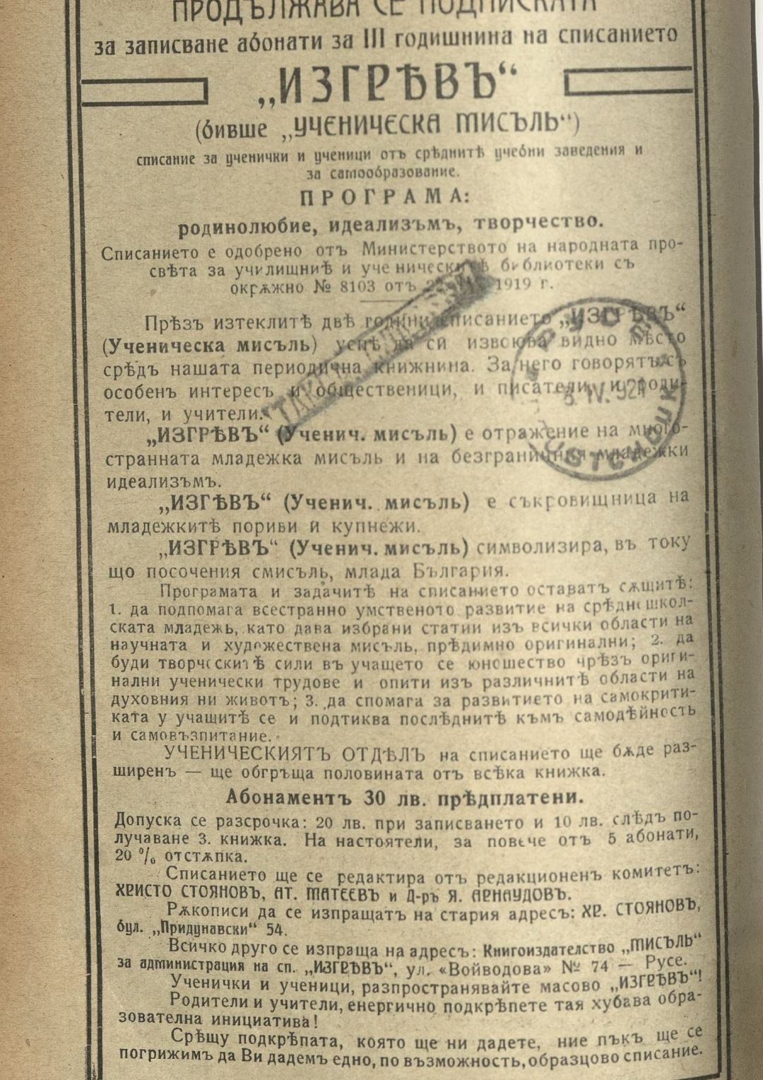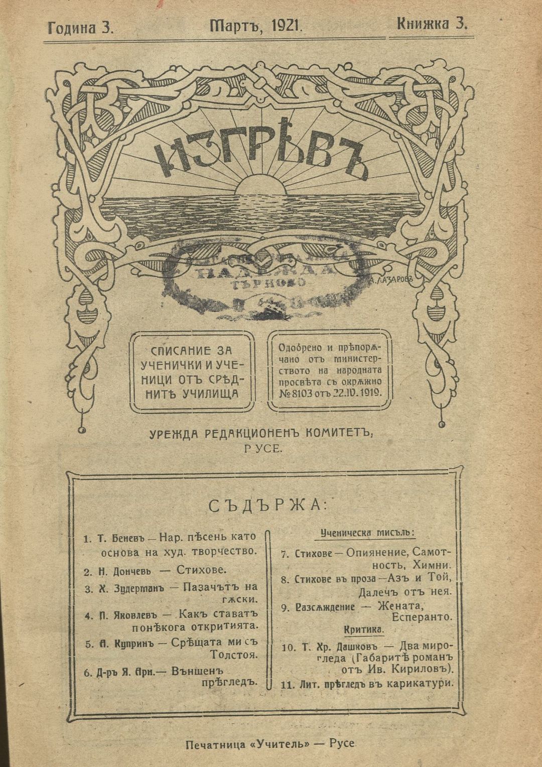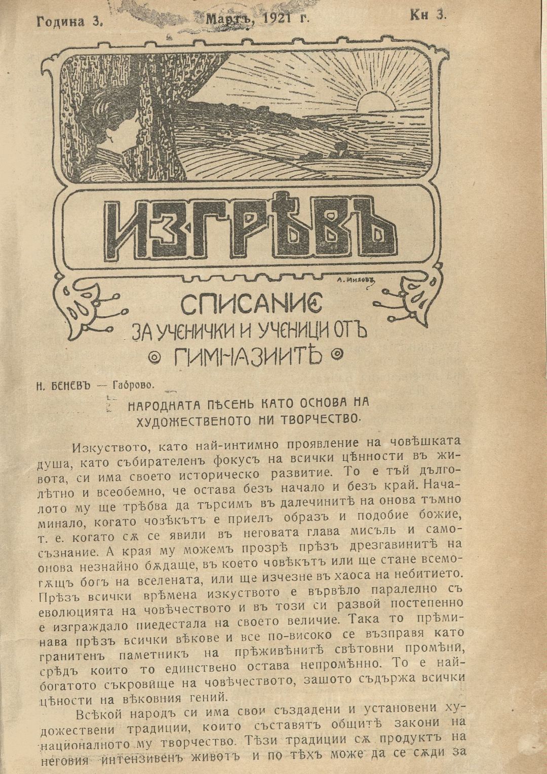 Год. 3, Кн. 3. Изгрев : Списание за ученички и ученици от средните училища