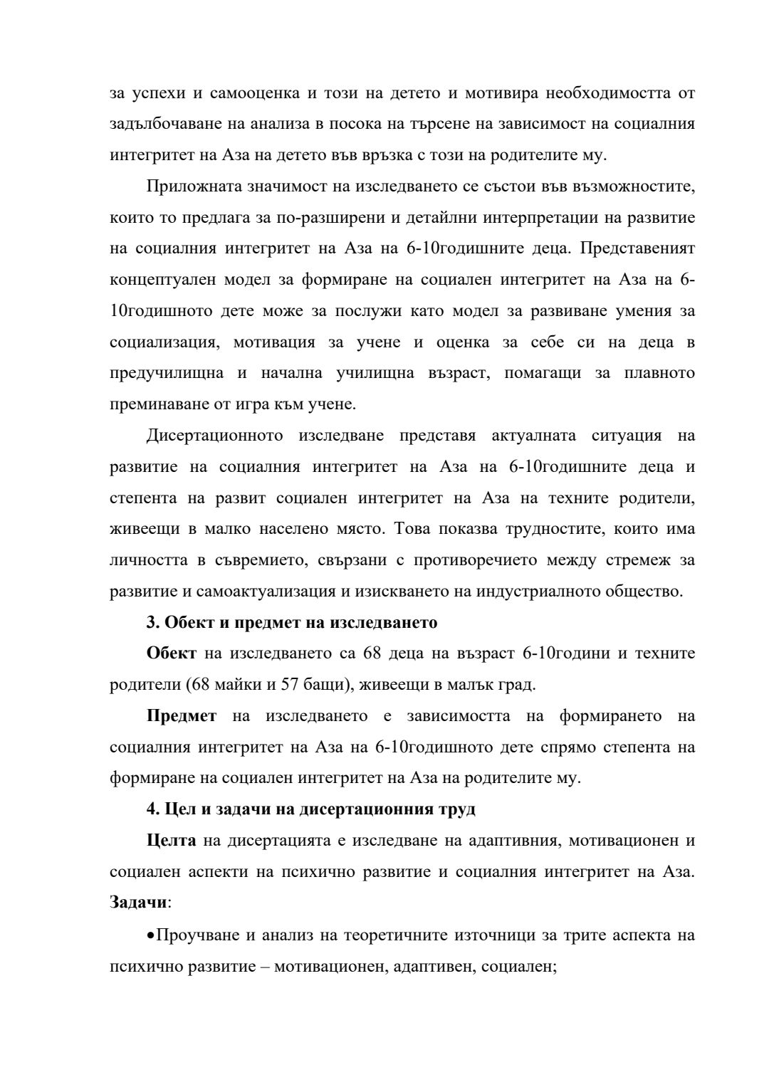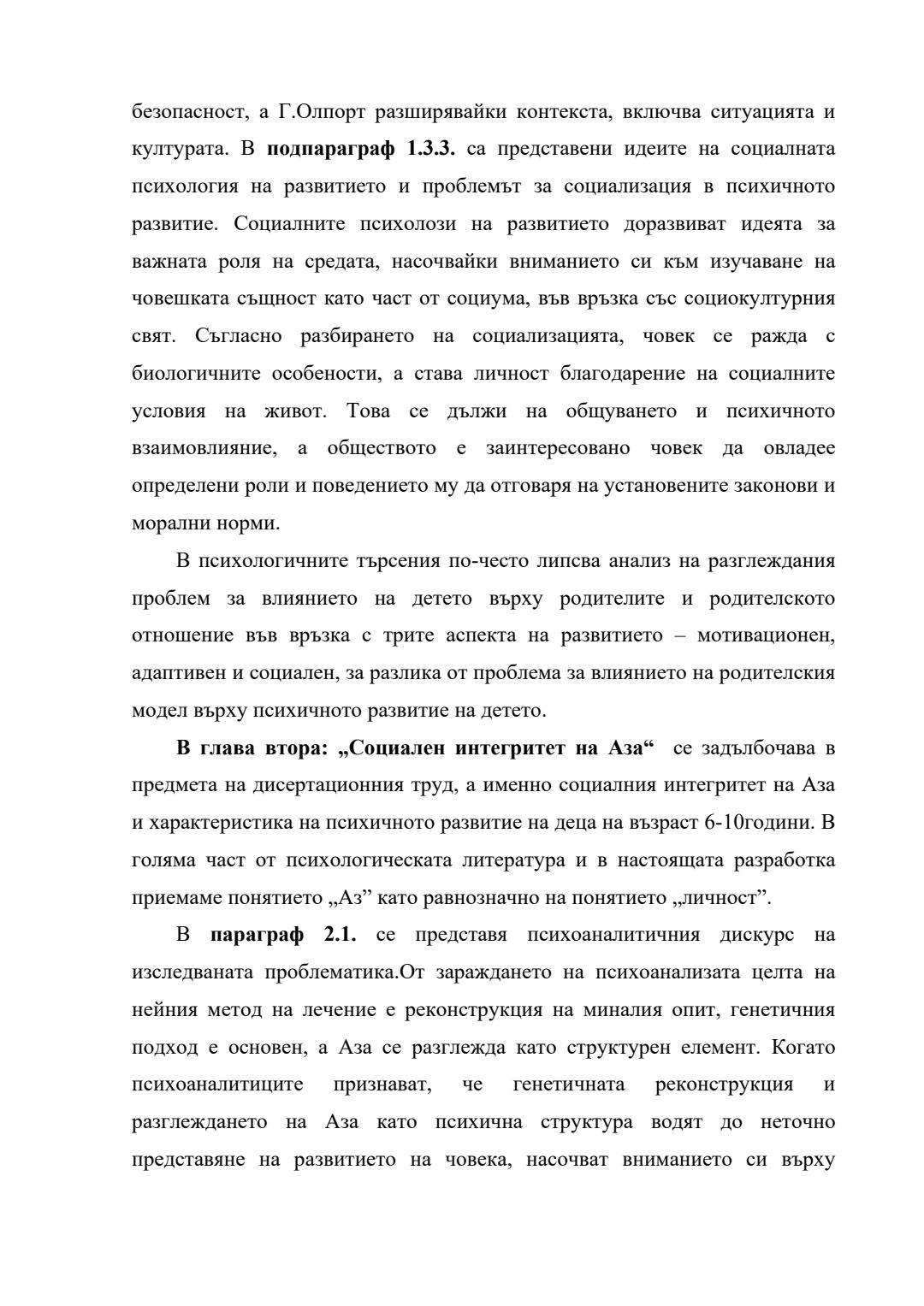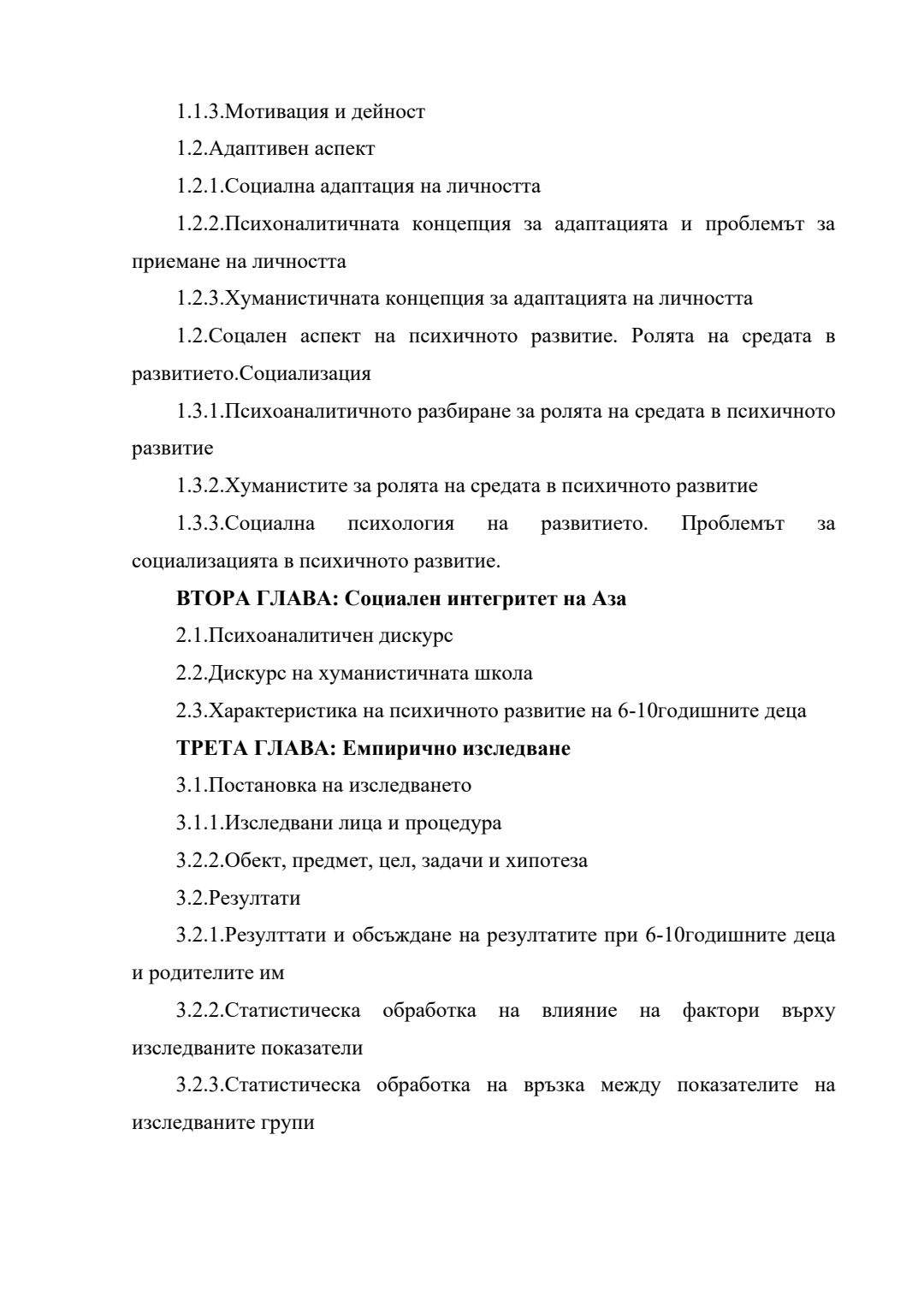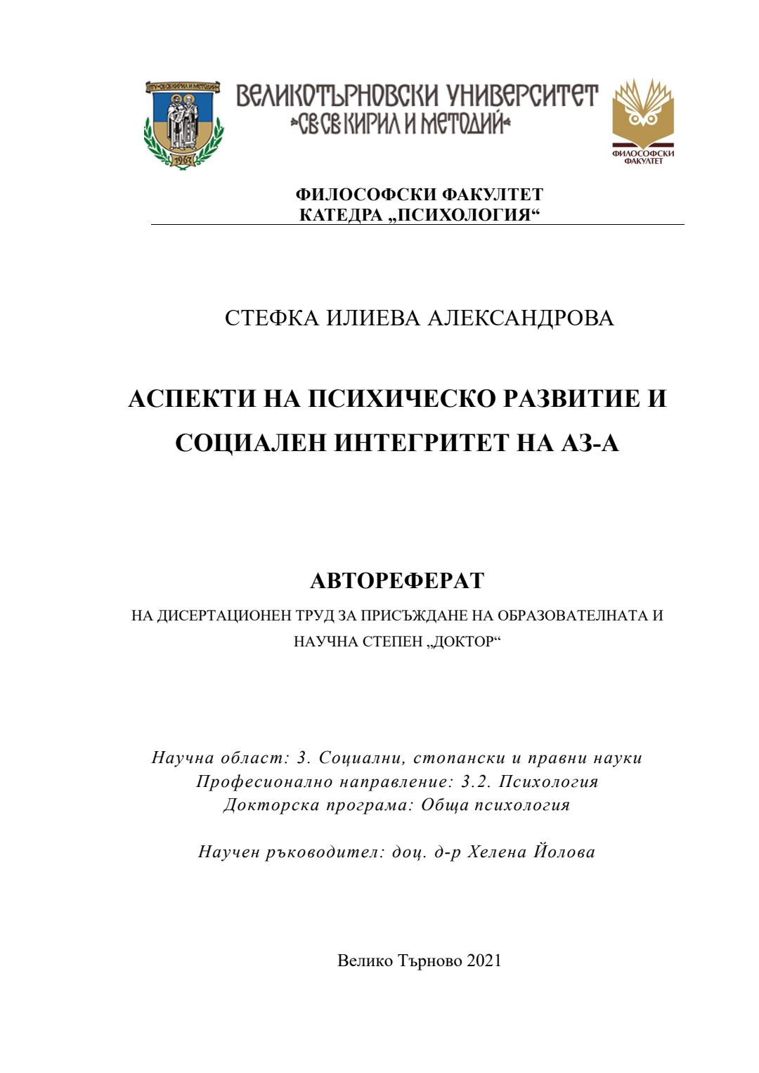 Аспекти на психическо развитие и социален интегритет на Аз-а : Автореферат / Стефка Илиева Александрова ; Науч. ръководител Хелена Йолова